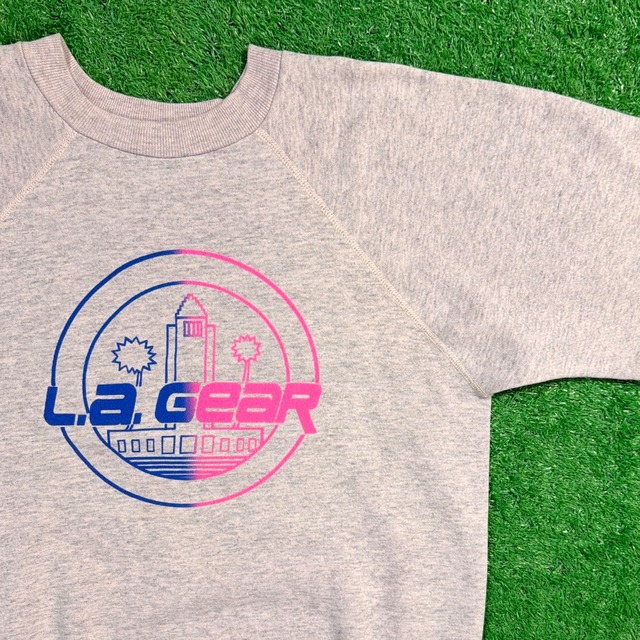 1990年代のアメリカ製、L.A Gearのスウェットシャツです。 ブルーとピンクのグラデーションロゴに、ロサンゼルスの街並みが描かれたレトロな一枚。ラグランスリーブ仕様で肩周りが動かしやすく、少しピンクがかった杢グレーのボディも90sらしい柔らかな雰囲気です。 L.A Gear(エルエーギア)は80〜90年代に全米で人気を集めたLA発のスポーツブランドです。 Made In USA 【着こなし提案】 デニムやチノパンと合わせて王道アメリカンカジュアルに。 薄いカラーのスウェットなので、ブラックのパンツを合わせても締まりが出てバランスよく着こなせます。ショートパンツとの相性も良く、ゆるく抜け感のあるスタイルにもぴったりです。 着用画像のご希望やご質問は、画面下の「ショップに質問する」ボタンよりどうぞ◎ ---------- <SIZE> 裄丈88cm / 身幅55cm / 袖口9cm / 着丈66cm XLサイズ <CONDITION> バックの右袖、とても薄いシミあり バック裾付近、お直し跡あり (全て画像参照) 着用に支障のあるダメージはございません。 ※一点ものです。気になる方はお早めに。 「ショップに質問する」より最長1週間のお取り置きも可能です。 ---------- 【配送方法について】 こちらの商品はレターパック(全国一律600円)でお届けいたします。 ※3着以上ご購入の方は、商品オプションの「3着以上購入の方はこちら」をご選択ください。 ---------- 【クーポン情報】 初回限定500円OFFクーポン適用可能! ご購入時にクーポンコード【PEACEFUL500】を入力してください。 【ショップフォローのご案内】 Pay IDアプリでフォローいただくと、新作やキャンペーンを最速でお届けします。 ▶︎ フォローはこちら https://thebase.com/to_app?s=shop&shop_id=pcefulvalley-base-ec&follow=truehttps://thebase.com/to_app?s=shop&shop_id=pcefulvalley-base-ec&follow=true ---------- 【ご購入前にご確認ください】 USEDのため小さなシミ・ほつれ等がある場合がございます。 色味は実物と異なる場合がございます。サイズ計測は多少の誤差があります。 店頭販売と在庫を共有しているため、売切れの場合があります。 返品・交換は承っておりません。 ご質問は「ショップに質問する」またはInstagram DMよりお気軽にどうぞ。