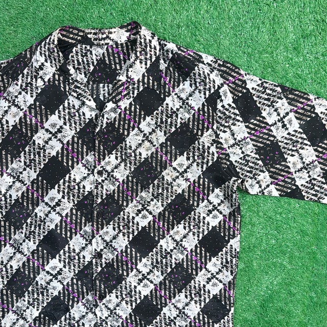 【Men's】 シャカシャカ 素材 チェック 開襟 シャツ / 古着 長袖 古着 メンズ 958