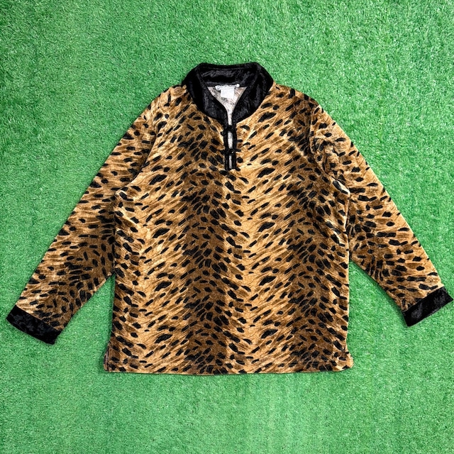 【Lady's】 80s レオパード ベロア調 トップス / 80年代 シャツ 古着 豹柄 ヒョウ柄 レディース 1024