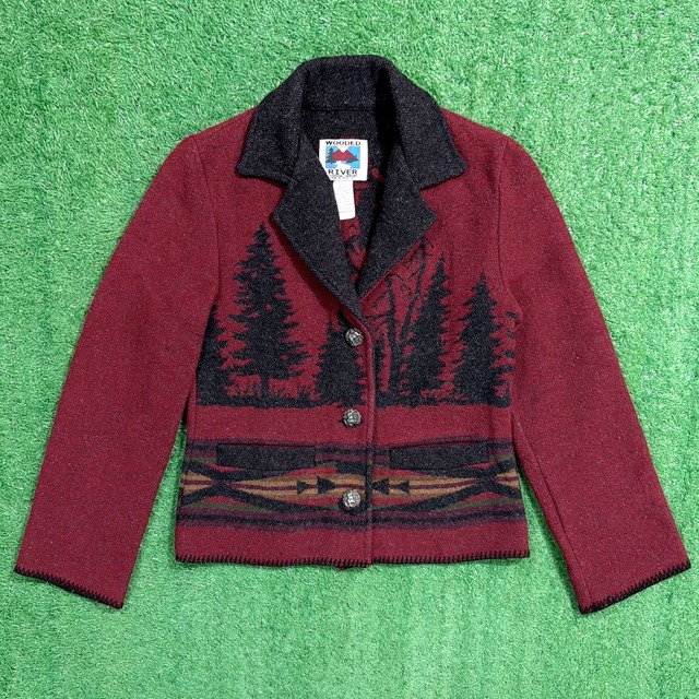 90年代アメリカ製の、ネイティブ調アニマルモチーフが印象的なショートコートです。 ムース(ヘラジカ)や森林風景をモチーフにしたデザインで、ウエスタンやネイティブインスパイアの雰囲気を感じさせる一着。 アクリル・ポリエステルをベースにウールも混紡されており、見た目以上にしっかりとした厚みがあります。ショート丈なので重たくなりすぎず、コーディネートに程よい存在感をプラスしてくれます。 Made In USA 【着こなし提案】 デニムやコーデュロイパンツと合わせて、ラフなウエスタンスタイルに。 ワンピースやロングスカートの上から羽織って、ミックス感のある着こなしもおすすめです。 シンプルなインナーと合わせることで、柄の魅力がより引き立ちます。 着用画像をご覧になりたい際はお気軽にお問合せください。 <SIZE> 肩幅40cm/ 身幅46cm / 袖丈61.5cm / 袖口16cm / 着丈56m XSサイズ <MATERIAL> 50%アクリル 25%ポリエステル 20%ウール 5%その他 <CONDITION> 着用に支障のあるダメージはございません。 ---------- 【配送方法について】 ※こちらの商品はゆうパック(全国一律900円)でお届けいたします。 ※900円以上の送料に関しましては、PEACEFUL VALLEY.で負担させていただきます。 ---------- 【クーポン情報】 初回限定500円OFFクーポン適用可能! ご購入時にクーポンコード【PEACEFUL500】を入力してください。 ※USED商品ですので小さなシミほつれ、擦れ、使用感などの記載しきれない所もございますが、ご理解の上ご購入下さい。 ※実際の色合いとは異なって見える場合がございますが、ご了承ください。 ※サイズは丁寧に採寸しておりますが、サイジングの仕方による多少の誤差が出る場合がございます。 ※掲載商品は店頭での販売も行っている為、注文が重複してお買い上げができない場合がございます。 ※購入後の返品交換は致しかねます。ご了承ください。 ※商品等の質問はトップページのコンタクト、またはインスタグラムのDMまでご気軽にお問い合わせください。