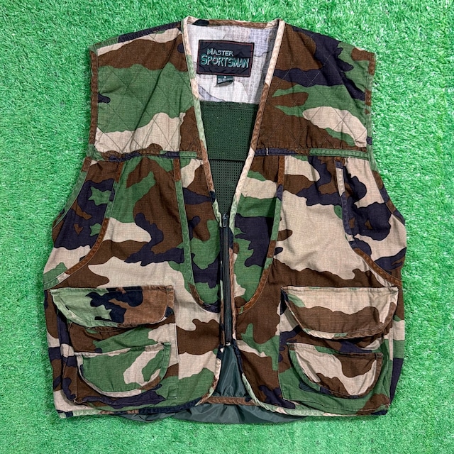 【Men's】 90s カモ柄 フィッシングベスト / 90年代 ハンティングベスト ベスト 迷彩 カモ 古着 メンズ 1032