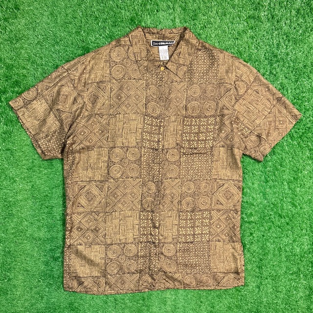 【Men's】 90s ネイティブ柄 レーヨン コットン シャツ / 90年代 古着 柄シャツ 総柄 半袖 メンズ エスニック ネイティブ 夏 602