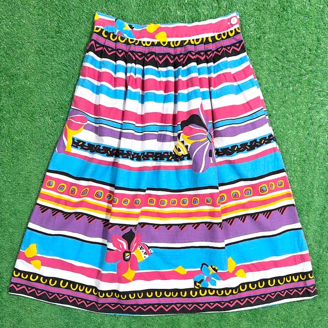 【Lady's】 90s ネイティブ調 マルチボーダー スカート / 90年代 レディース 古着 1492