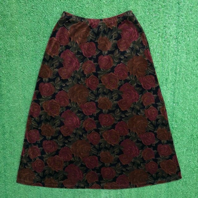 【Lady's】90s ベロア調 バラ柄 イージー スカート / 90年代 レディース 古着 1470
