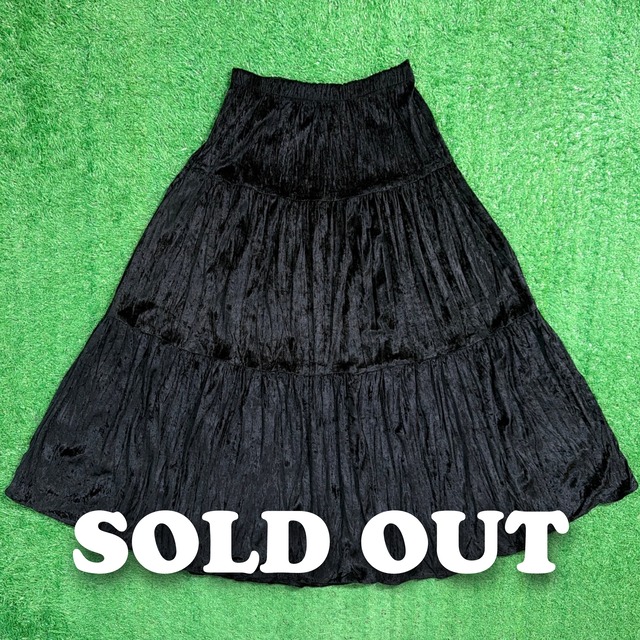 【Lady's】 90s ベロア ブラック ロング スカート / Made In USA 1348