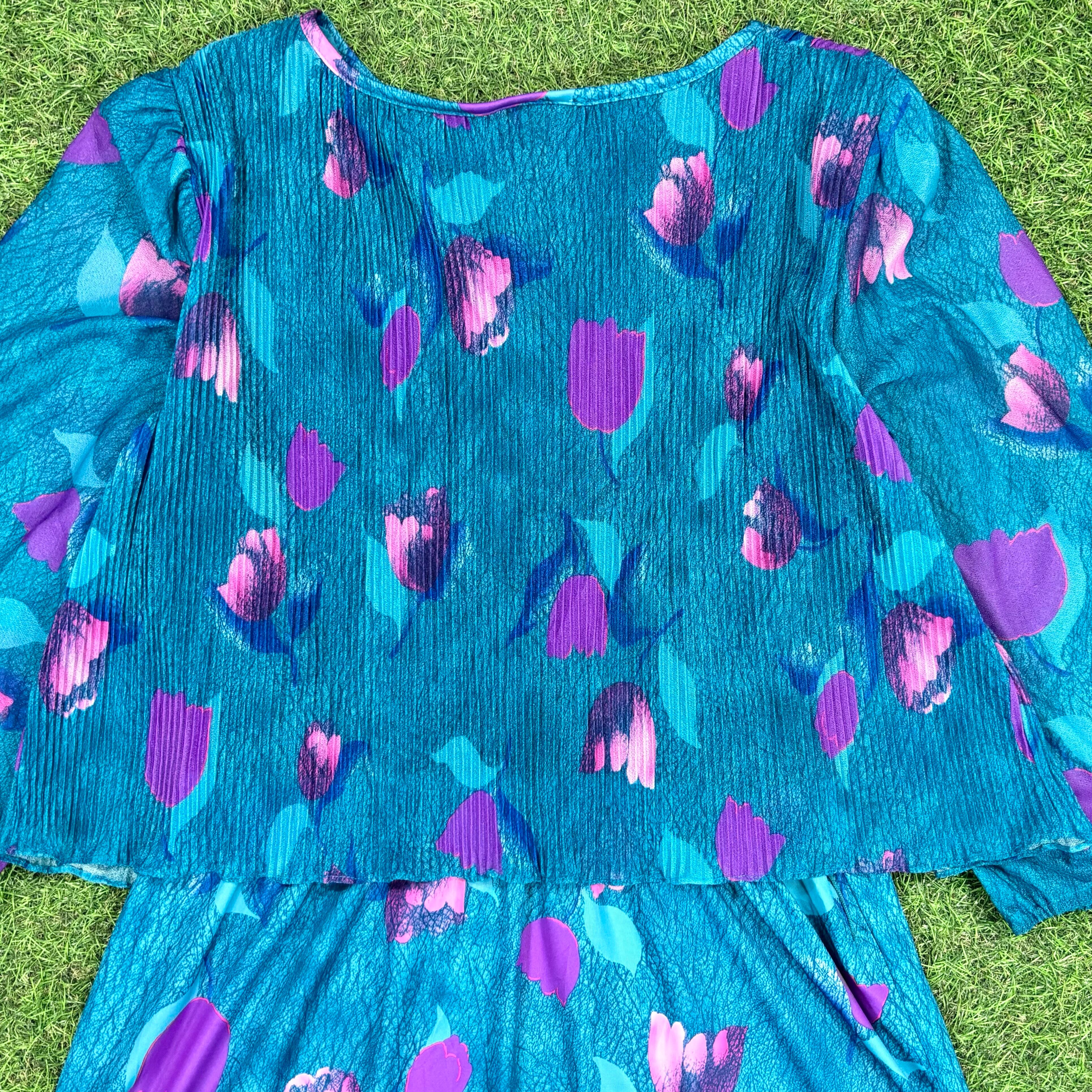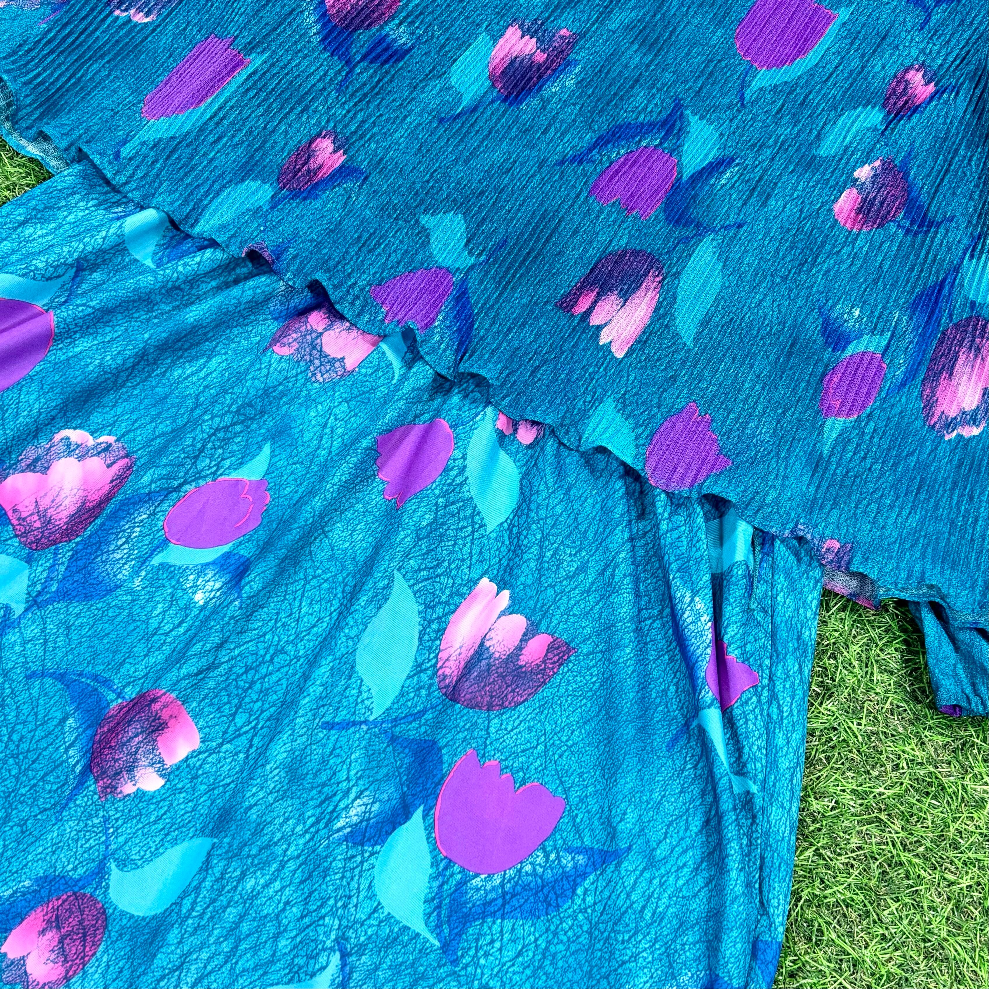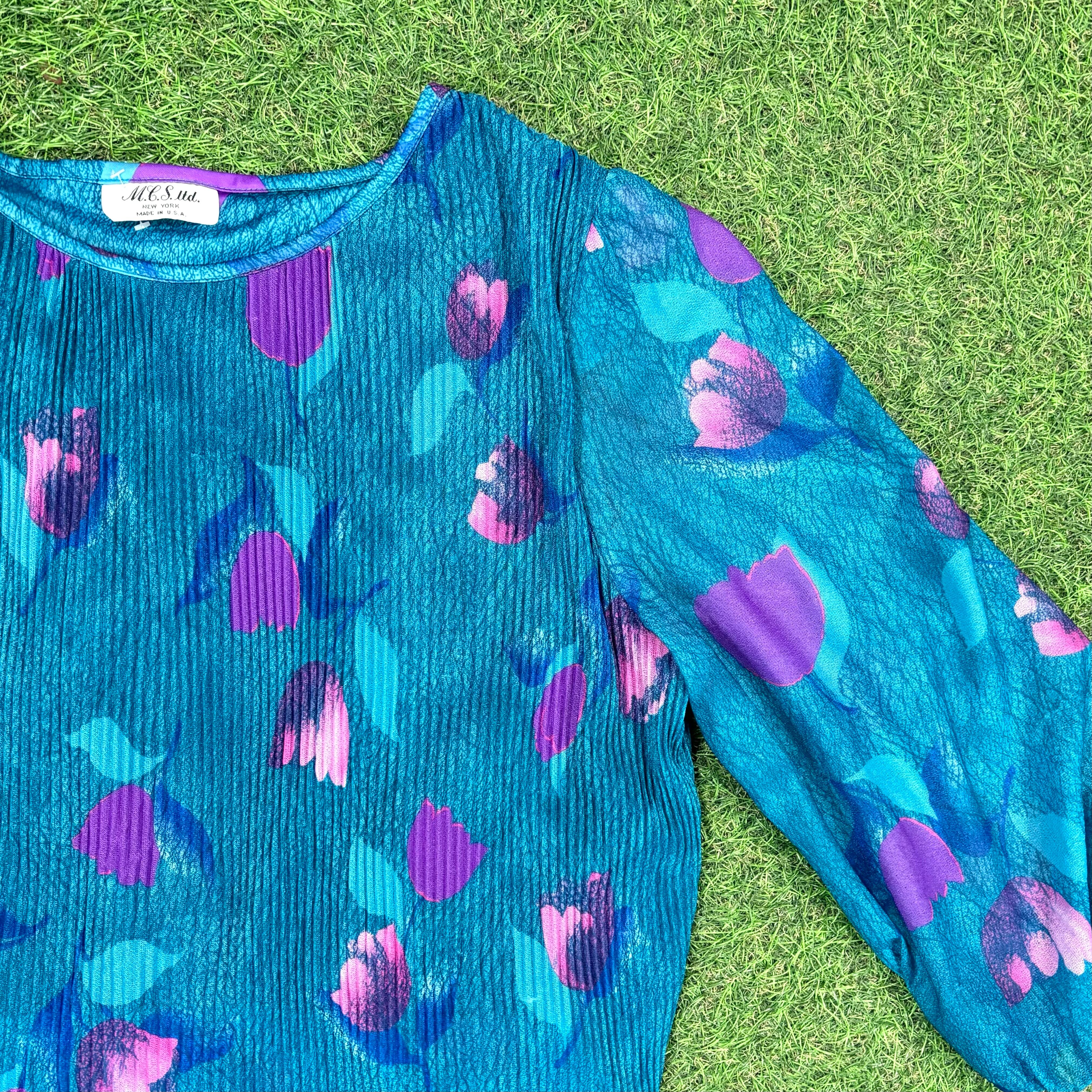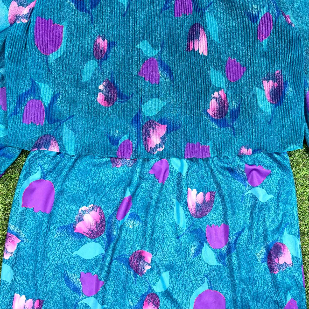 【Lady's】 80s 花柄 フェイクトップス デザイン ワンピース / Made In USA 80年代 アメリカ製 古着 レディース ワンピ レトロ