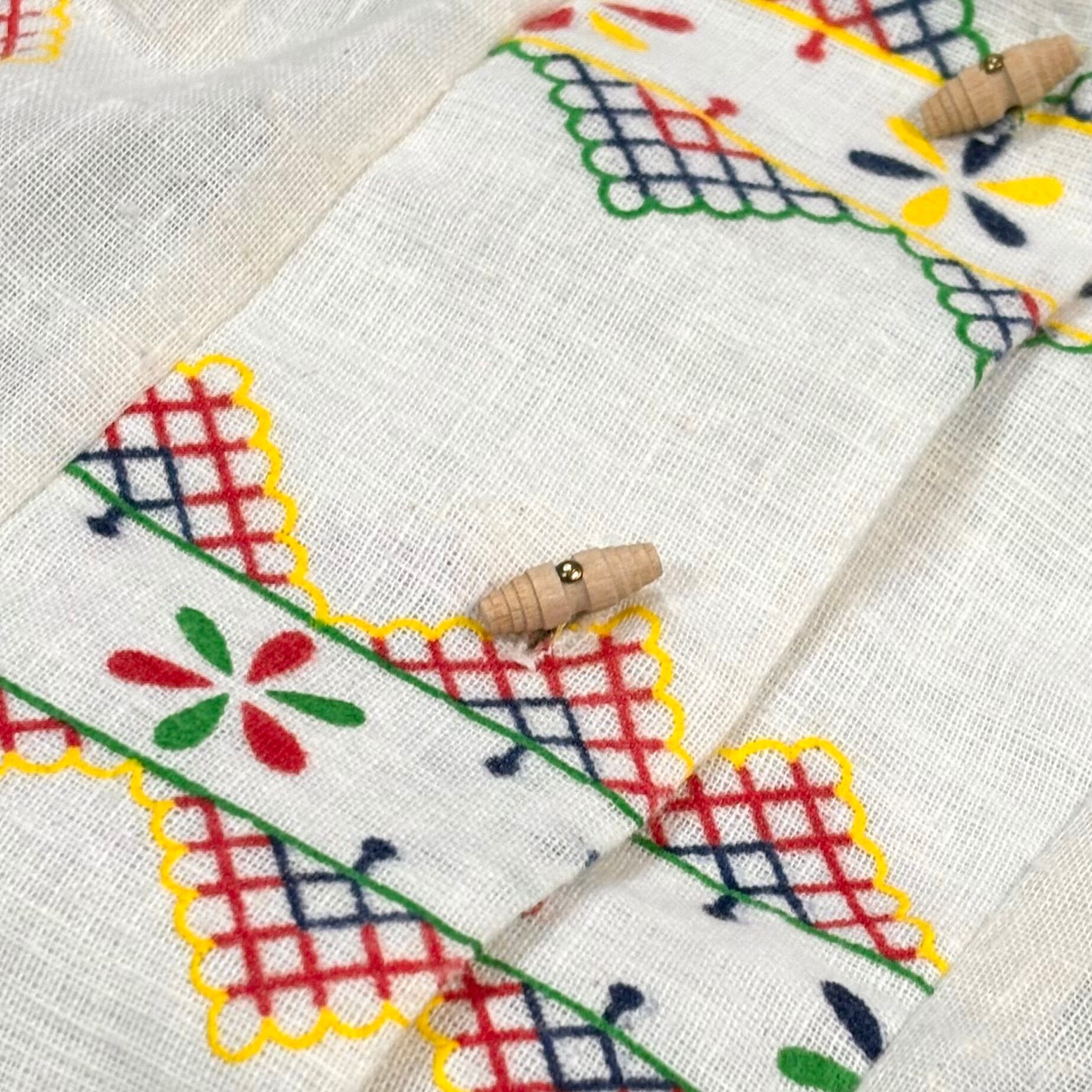 ボヘミアンでヒッピーな雰囲気の総柄に木のボタンがアクセントになっていてとっても可愛いアイテムです。