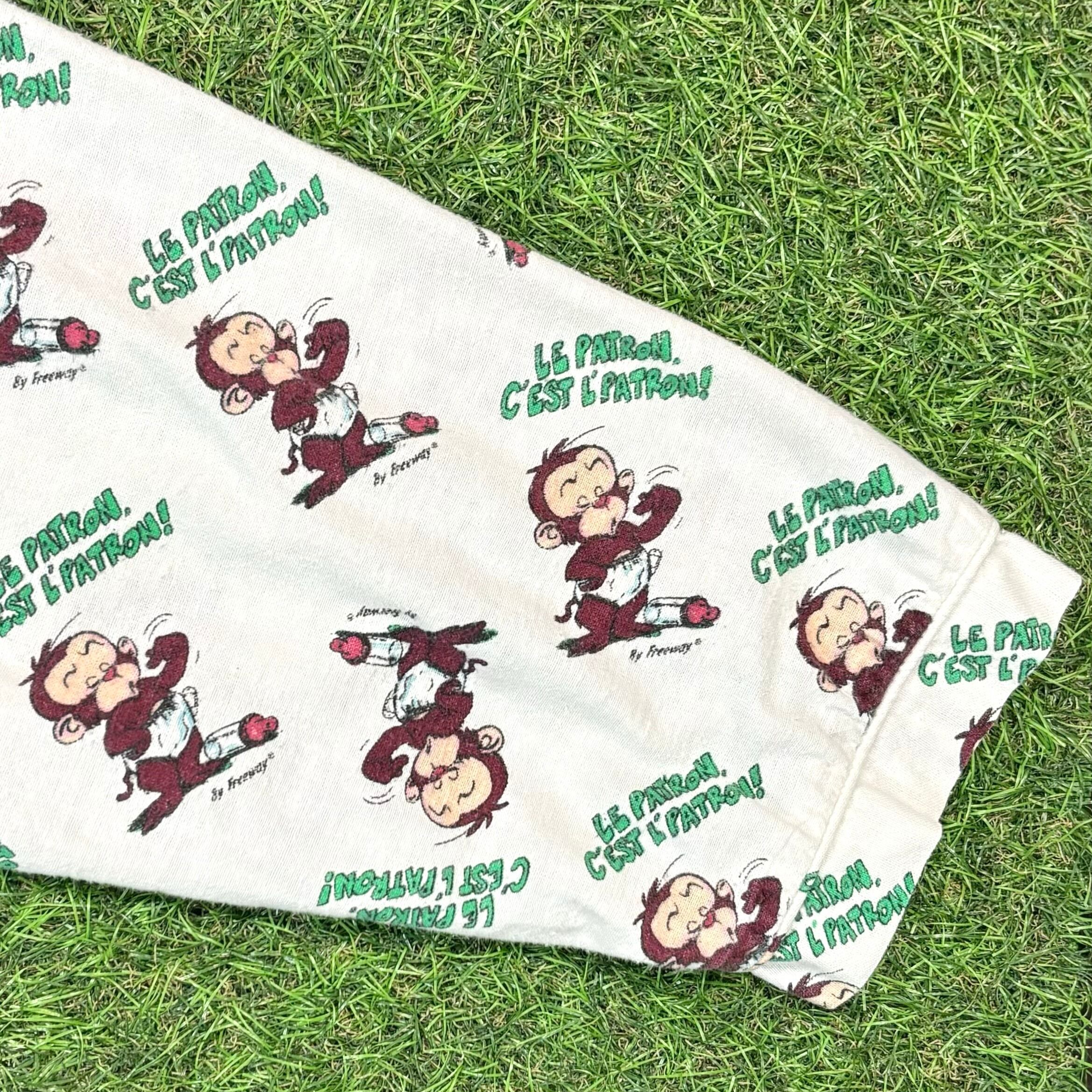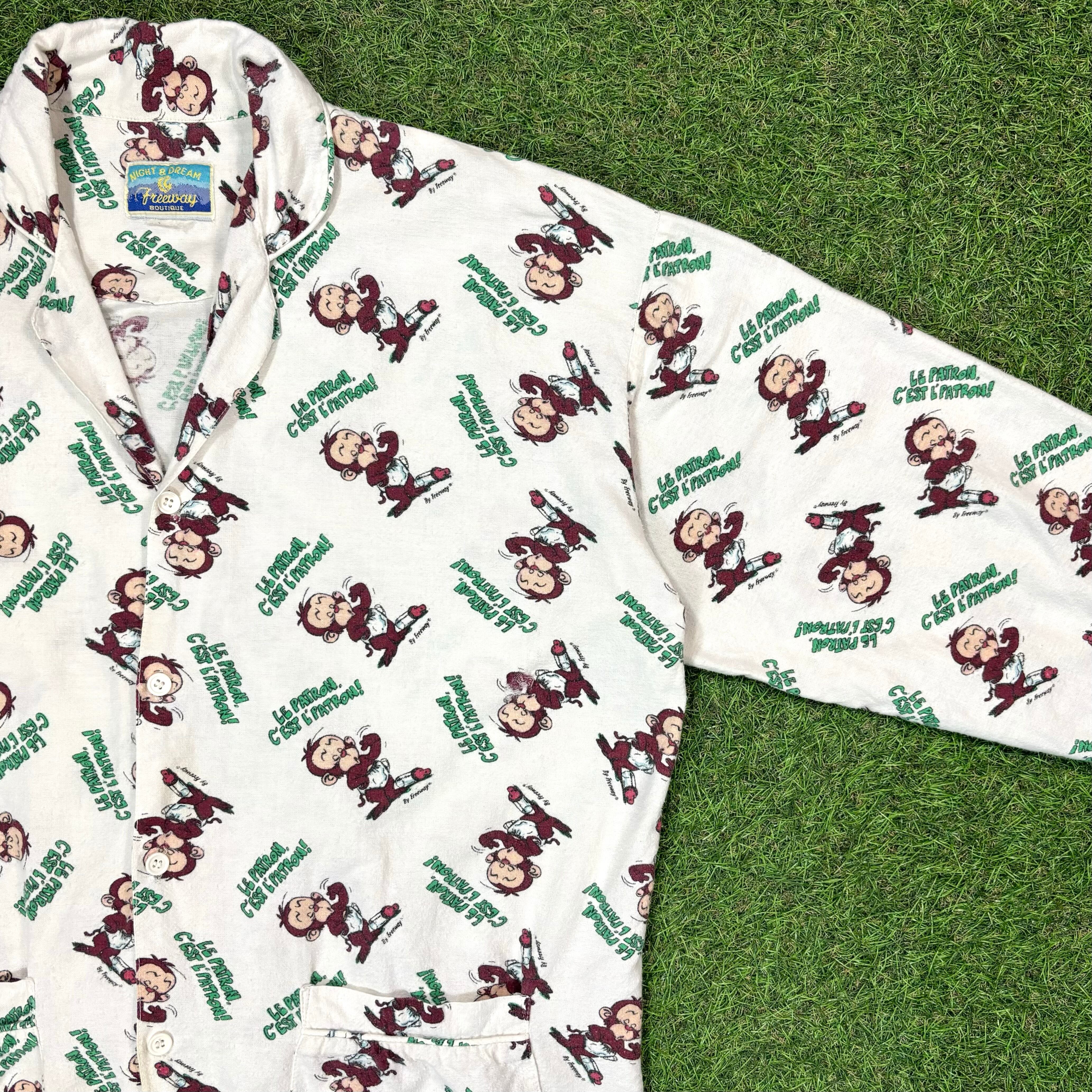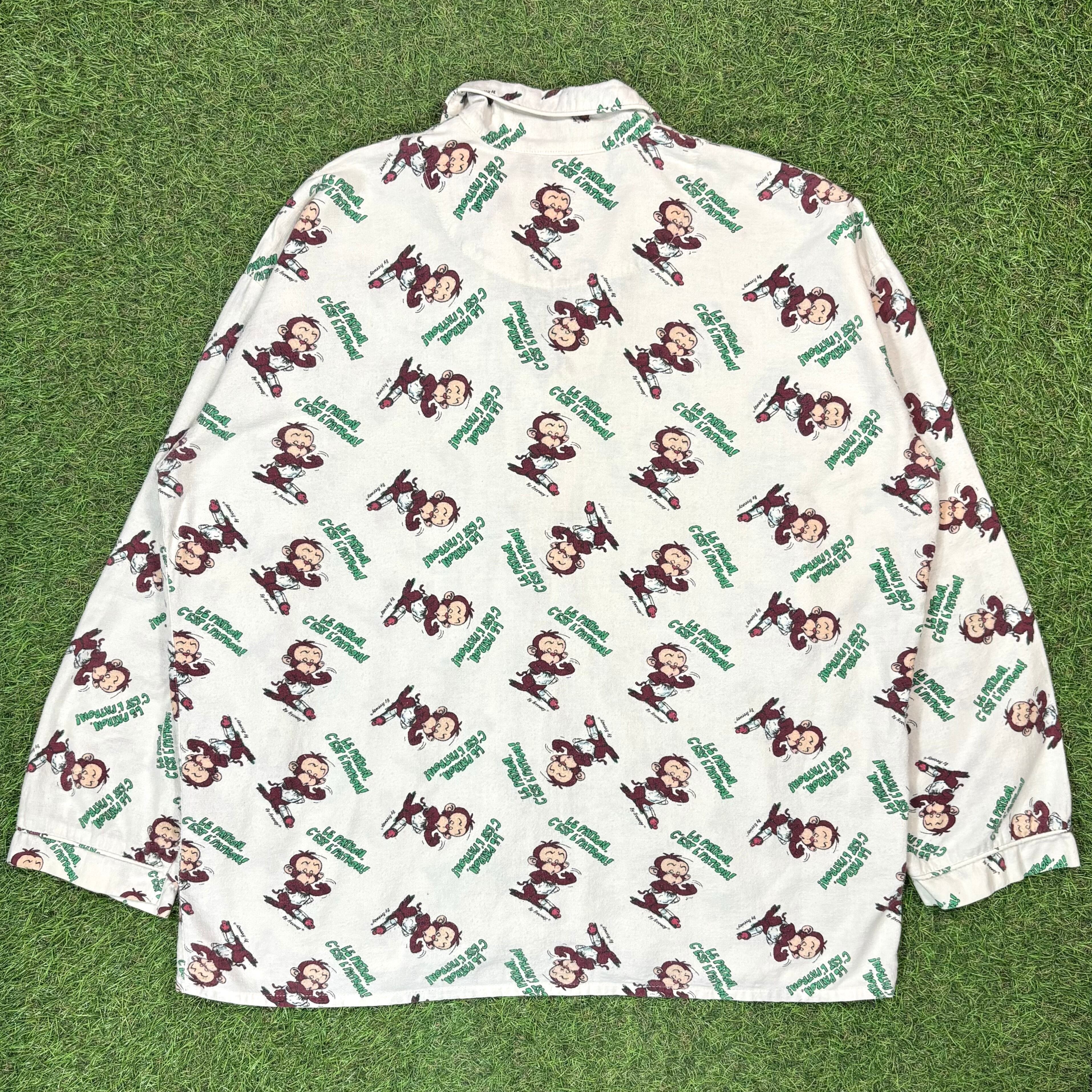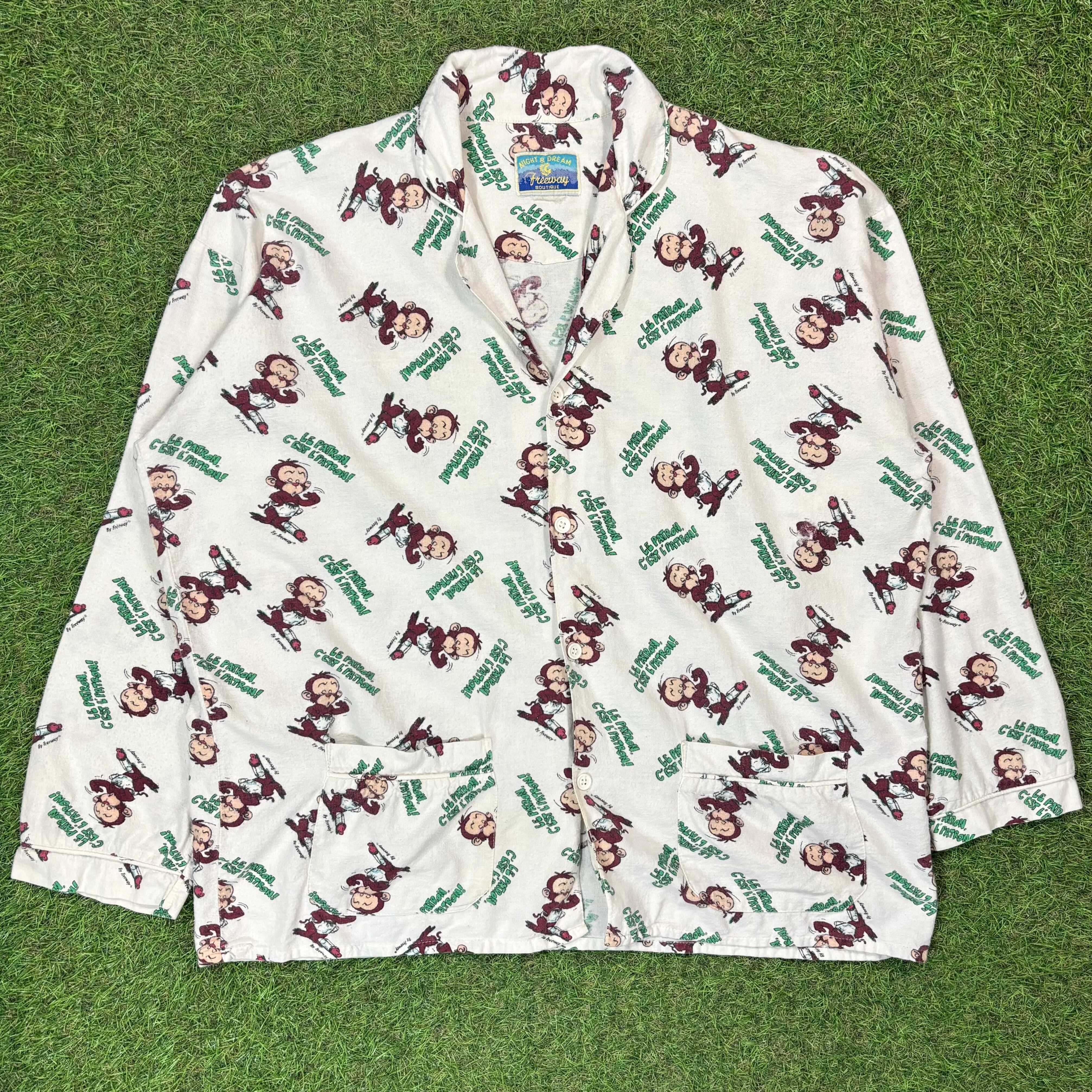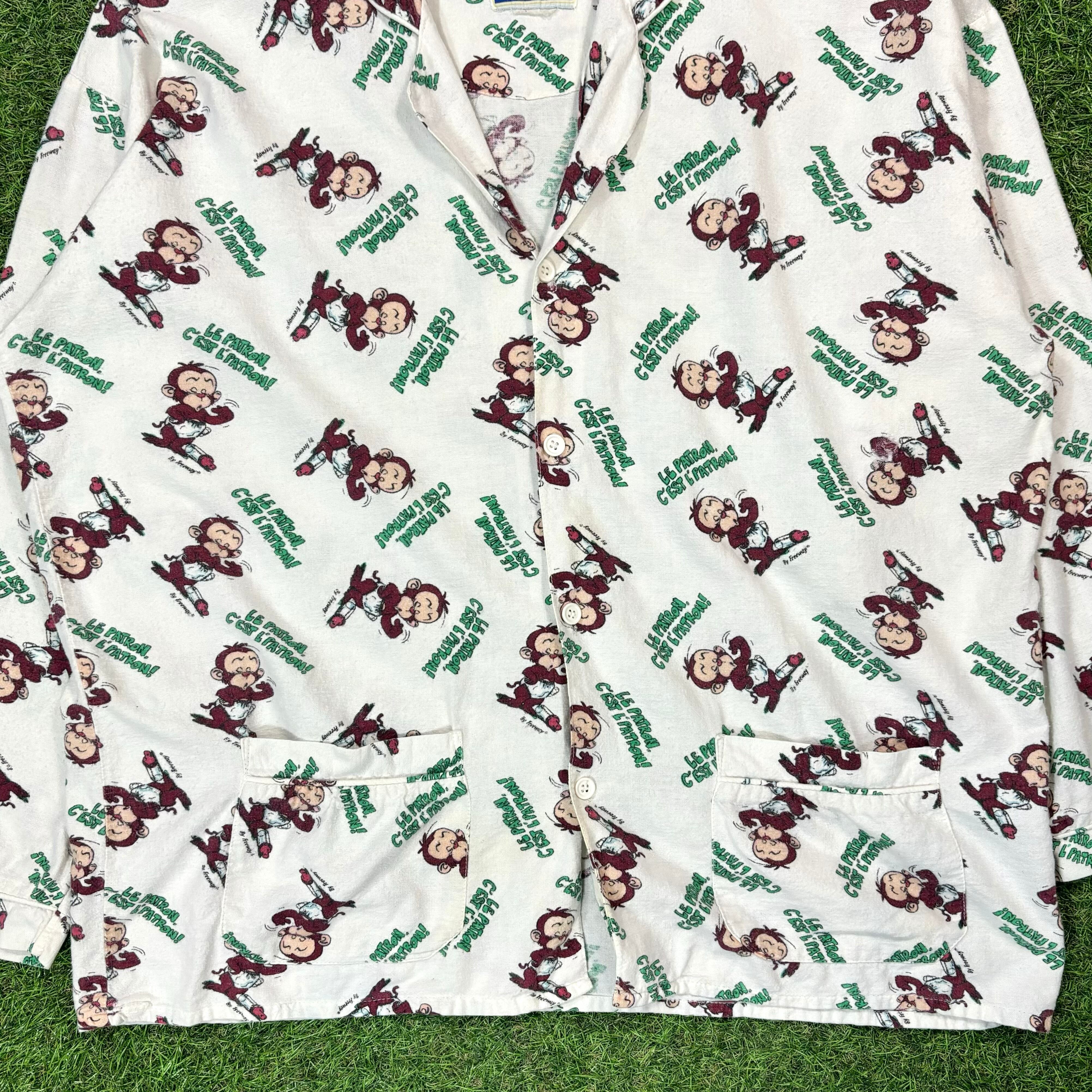 【Men's】 80s - 90s おさるさん 総柄 イラスト 開襟 パジャマシャツ / 80年代 90年代 動物 アニマル 柄シャツ 古着 開襟シャツ