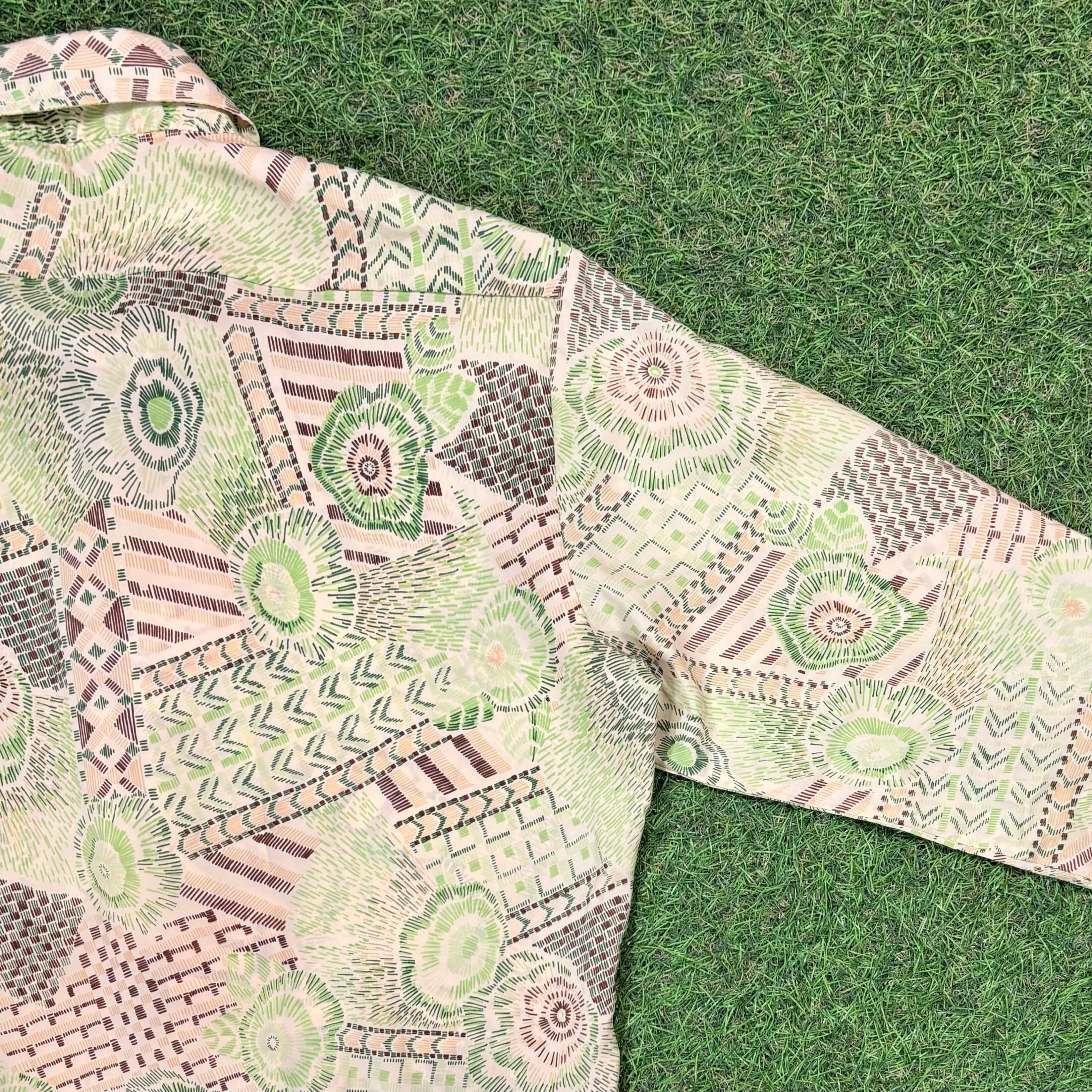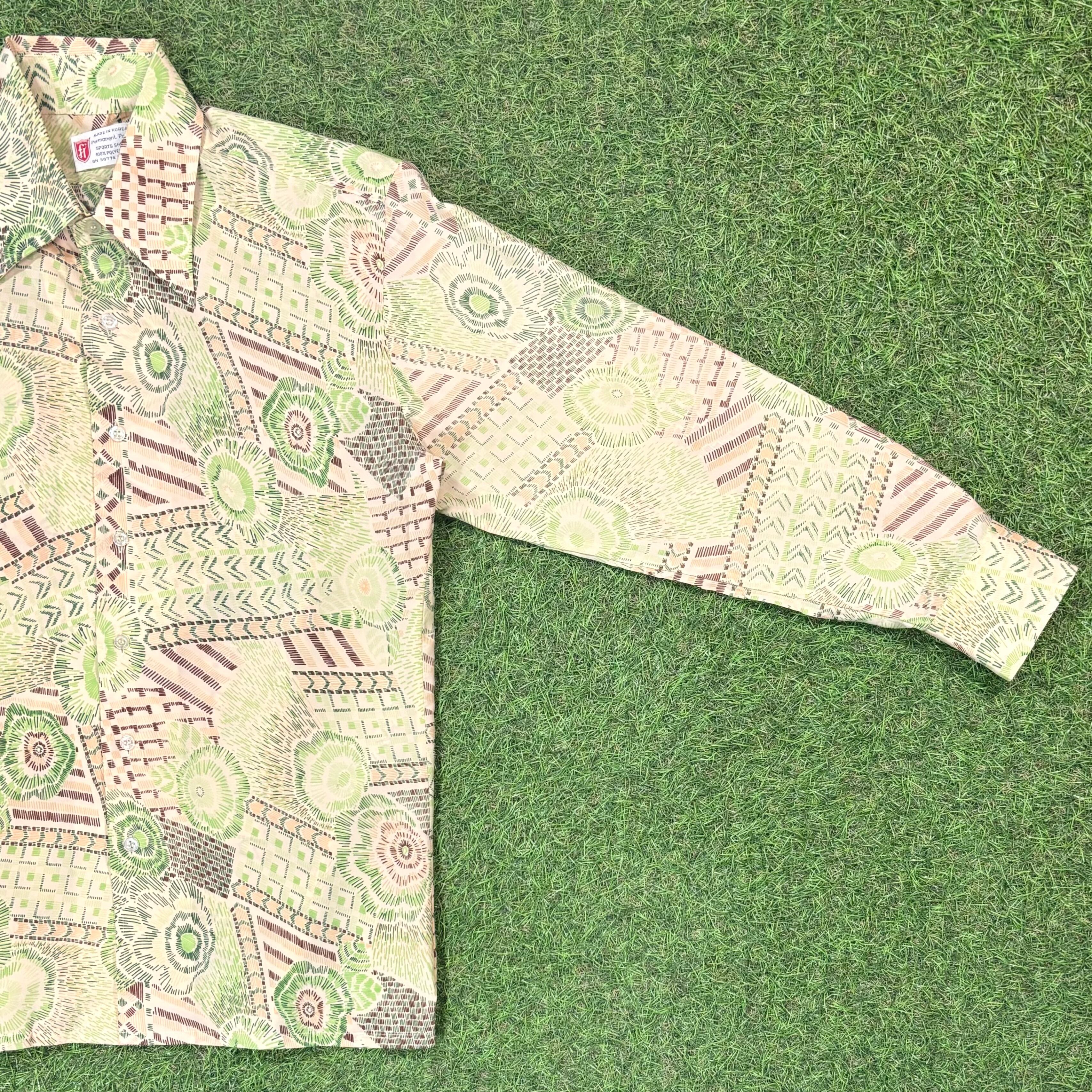 【Men's】 70s エスニック 総柄 ポリエステル 長袖シャツ / 70年代 シャツ 柄シャツ ポリシャツ 古着 ヒッピー オリエンタル