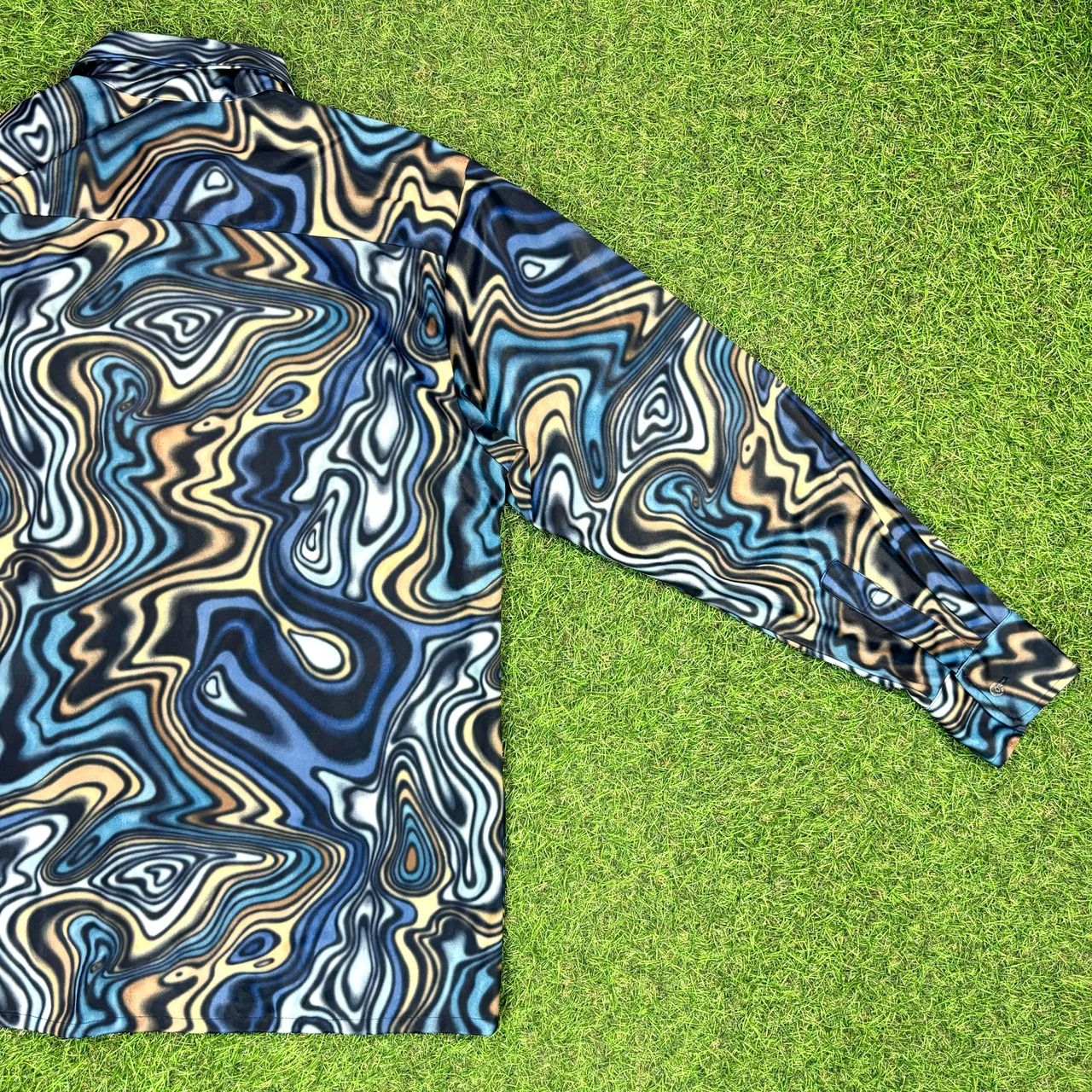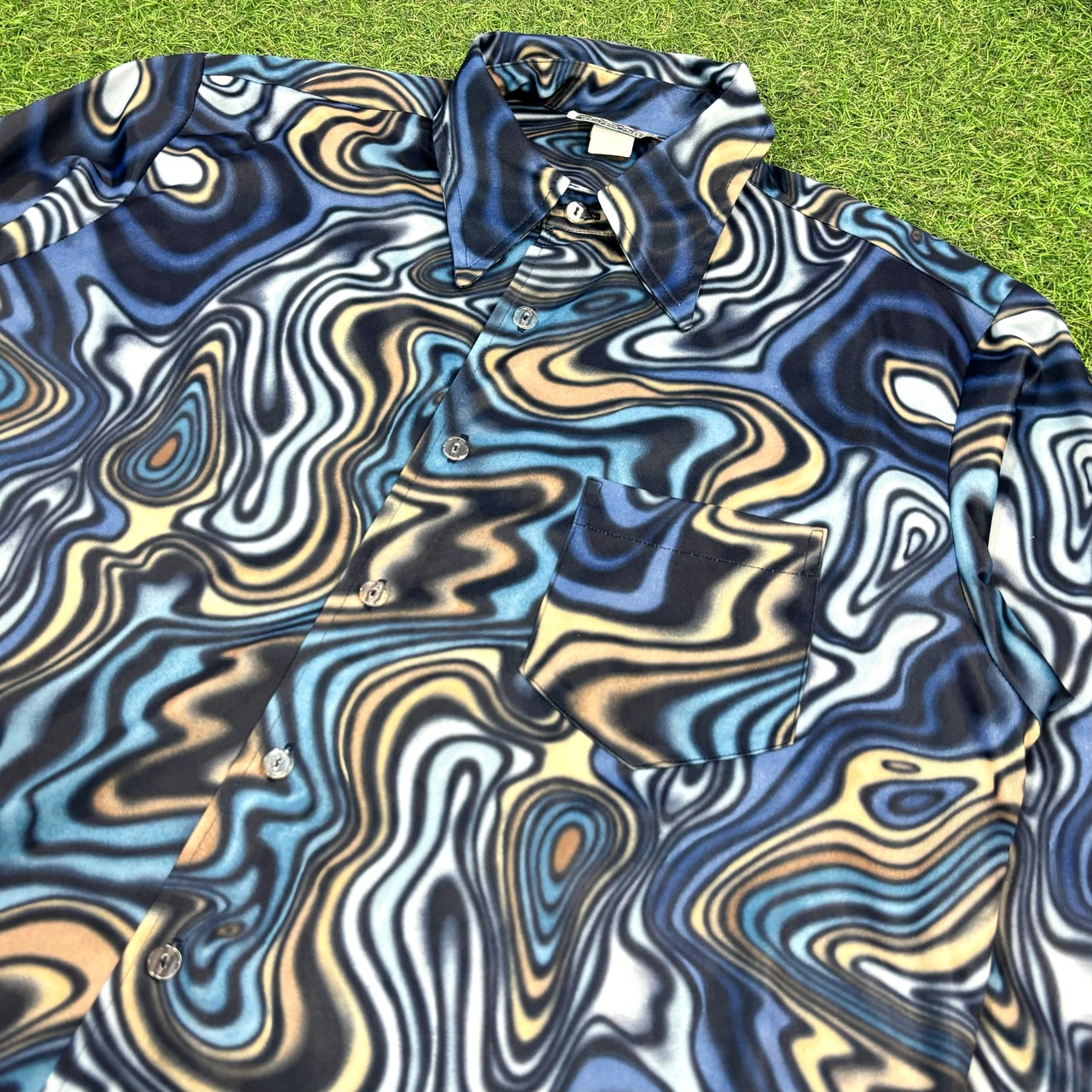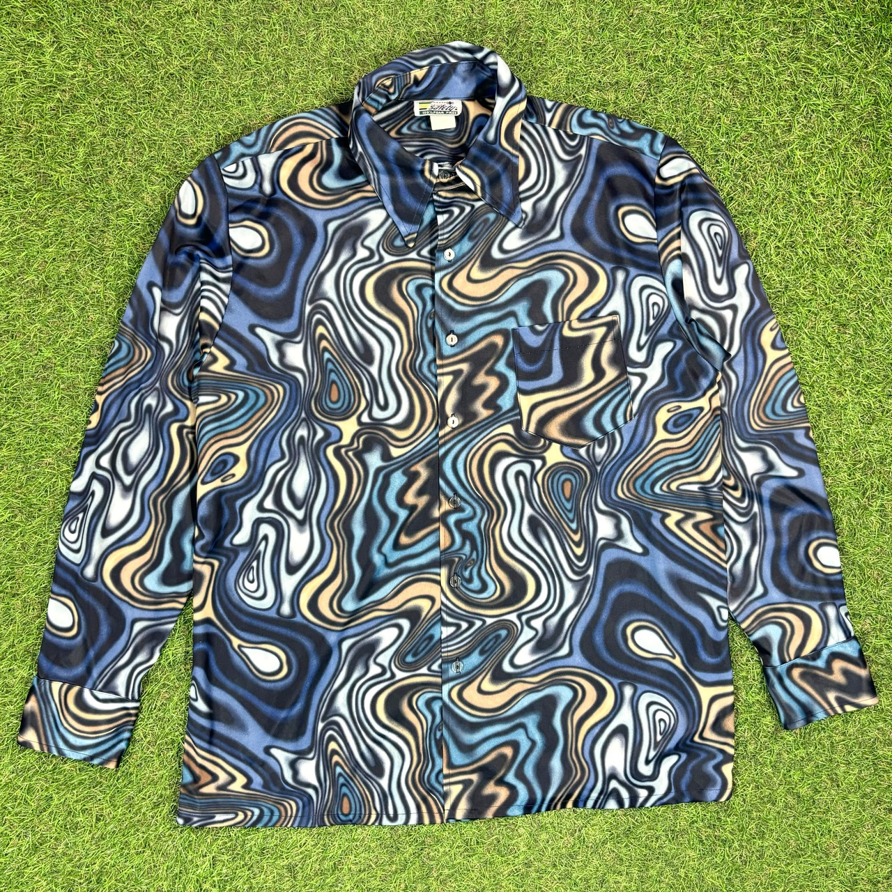 【Men's】 70s サイケデリック 総柄 ポリエステル シャツ / Made In USA 70年代 長袖 長袖シャツ 柄シャツ ポリシャル サイケ ヒッピー アメリカ製