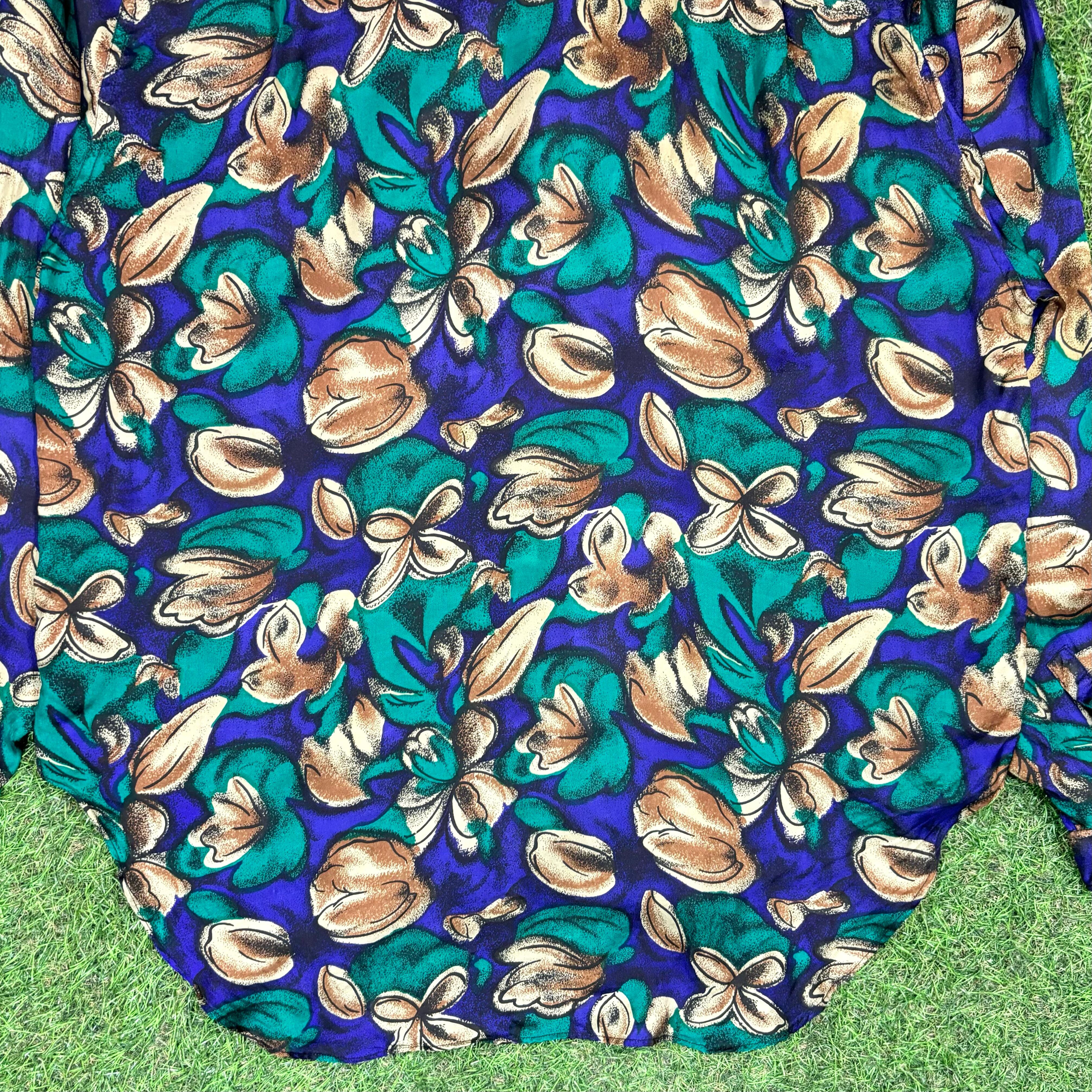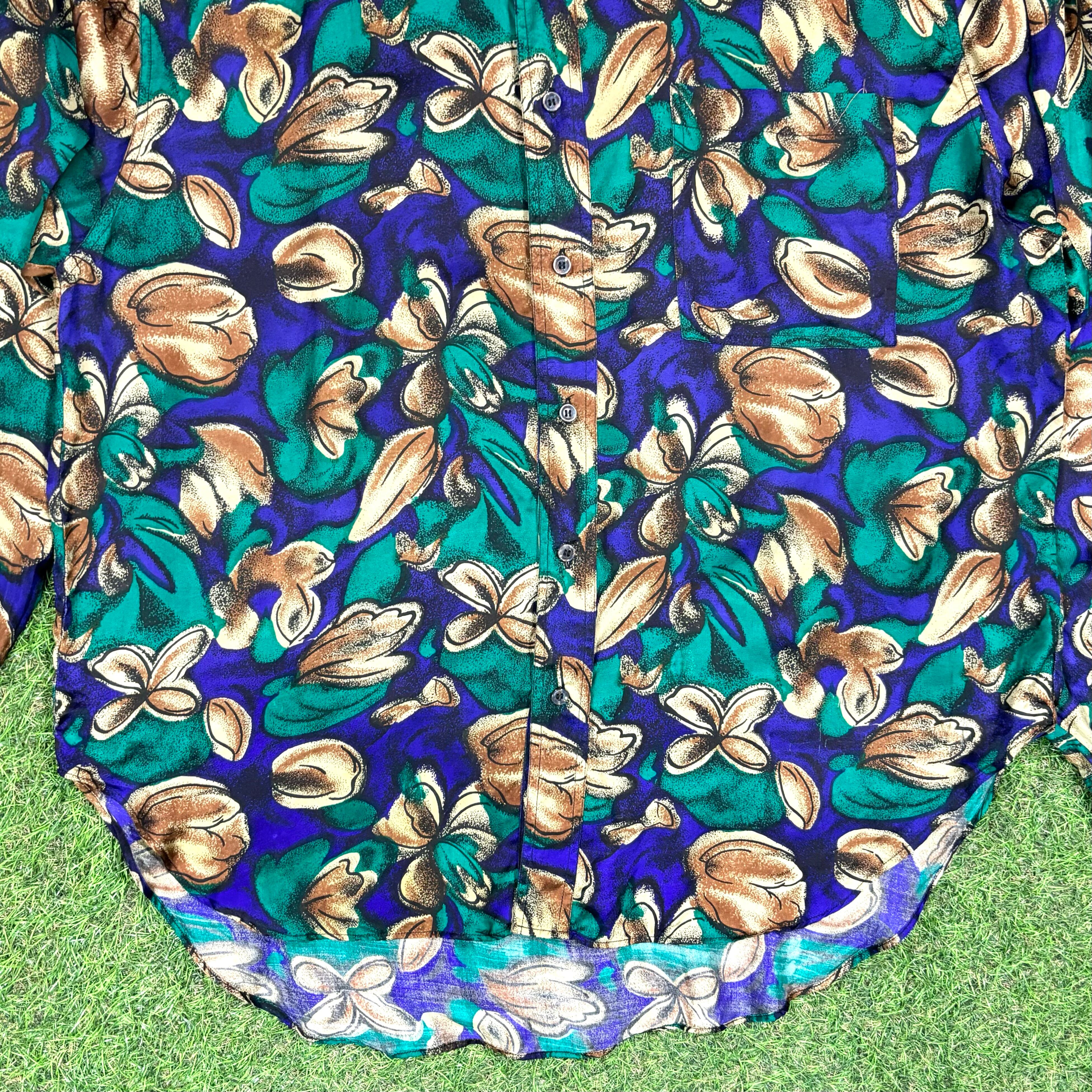 【Men's】 90s ボタニカル 総柄 シルクシャツ / 90年代 古着 シャツ シルク 柄シャツ サイケデリック サイケ 紫 パープル グリーン 緑