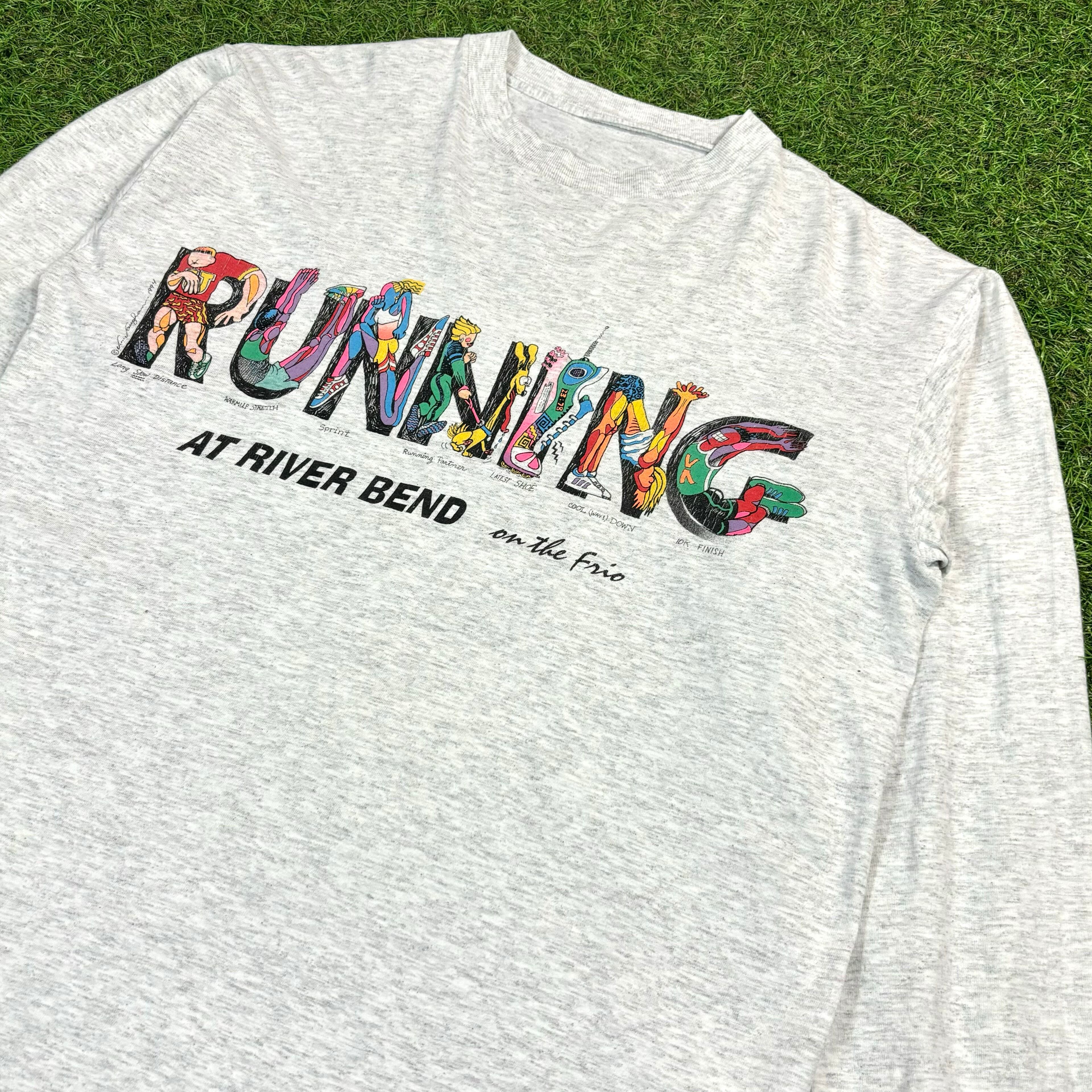 【Men's】 RUNNING イラスト グレー 長袖Tシャツ / ティーシャツ T-Shirts ロンT ロンティー 長袖