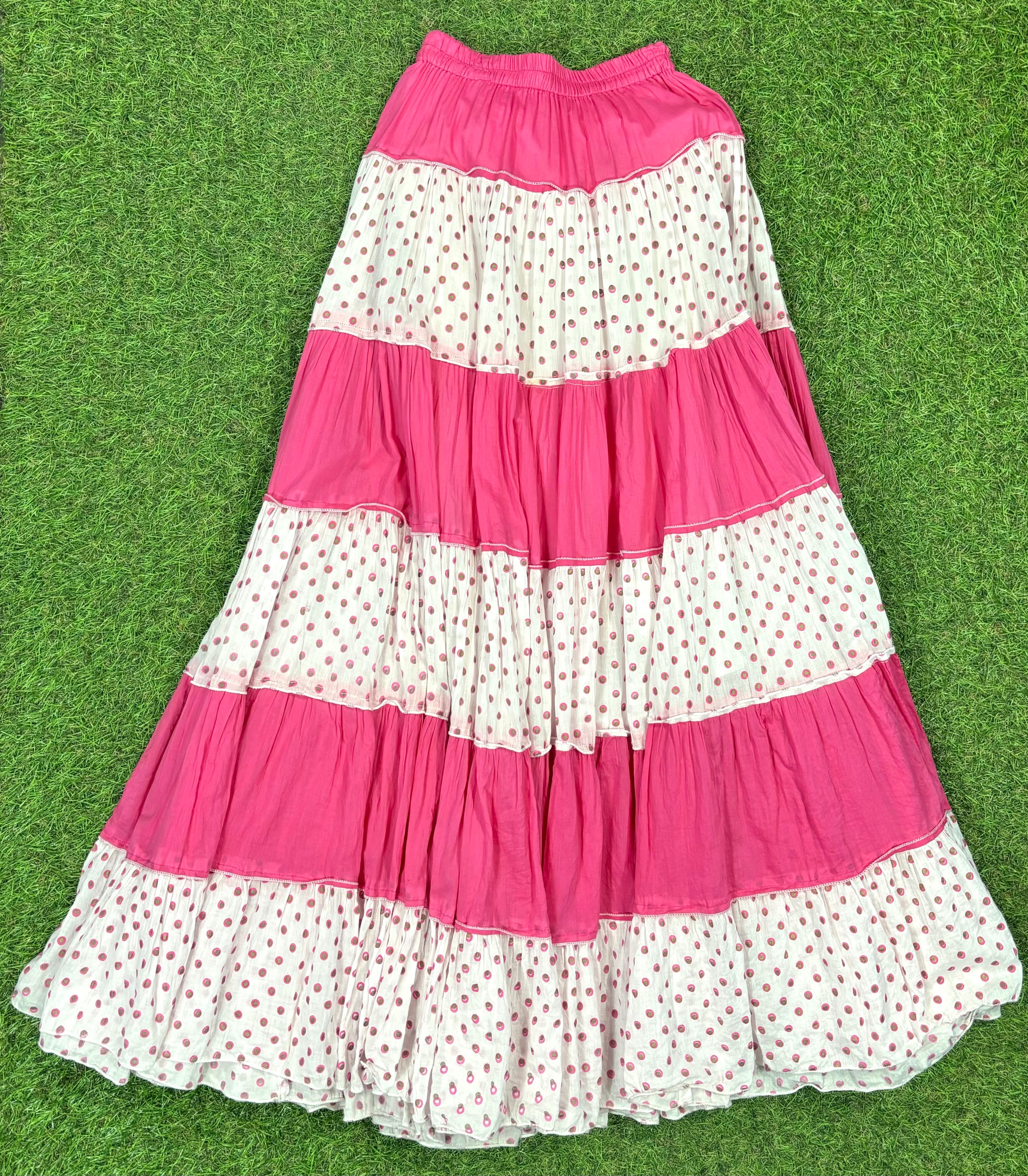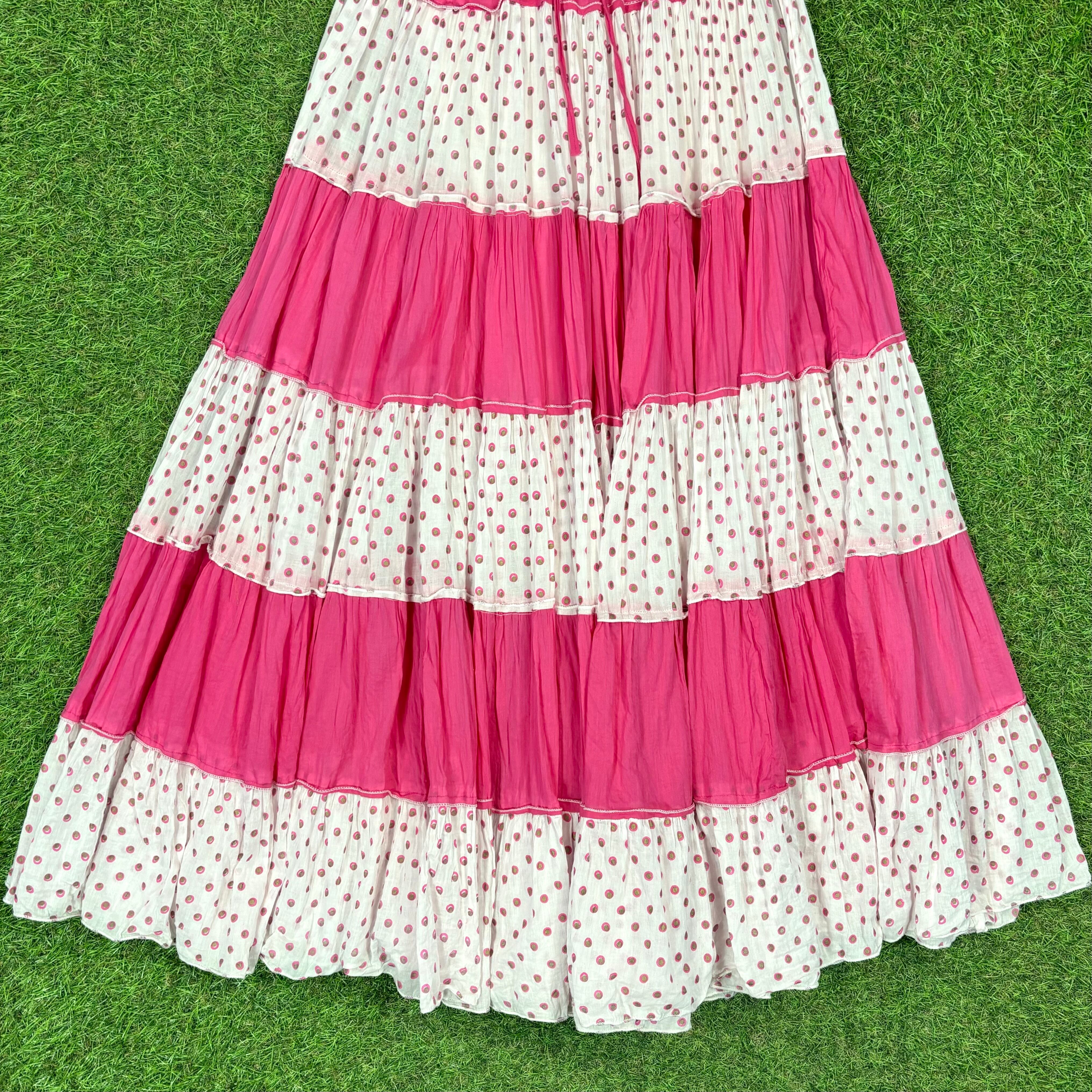 【Lady's】 ピンク ホワイト ティアード ロング スカート / 古着 ティアードスカート ロングスカート レディース
