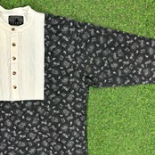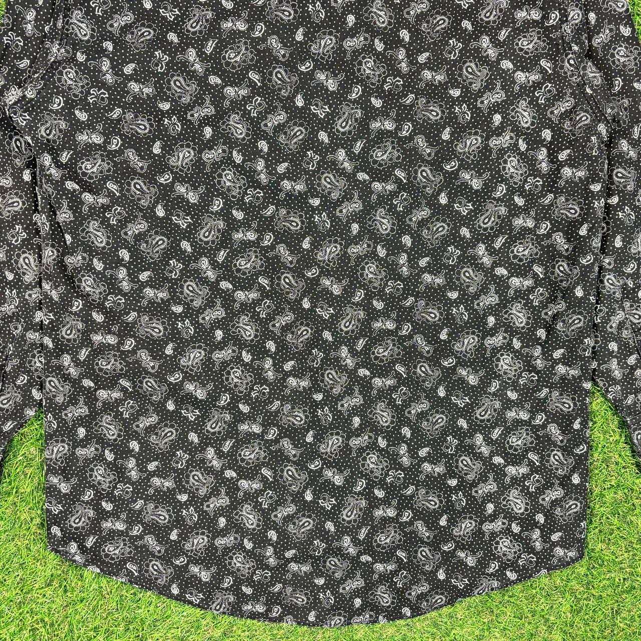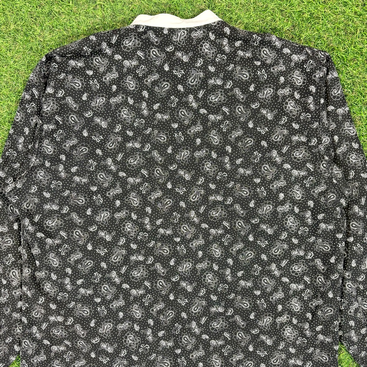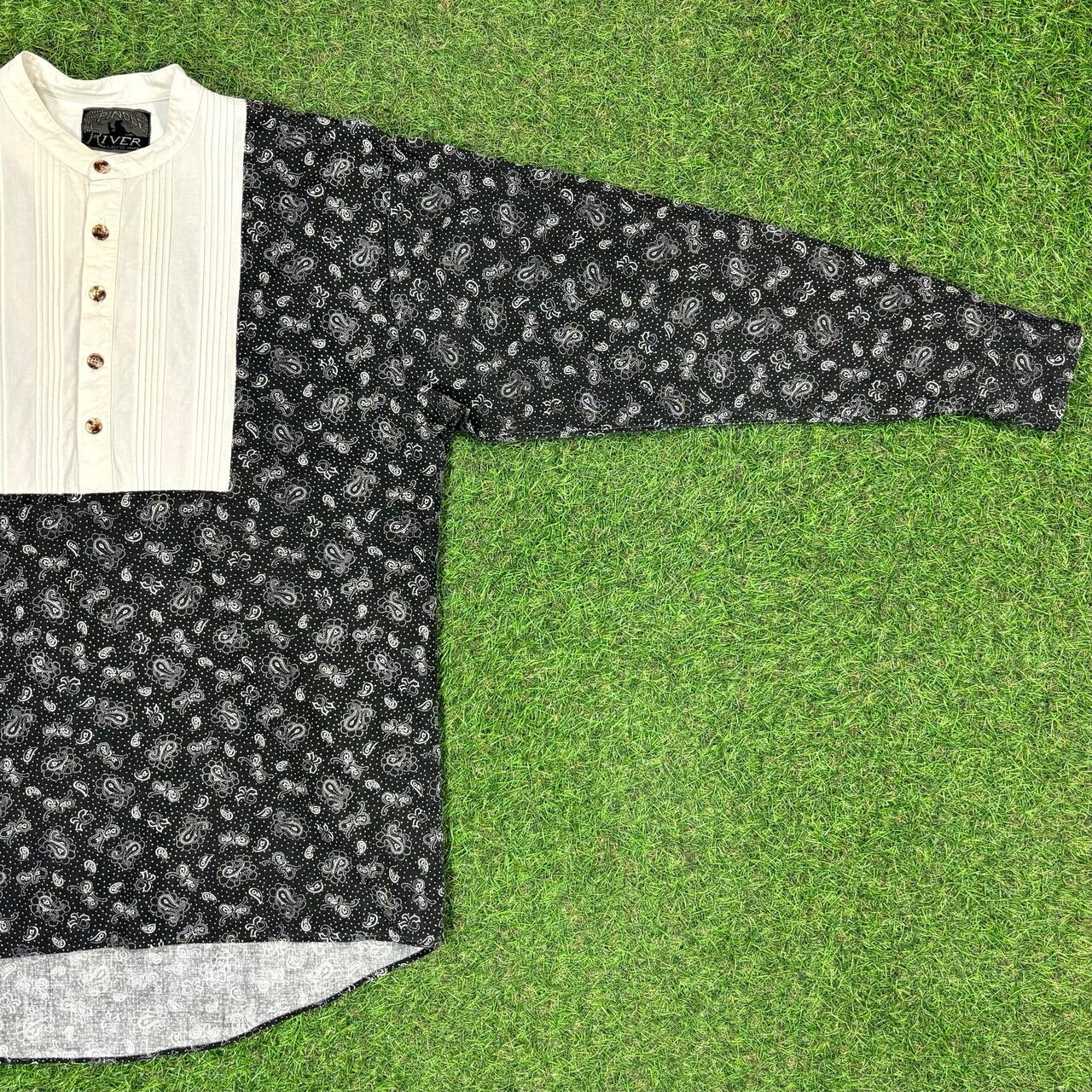 【Men's】 90s ペイズリー デザイン シャツ / 90年代 古着 シャツ 長袖 黒 ブラック 柄シャツ ノーカラー 大人古着 プリーツ タキシード