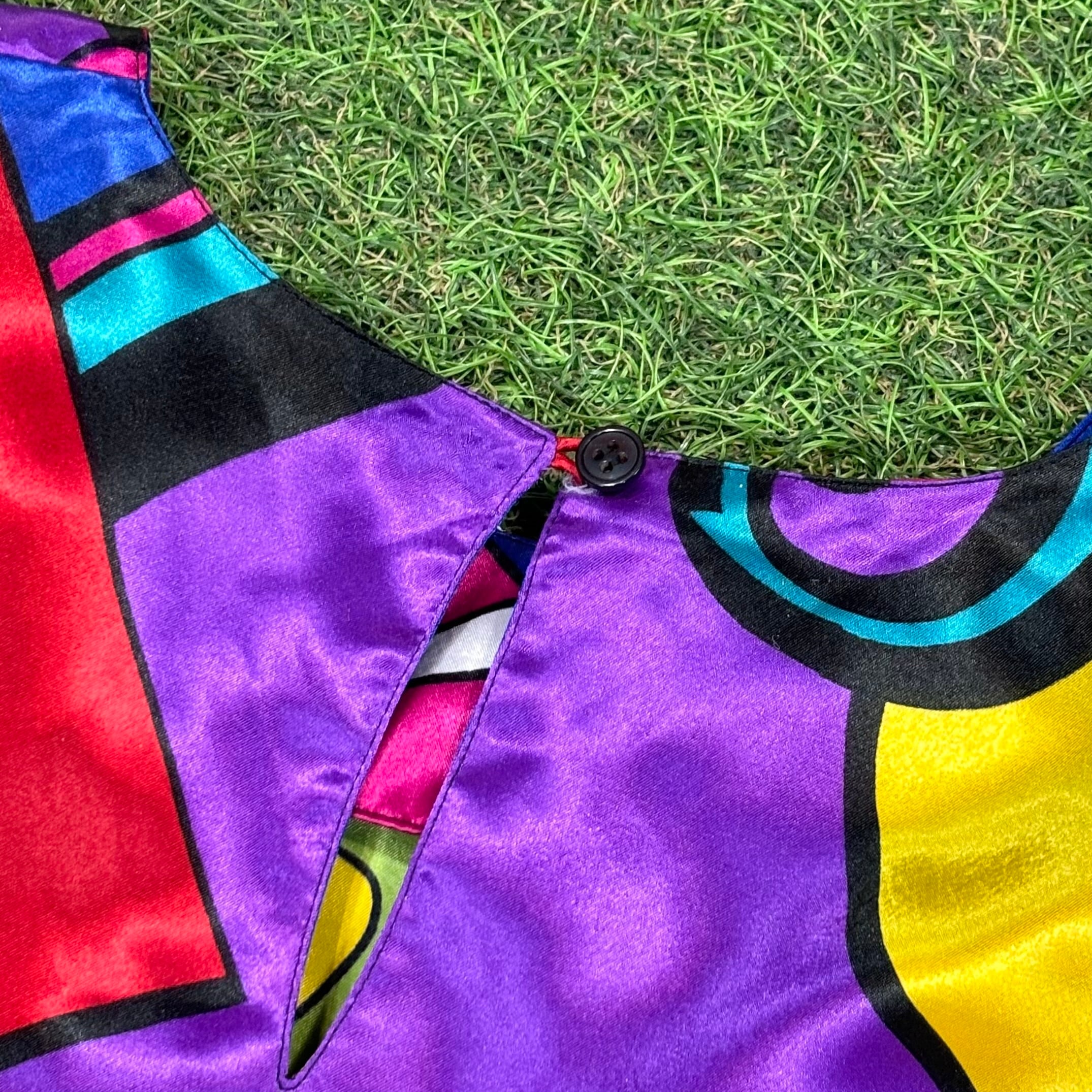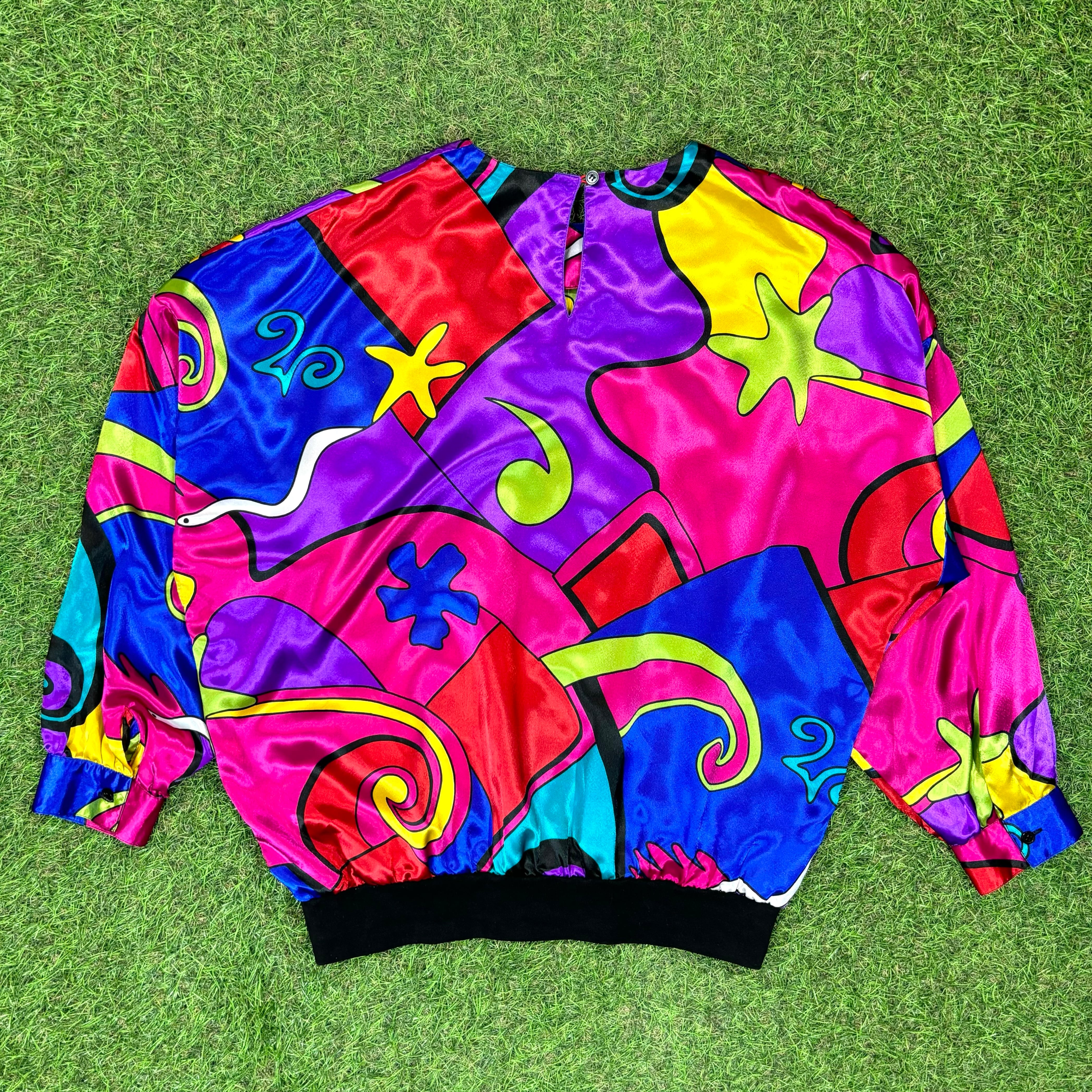 【Lady's】 80s シャイニー 総柄 デザイン トップス / 80年代 古着 レディース 柄シャツ Vintage ヴィンテージ 春 秋