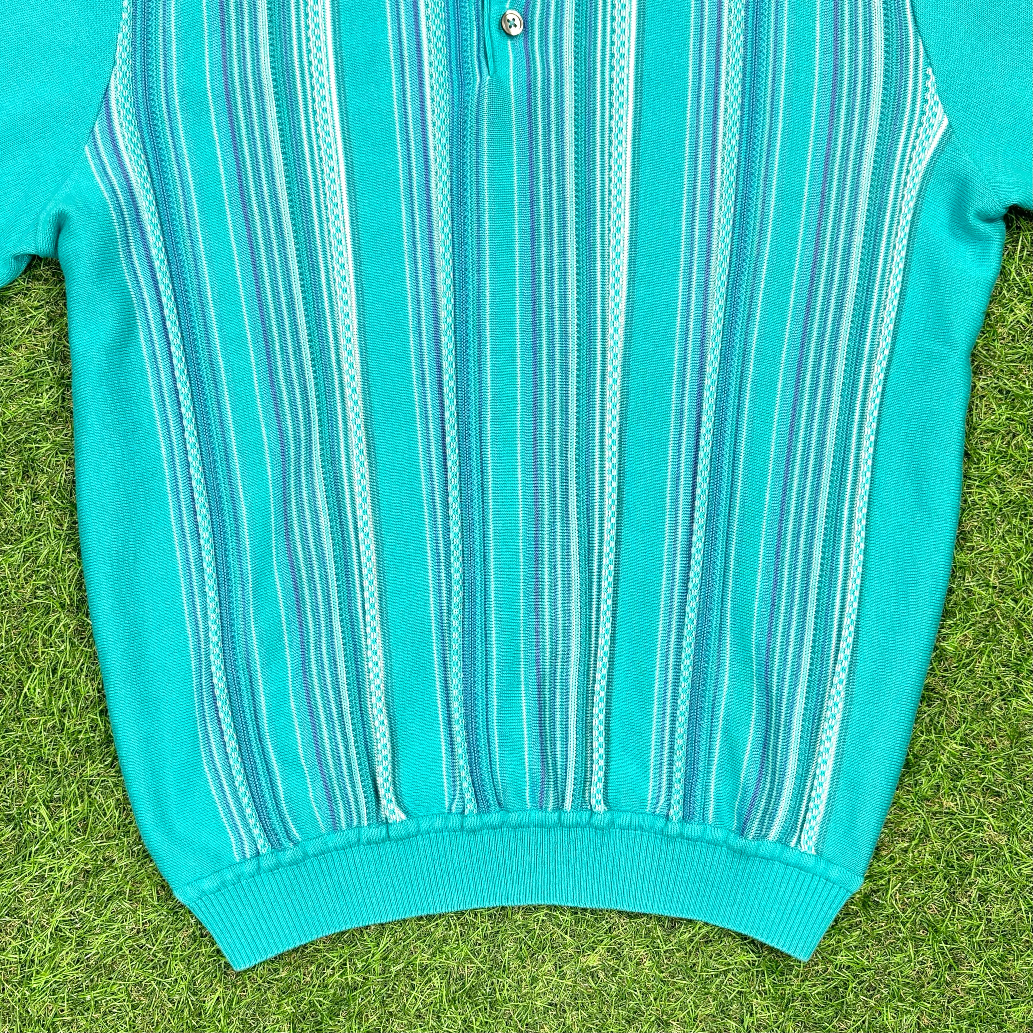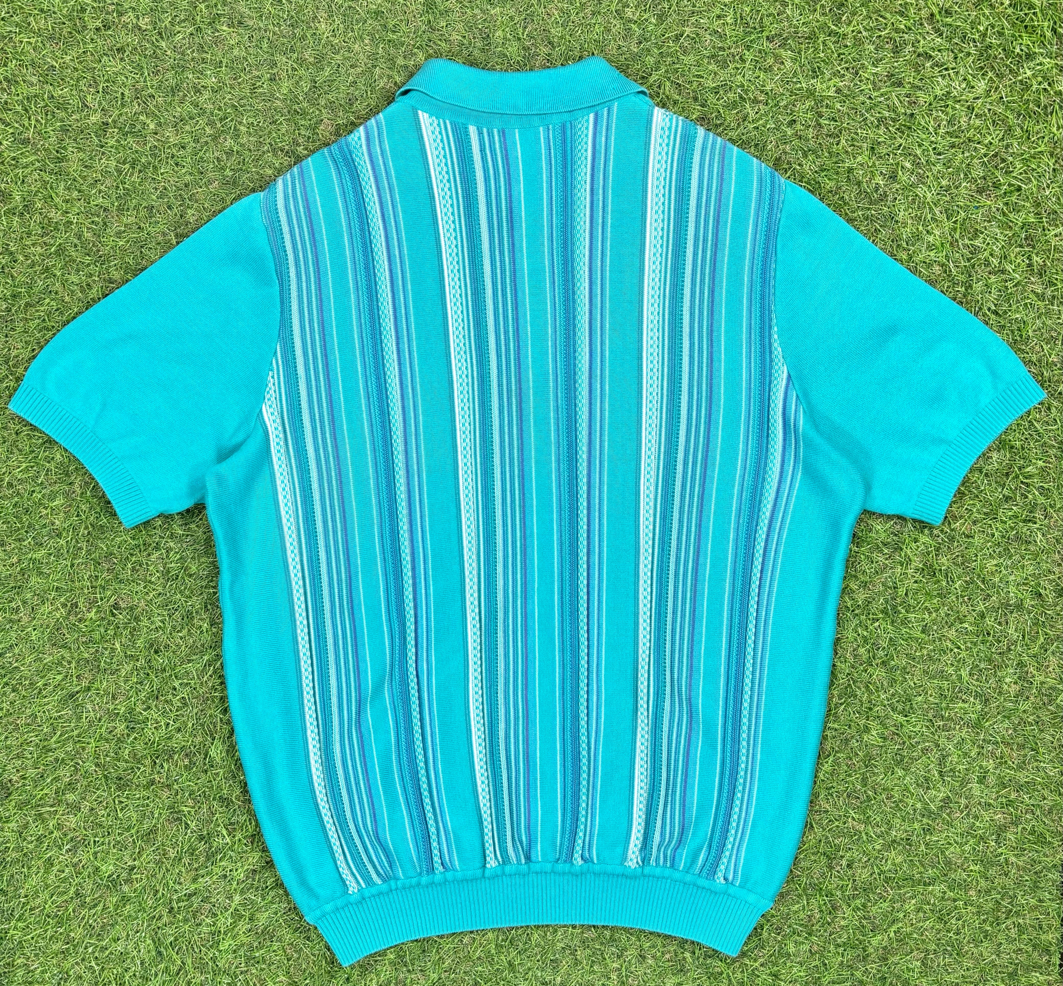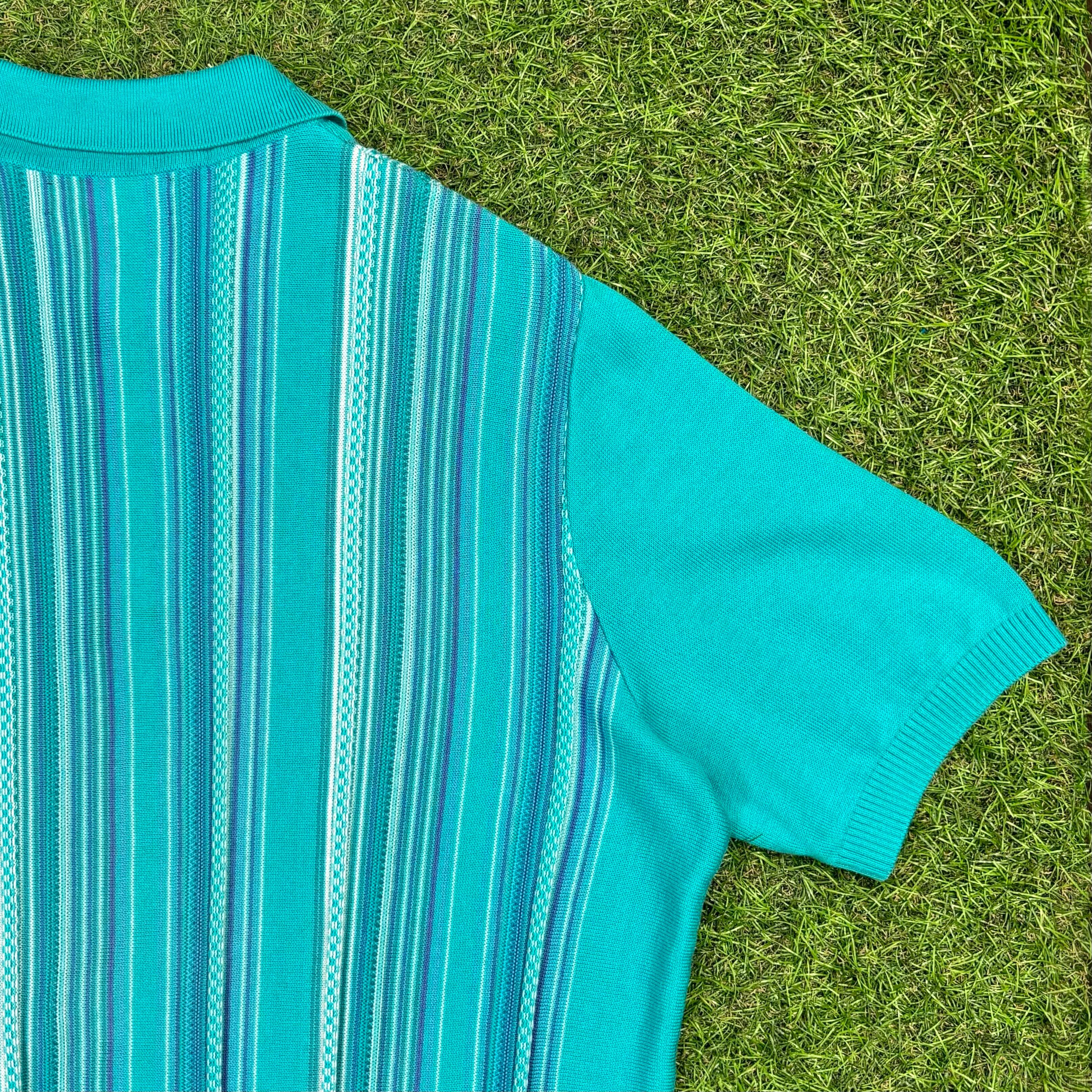 【Men's】 90s ミントグリーン ストライプ サマーニット トップス / Made In USA 90年代 アメリカ製 半袖ニット 緑 メンズ 古着 Vintage ヴィンテージ 春 夏 半袖 ニット