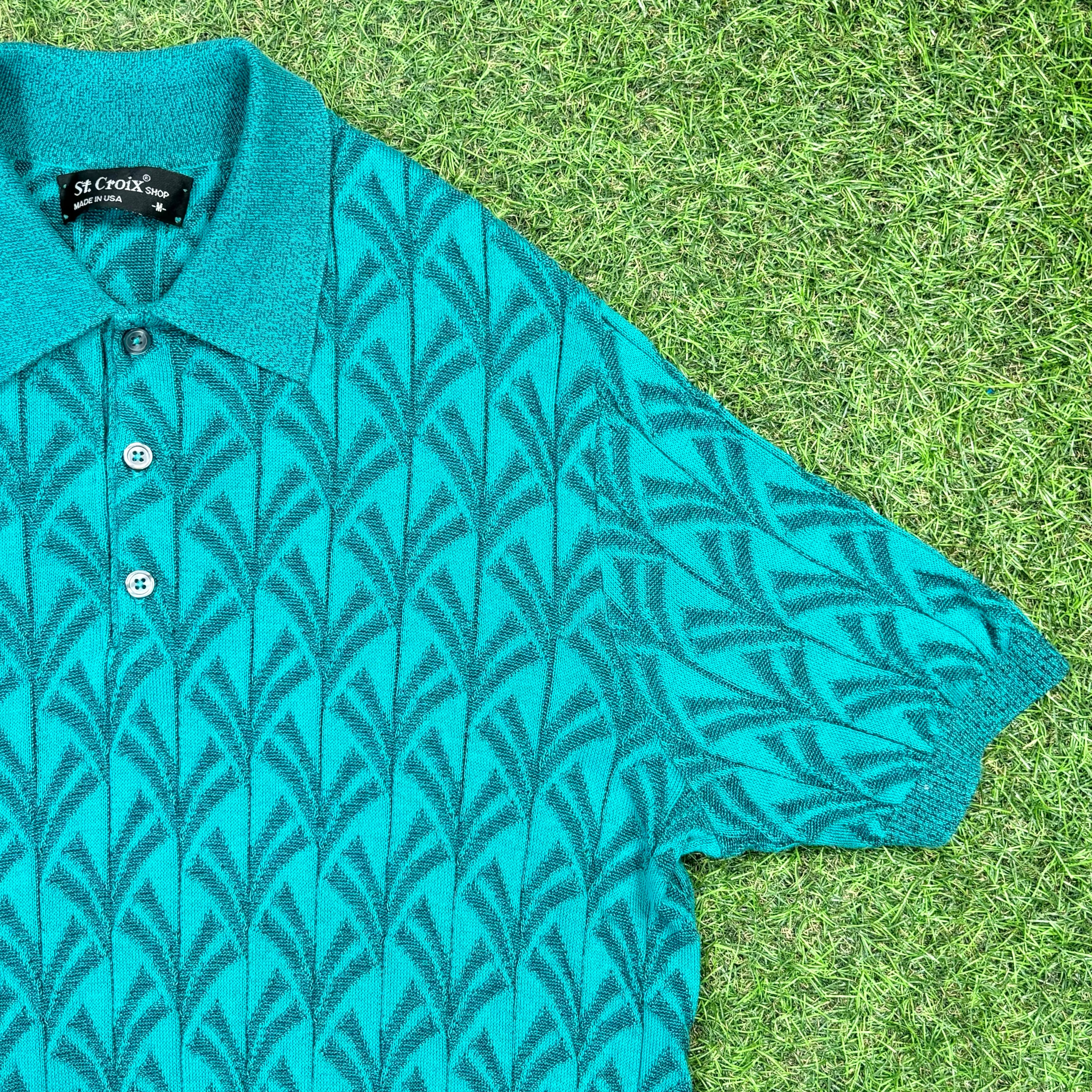 【Men's】 90s 総柄 グリーン サマーニット トップス / Made In USA アメリカ製 90年代 古着 半袖ニット ニット 半袖 緑 春 夏