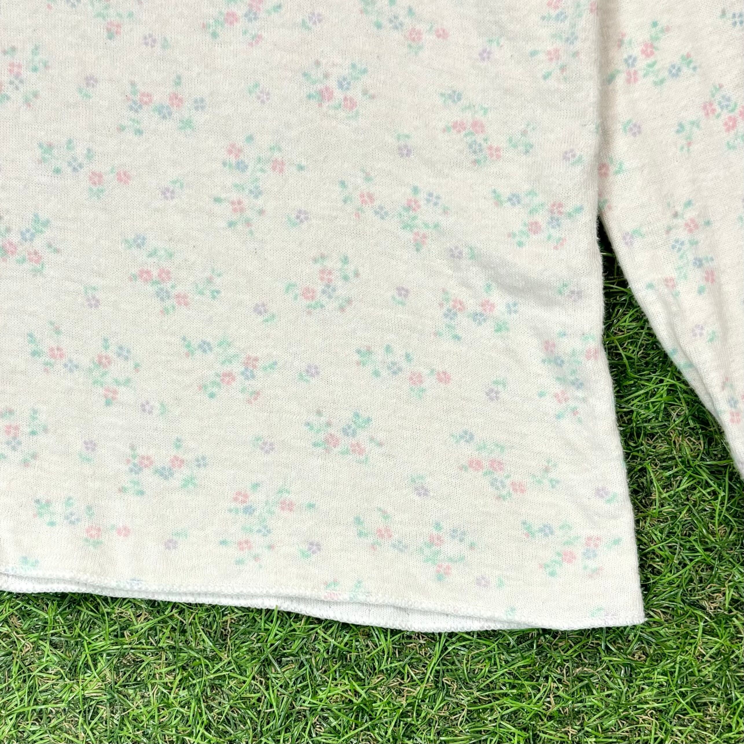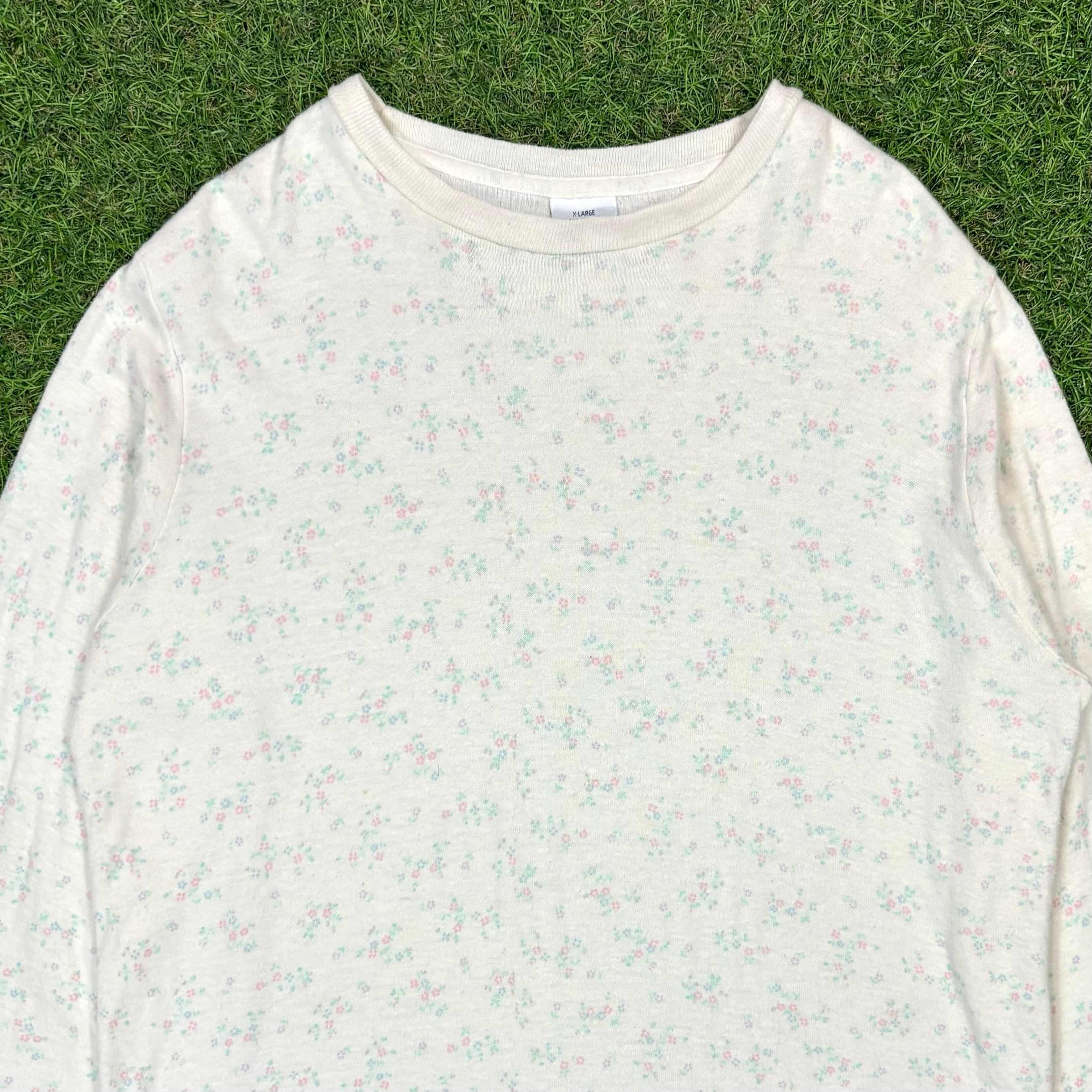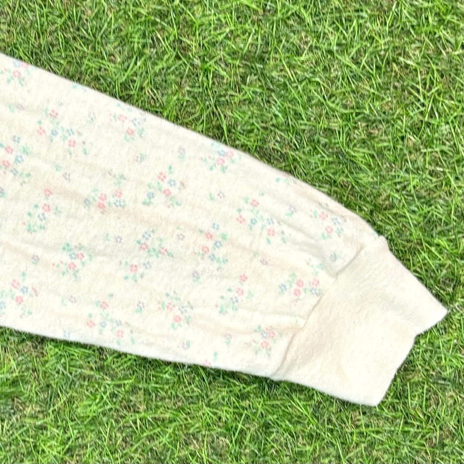 【Lady's】 80s アイボリー 花柄 長袖 トップス / Made In USA 80年代 古着 アメリカ製 アンダーシャツ 総柄 ロンT ロンティー Tシャツ