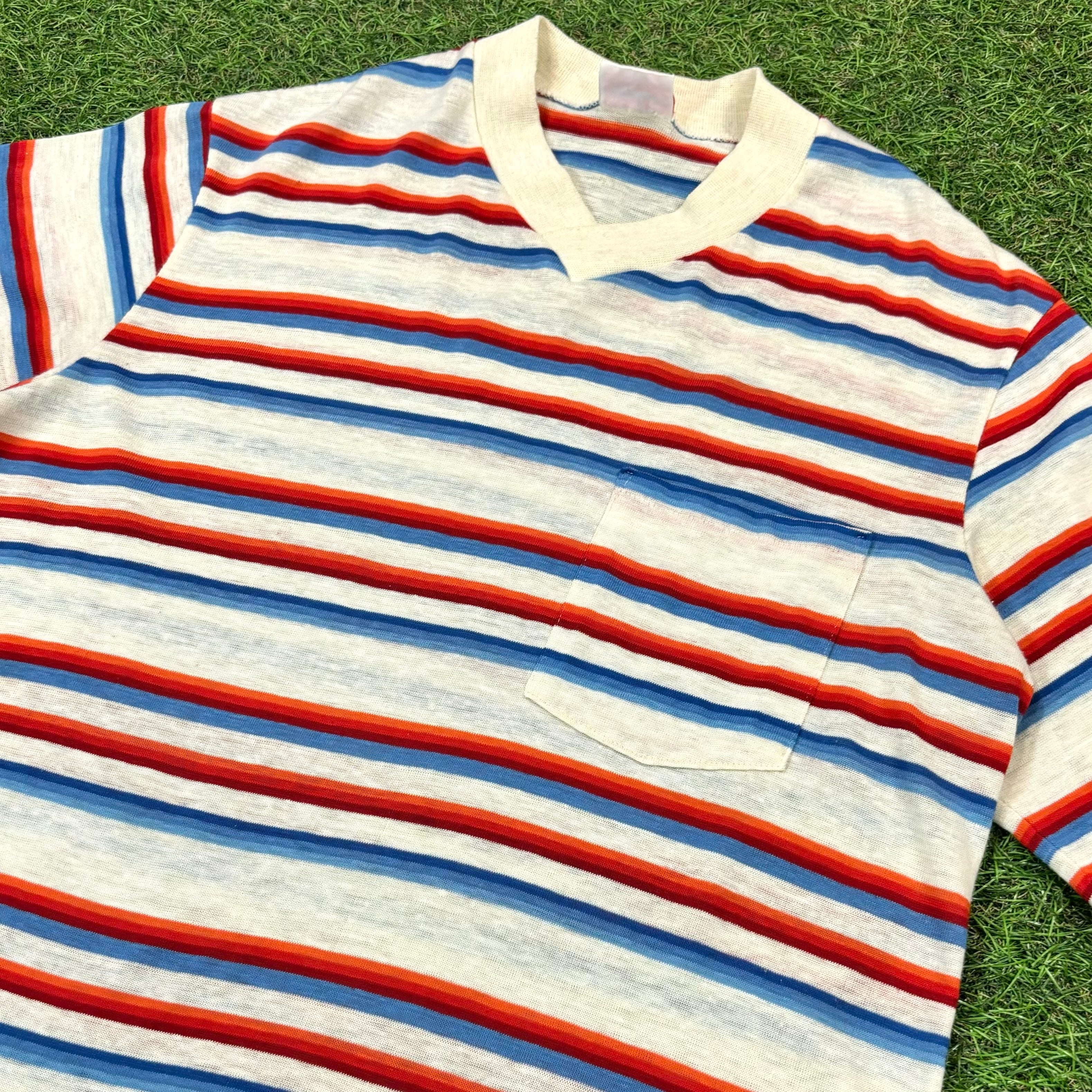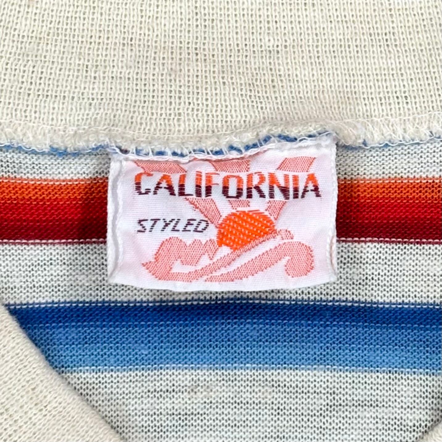 【Lady's】 70s - 80s Vネック ボーダー Tシャツ / 70年代 80年代 古着 T-Shirts ティーシャツ レトロ レディース トップス 半袖 サマーニット