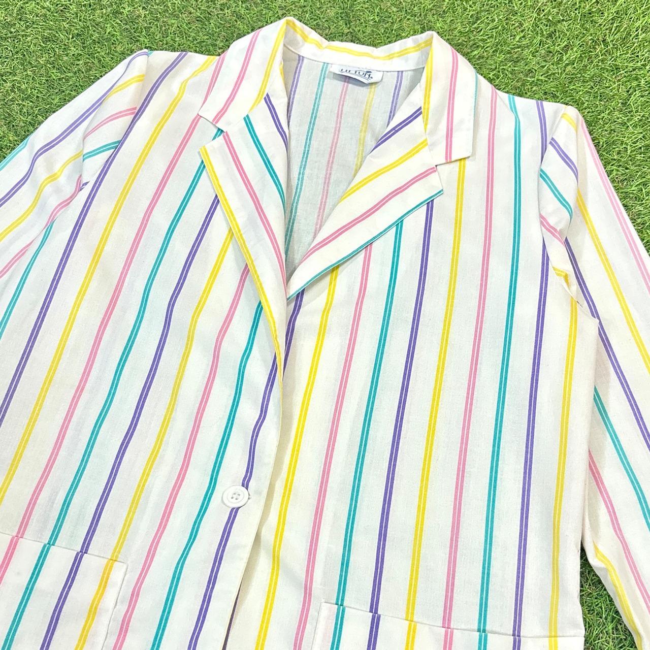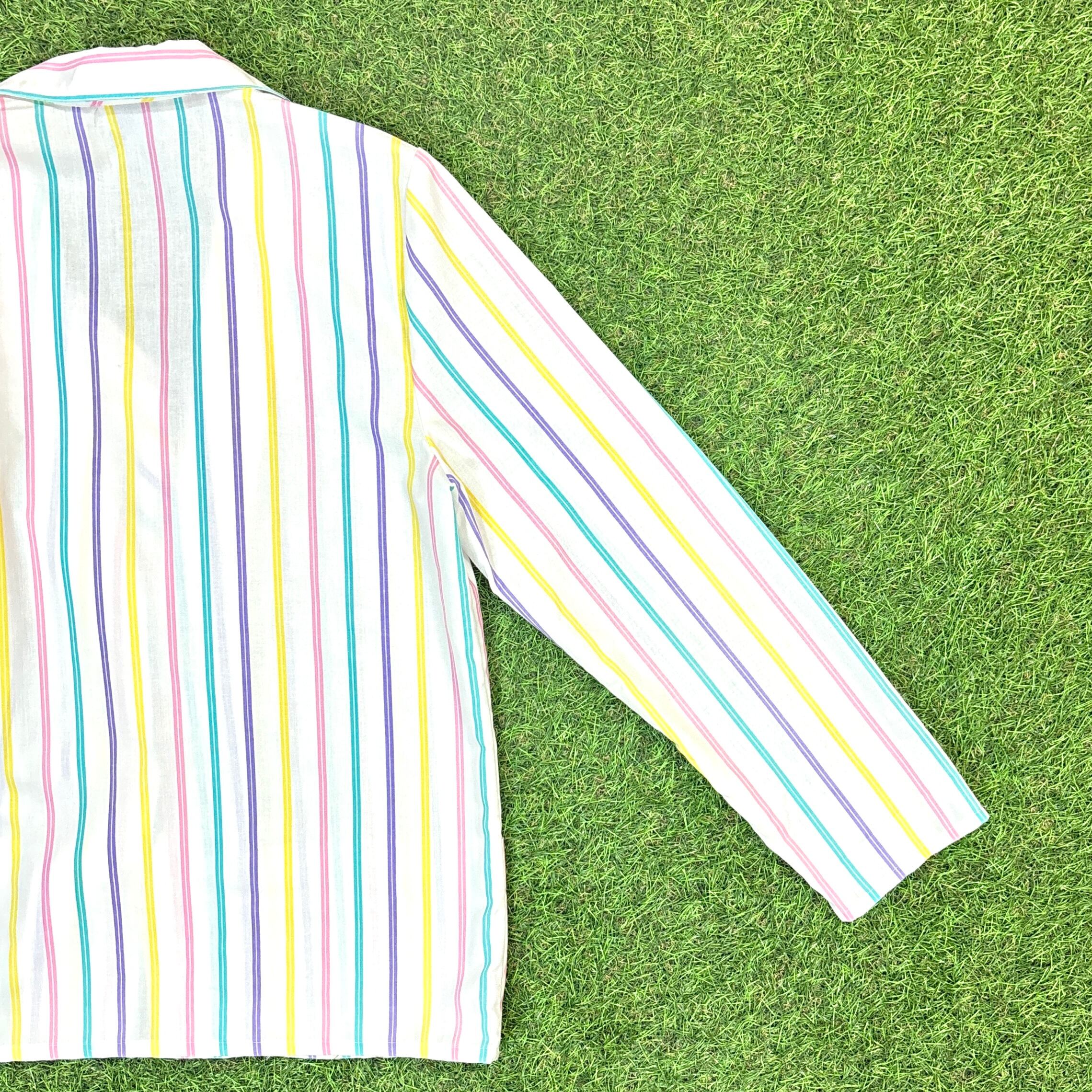 【Lady's】 80s - 90s パステル ストライプ テーラードジャケット / 80年代 90年代 ジャケット 春 白 ホワイト