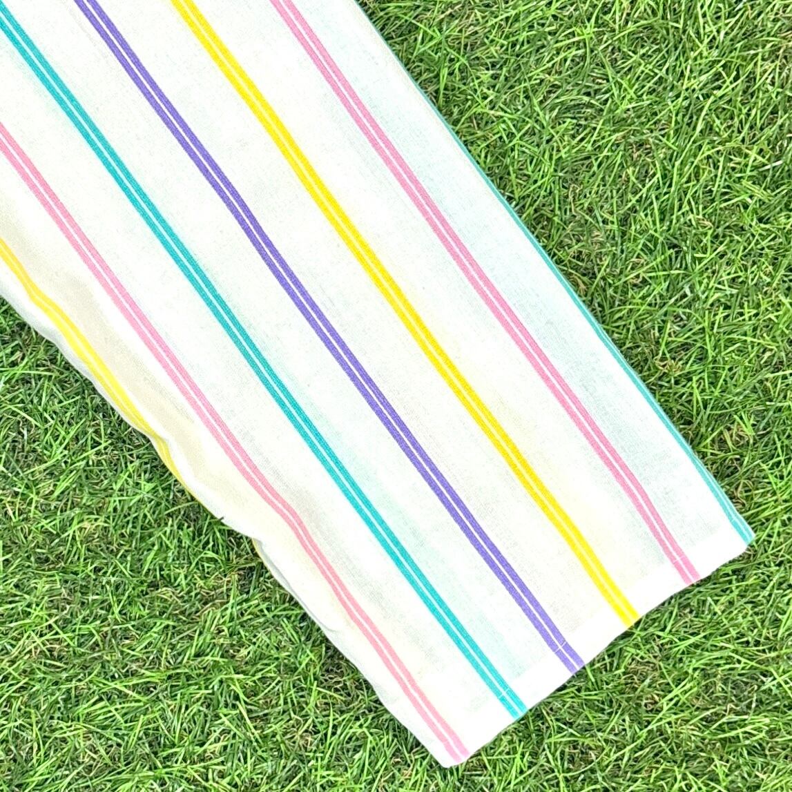 薄手の軽やかな素材感にパステルなストライプがとっても可愛いアイテムです。