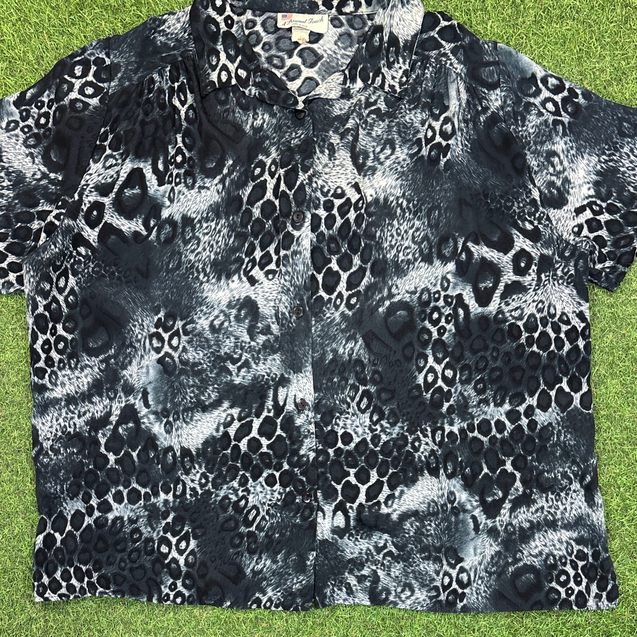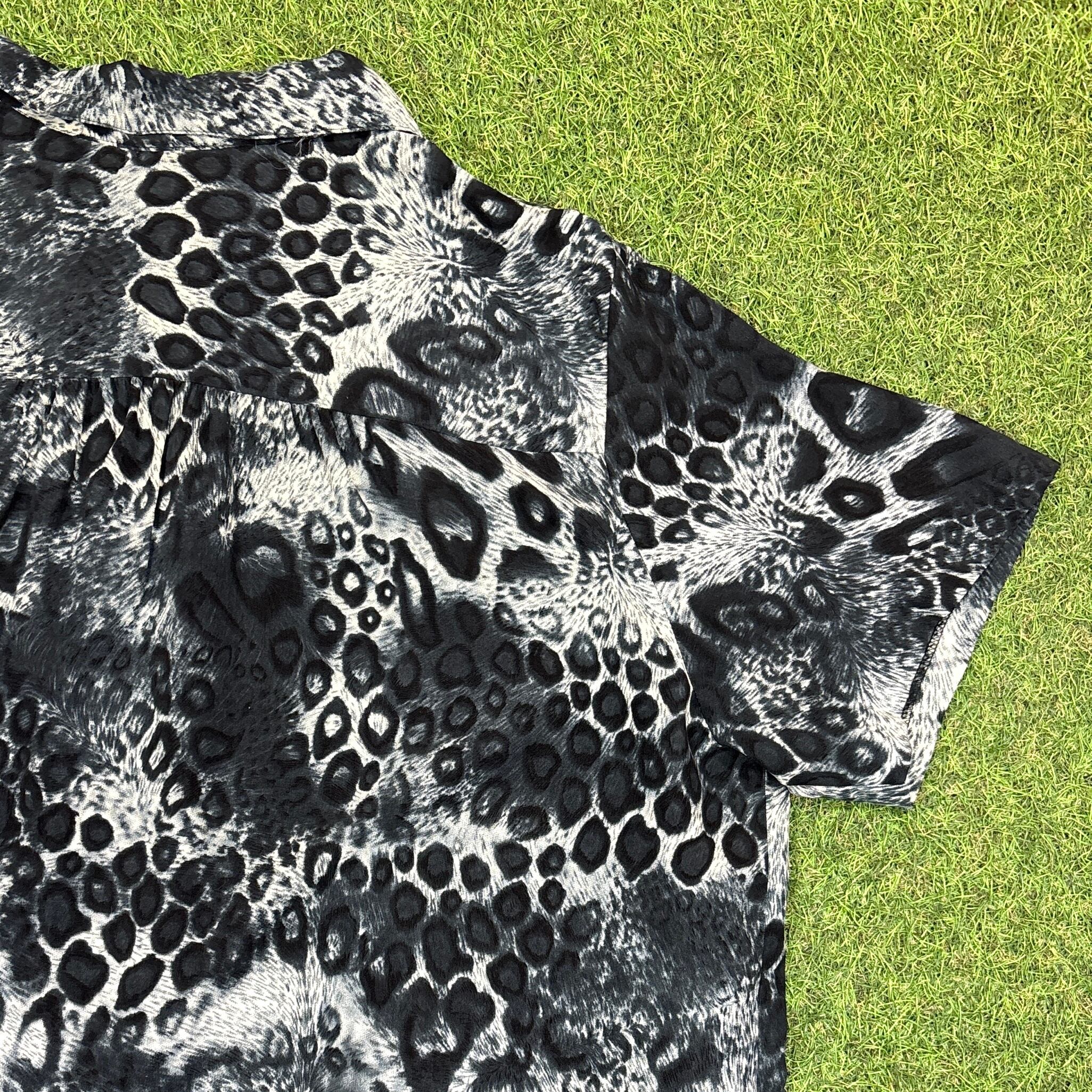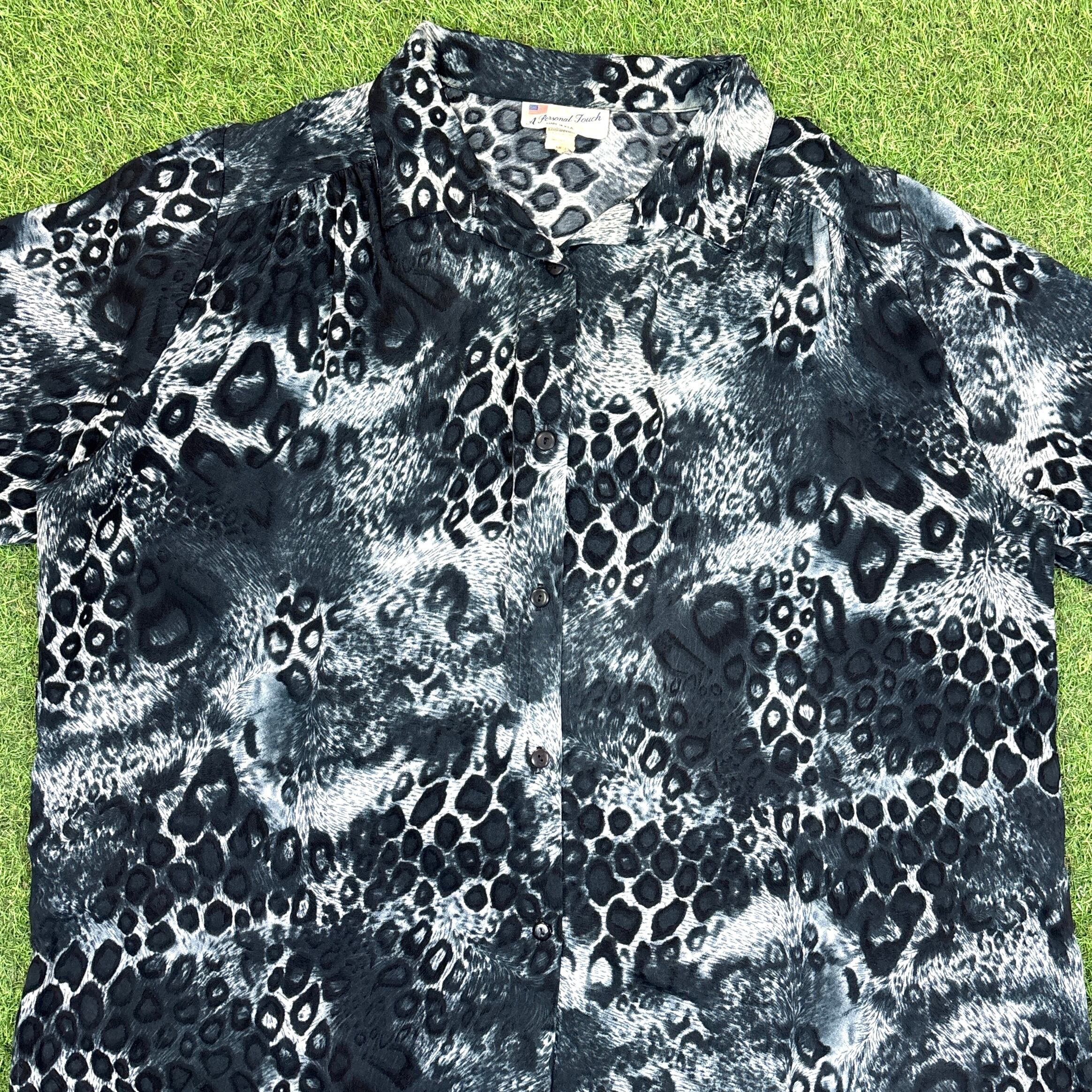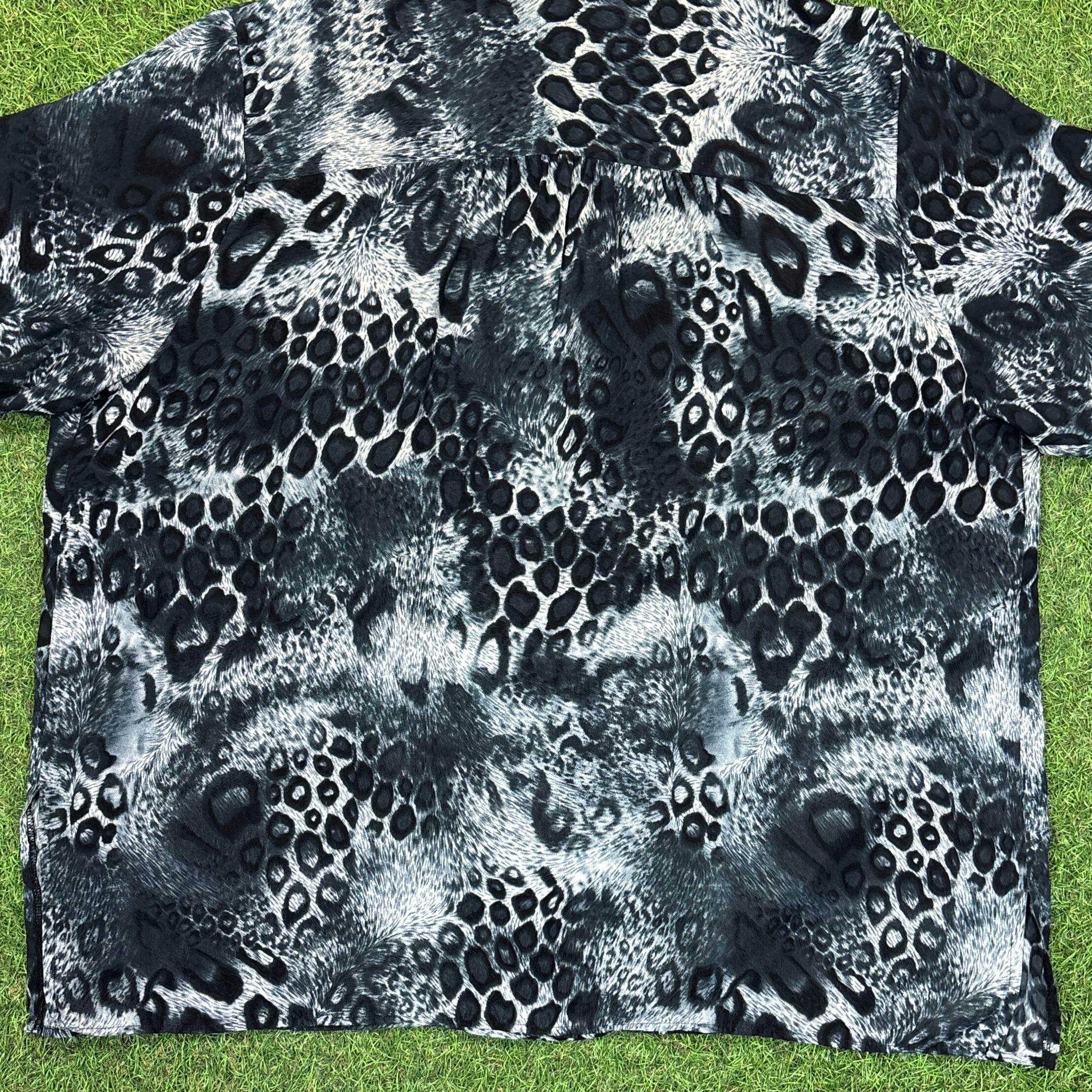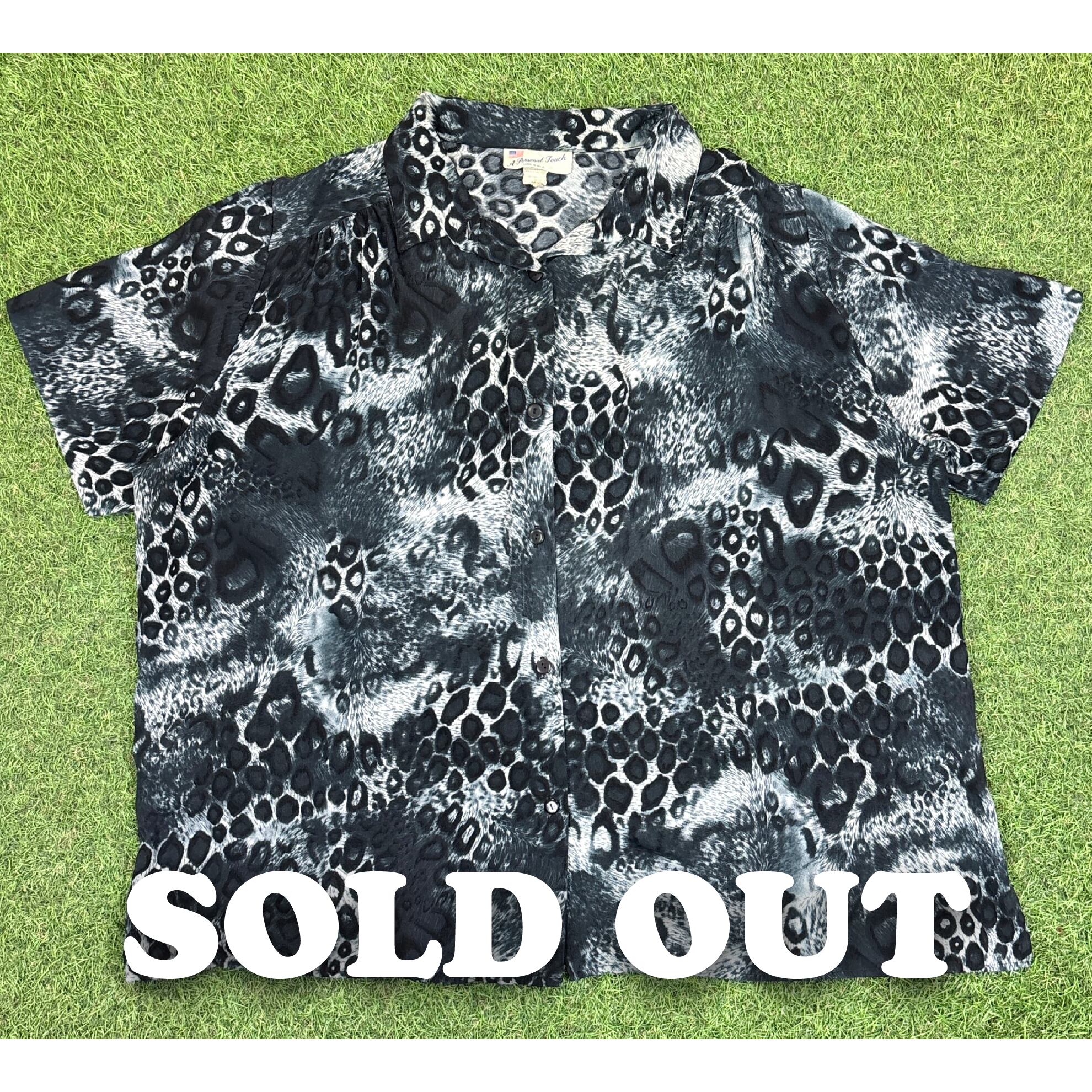 【Unisex】 90s シルバー レオパード 半袖シャツ / Made In USA 90年代 古着 半袖 シャツ アニマル 動物 総柄 ヒョウ柄 豹柄