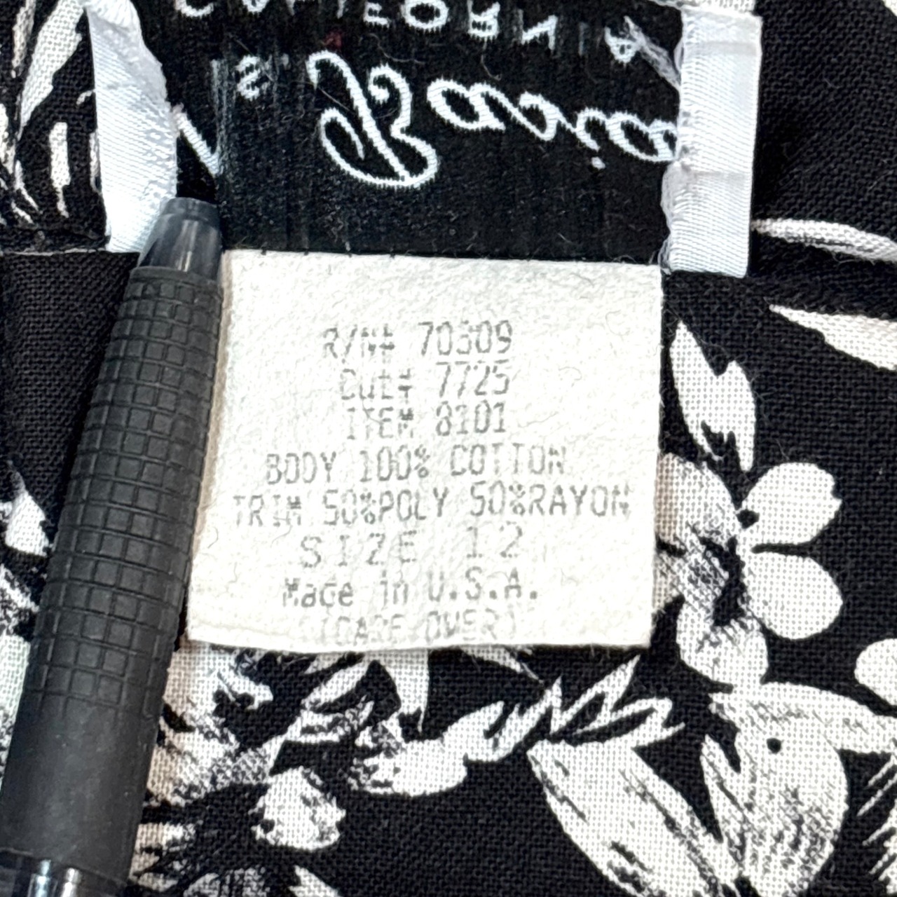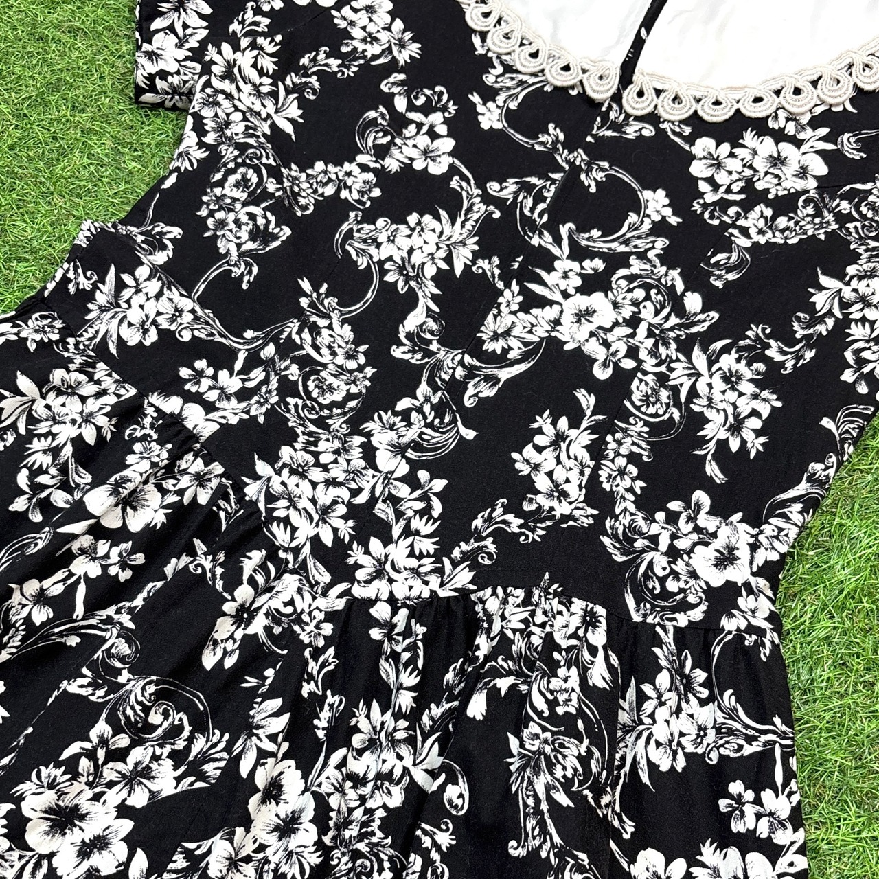 【Lady's】 80s レース カラー 花柄 半袖 ワンピース / Made In USA 80年代 古着 レディース 夏 モノトーン 白黒