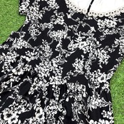 モノトーンカラーの花柄にレース襟がアクセントになっていてとっても可愛いアイテムです。