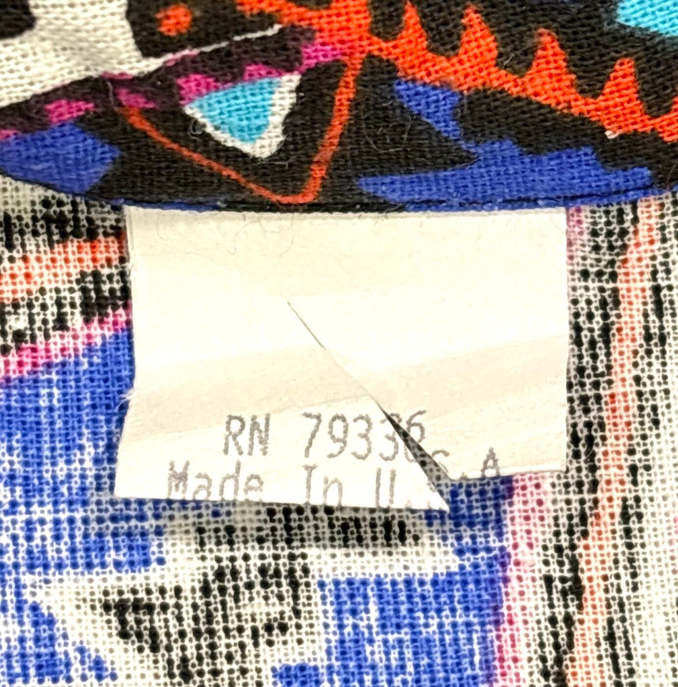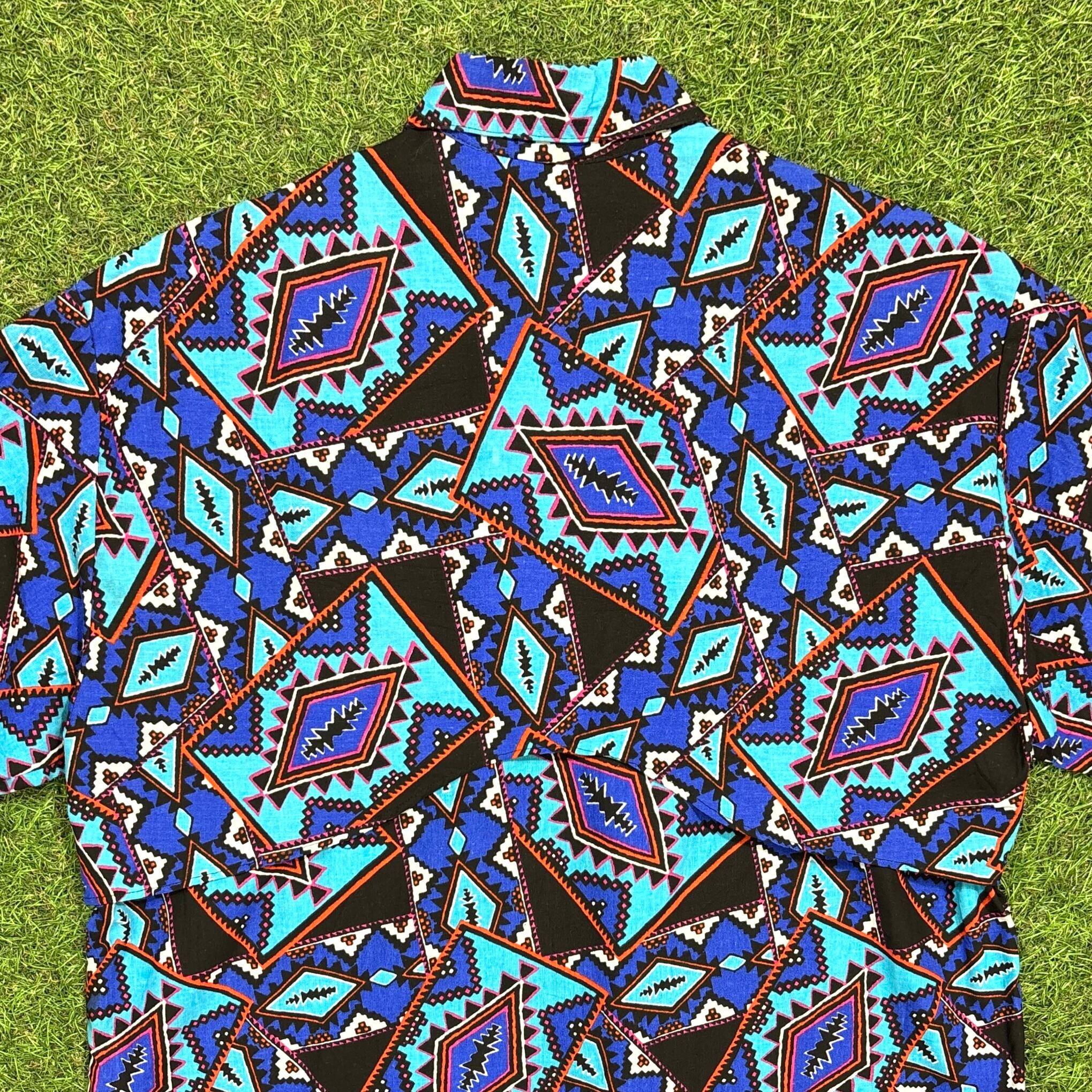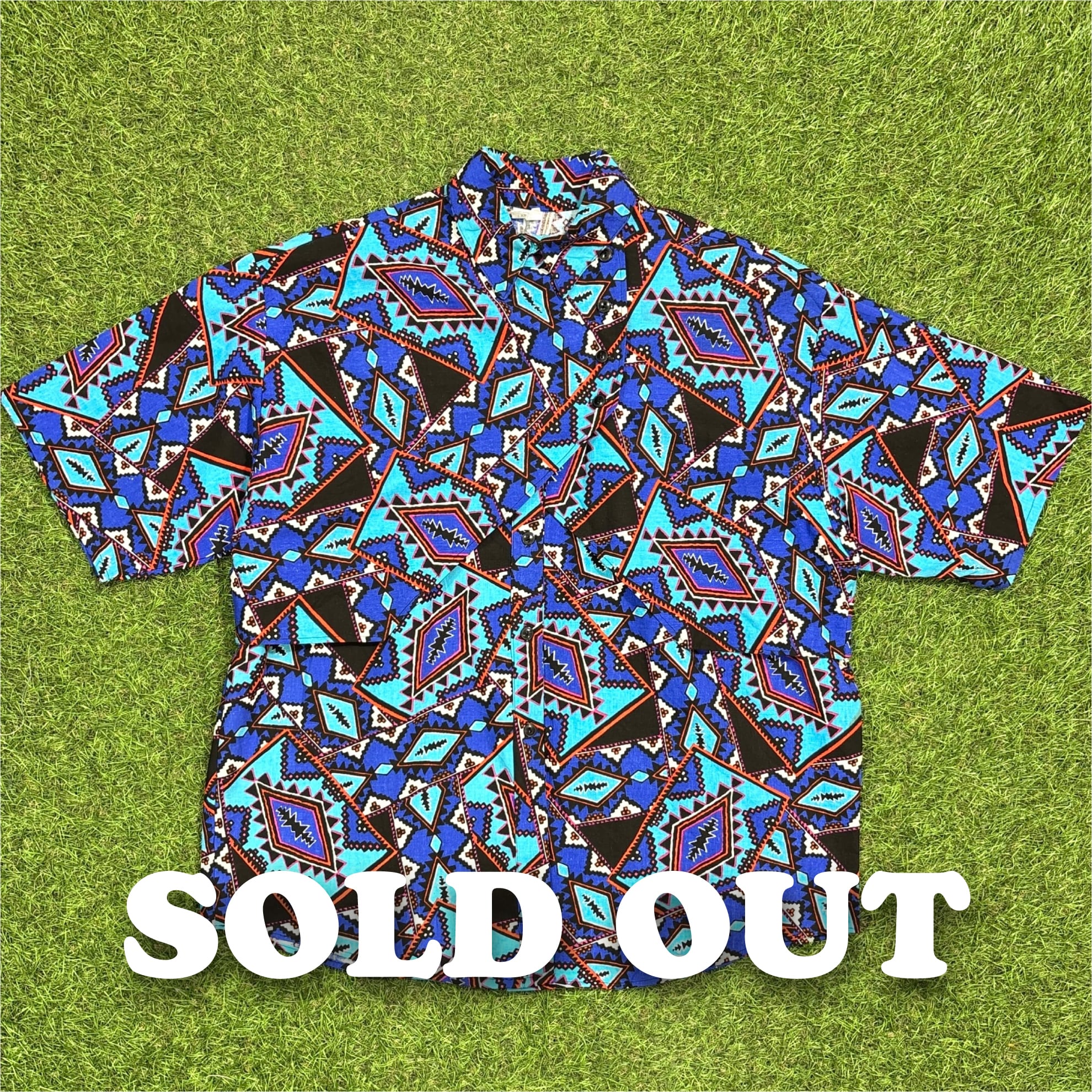 【Men's】90s〜 ネイティブ風 総柄 デザイン シャツ / 半袖シャツ 幾何学柄 エスニック柄 アメリカ製 USA製 古着 メンズ