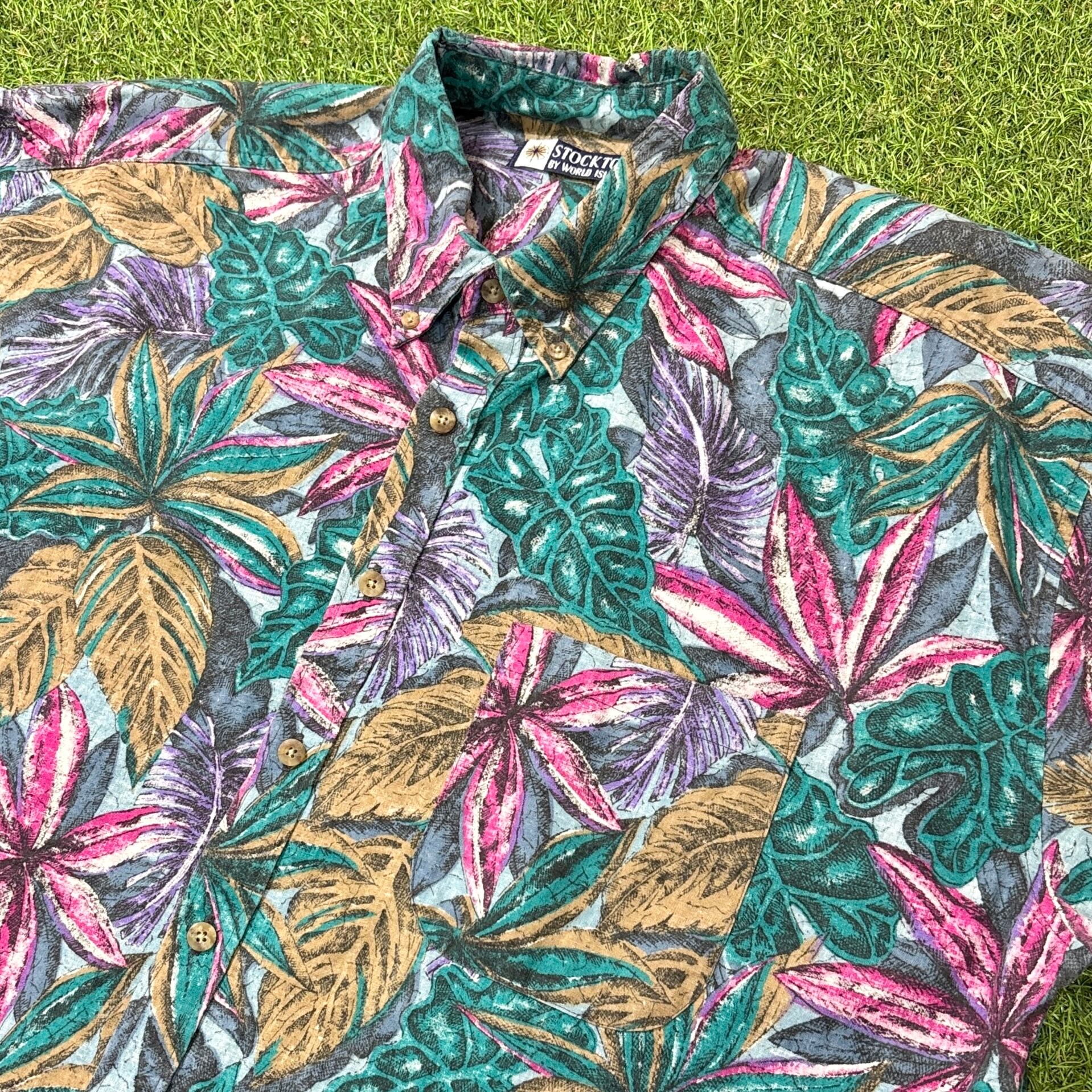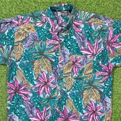 【Men's】 90s ボタニカル 総柄 半袖 ボタンダウン シャツ / Made In USA 90年代 アメリカ製 古着 柄シャツ 半袖シャツ ボタンダウンシャツ