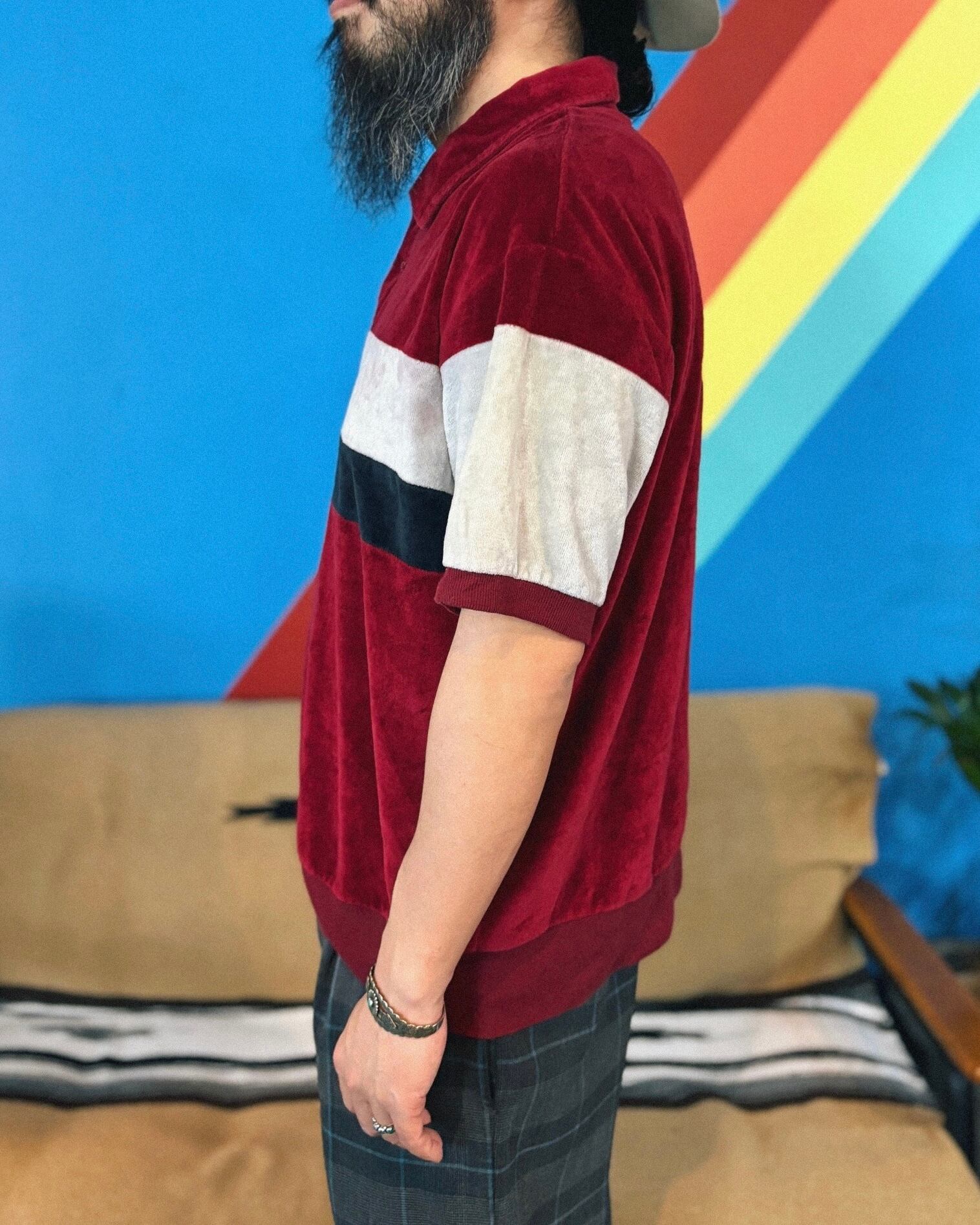 【Men's】 80s - 90s ベロア トップス / Made In USA 80年代 90年代 アメリカ製 ポロシャツ えんじ ワインレッド ベロアポロ 夏