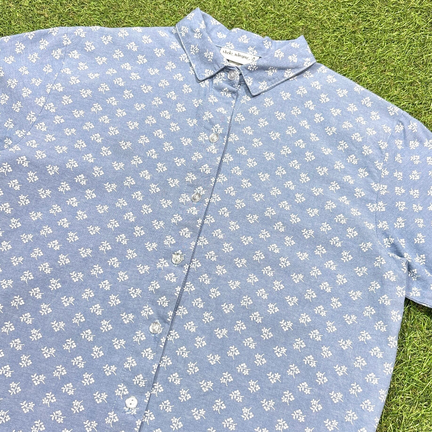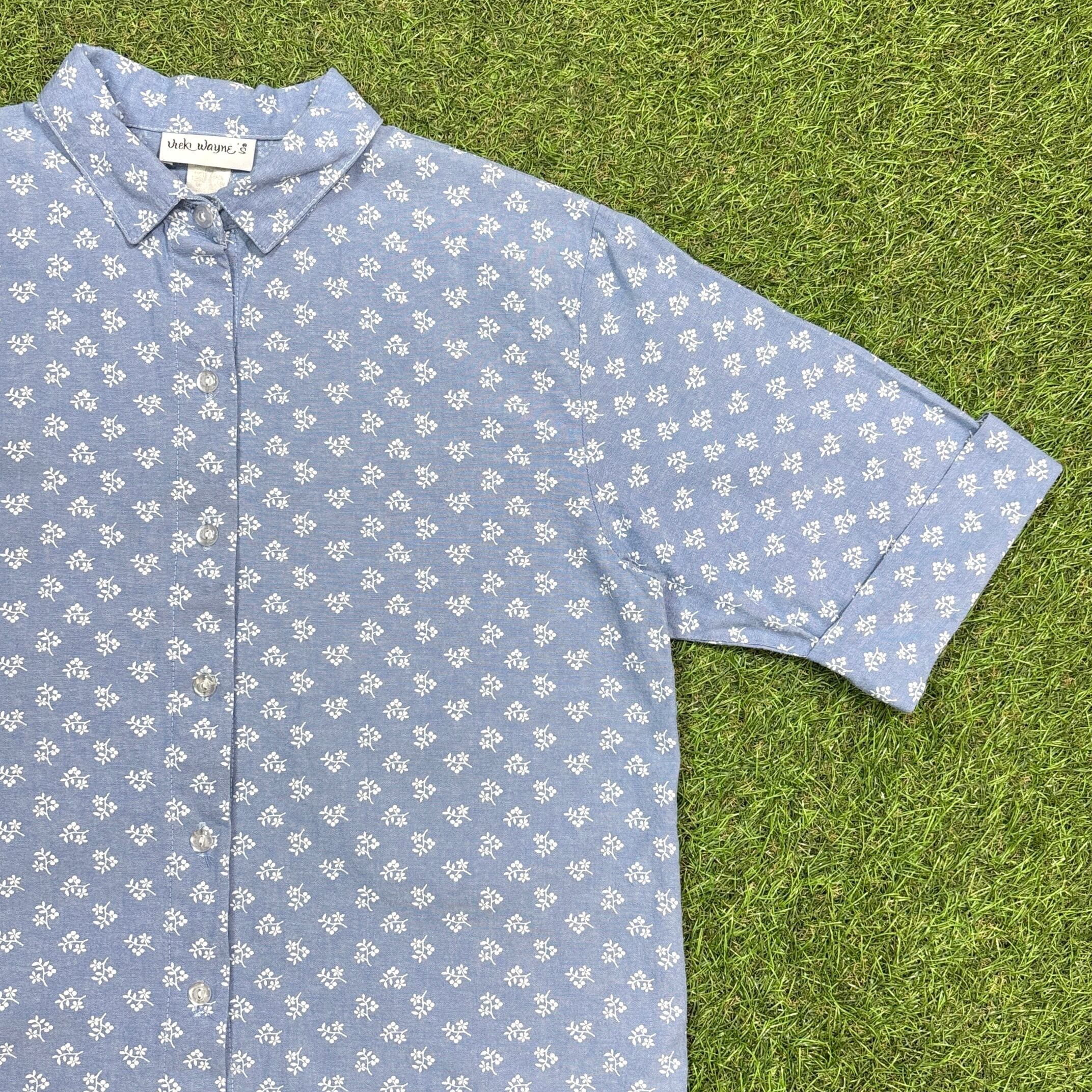 【Lady's】 80s - 90s 花柄 半袖 シャツ / 総柄 シャンブレーシャツ アメリカ製 USA製 レディース 古着 80年代 90年代 水色 ライトブルー