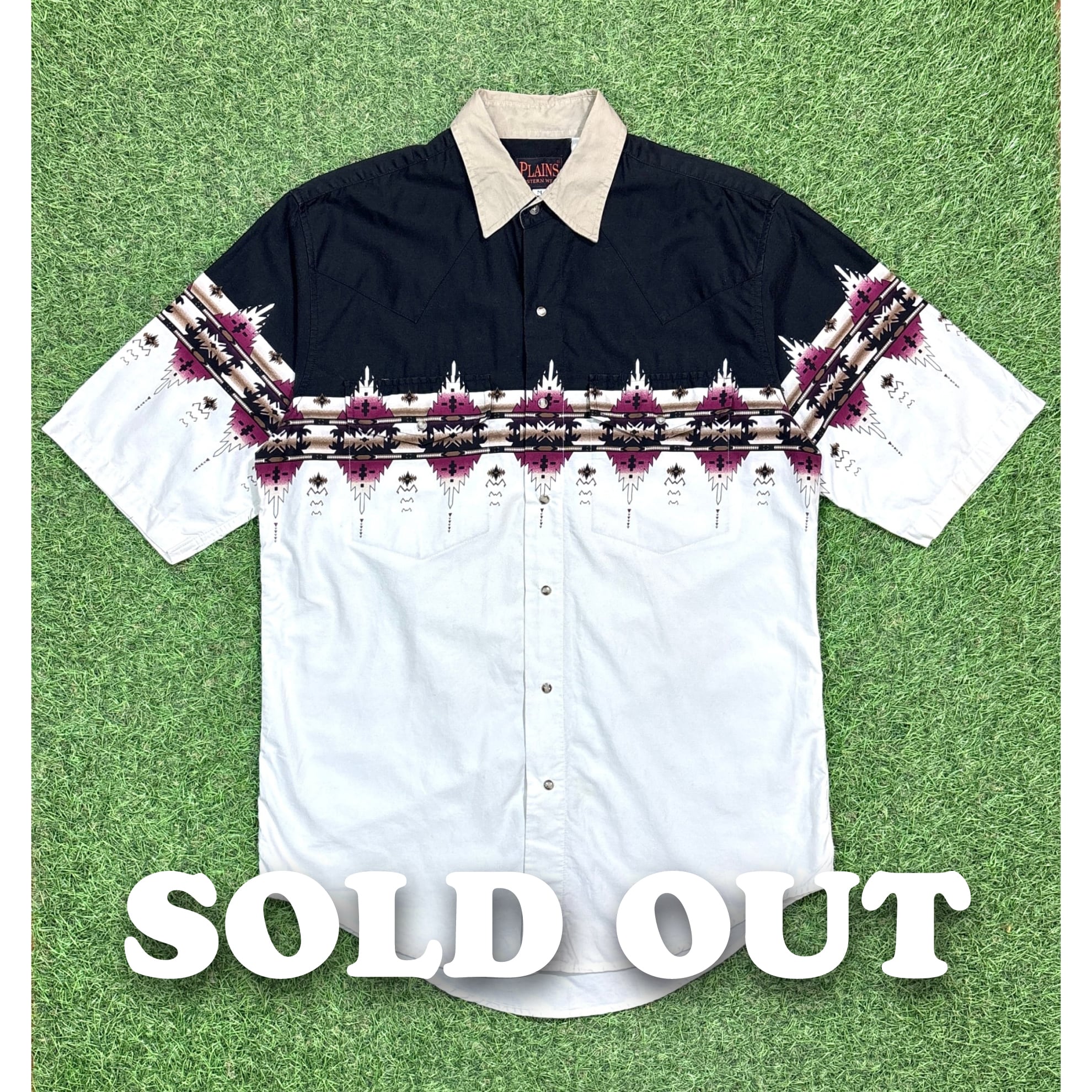 【Men's】 90s ネイティブ柄 バイカラー 半袖 シャツ / 90年代 古着 ウエスタン オルテガ ブラック ホワイト メンズ