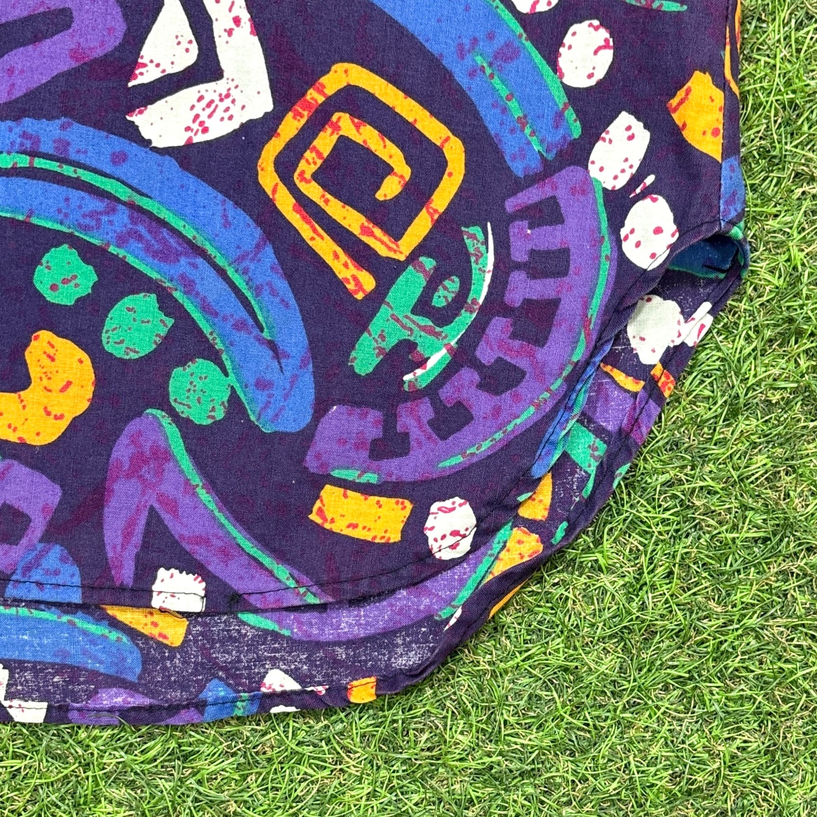 【Lady's】 90s ネイティブ柄 半袖 開襟 シャツ / 総柄 柄シャツ レディース 古着 パープル 紫 90年代 開襟シャツ