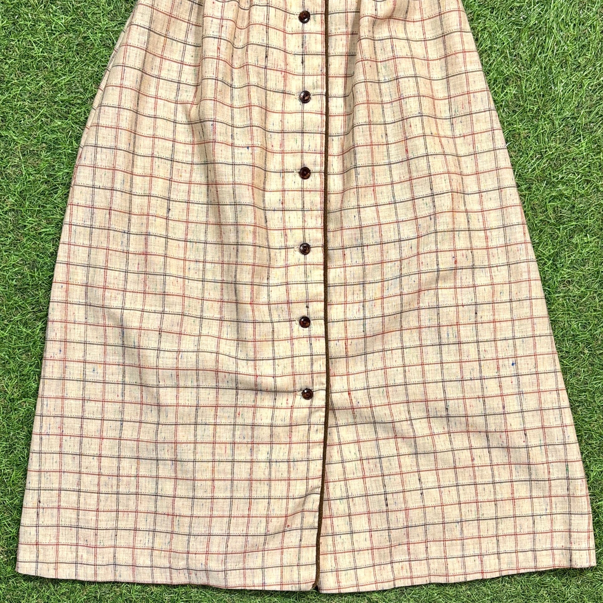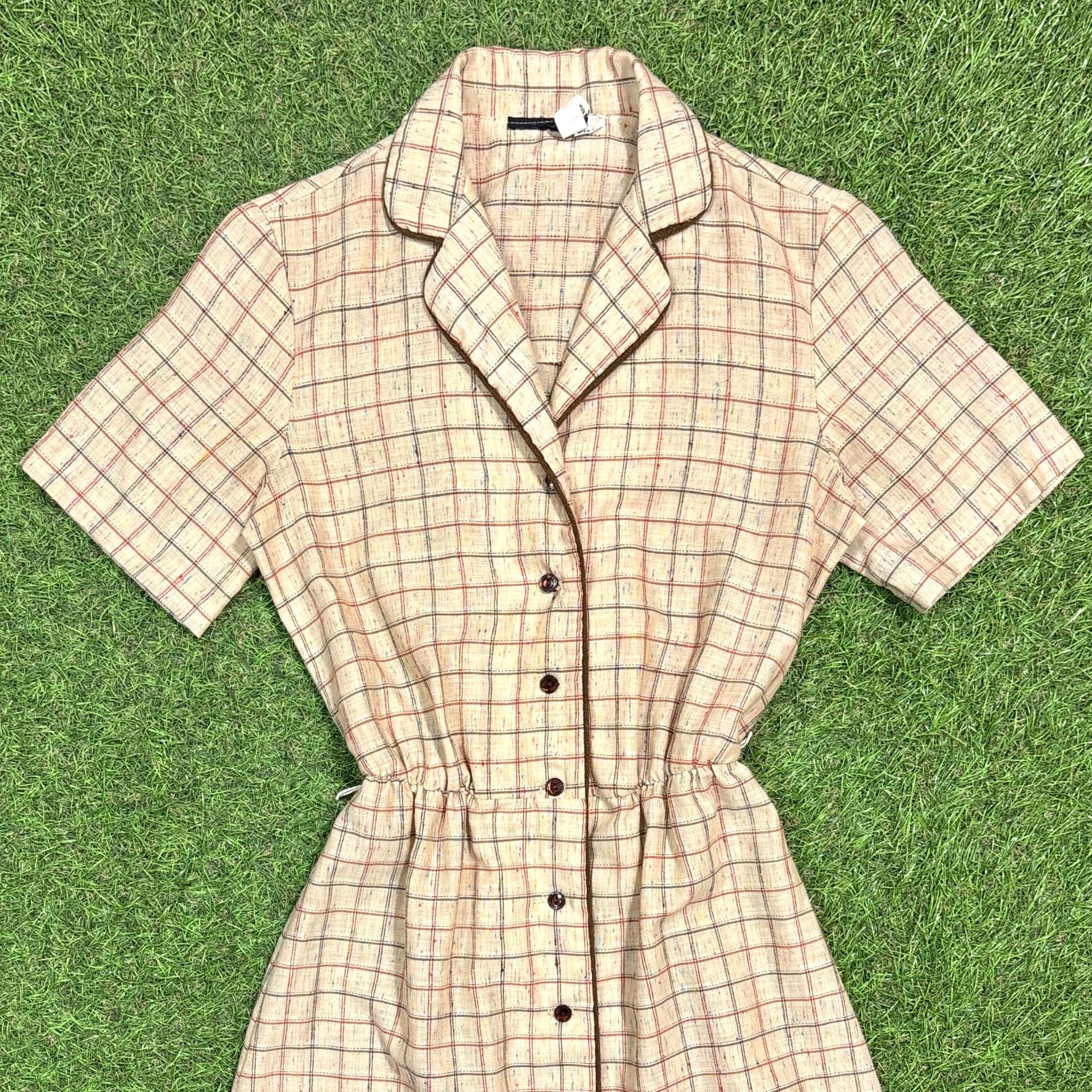 【Lady's】70s - 80s レトロ チェック 開襟 半袖 ワンピース / 70年代 80年代 レディース 古着 ロング丈 ボタン シャツワンピース