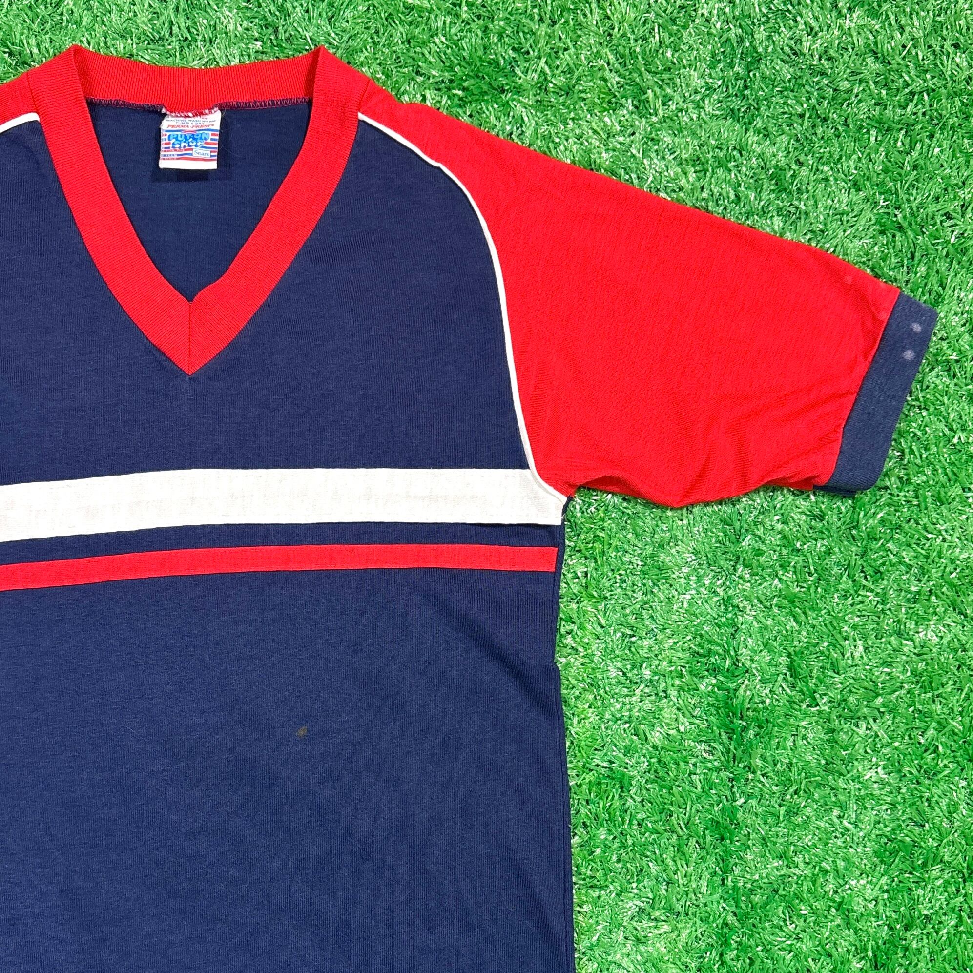 【Men's】 70s Sears Vネック 切り替えデザイン Tシャツ / 70年代 ティーシャツ T-Shirts 紺 ネイビー レトロ