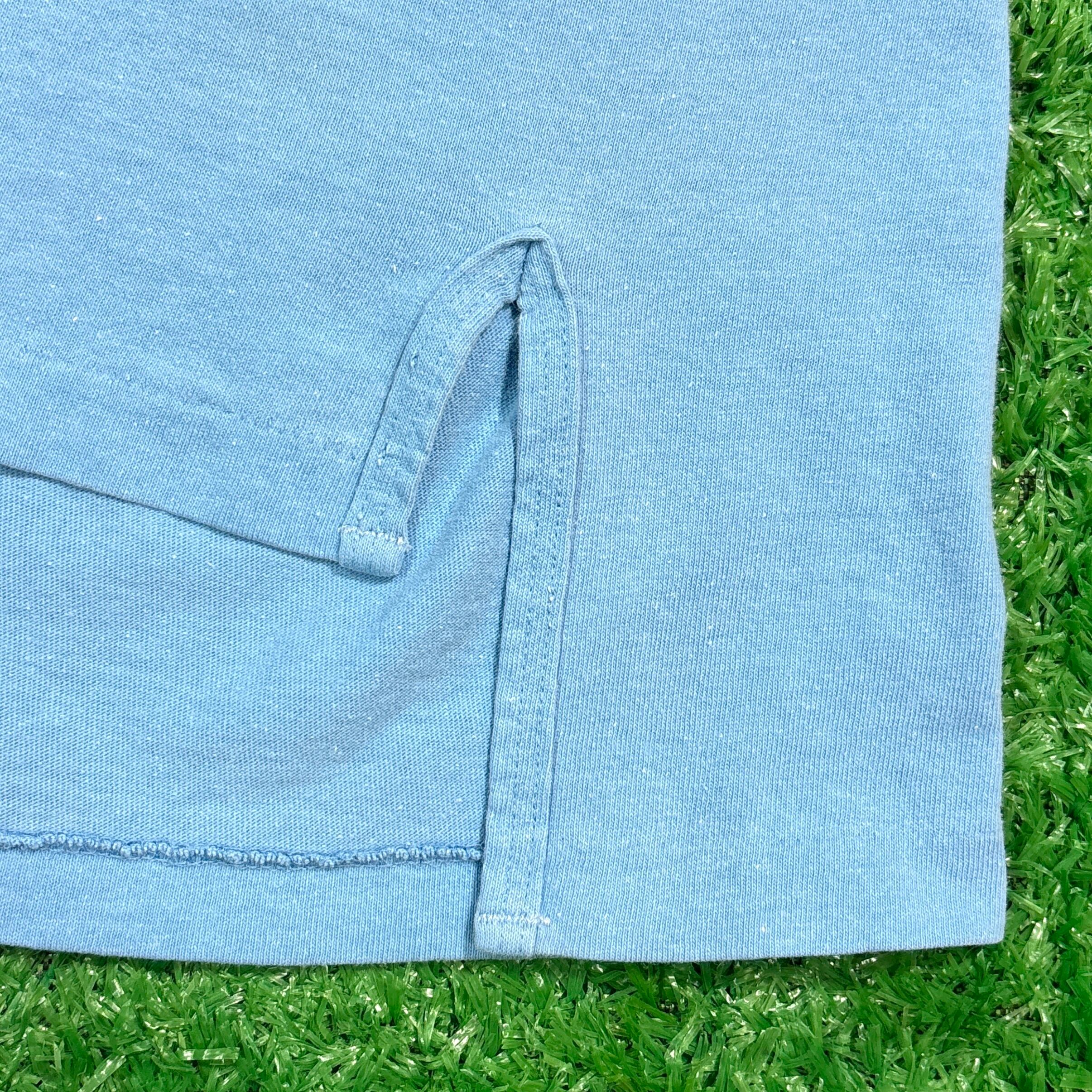 【Unisex】 80s - 90s 猫 イラスト ロング丈 半袖 Tシャツ / 80年代 90年代 古着 ティーシャツ T-Shirts シングルステッチ 水色 スカイブルー ネコ