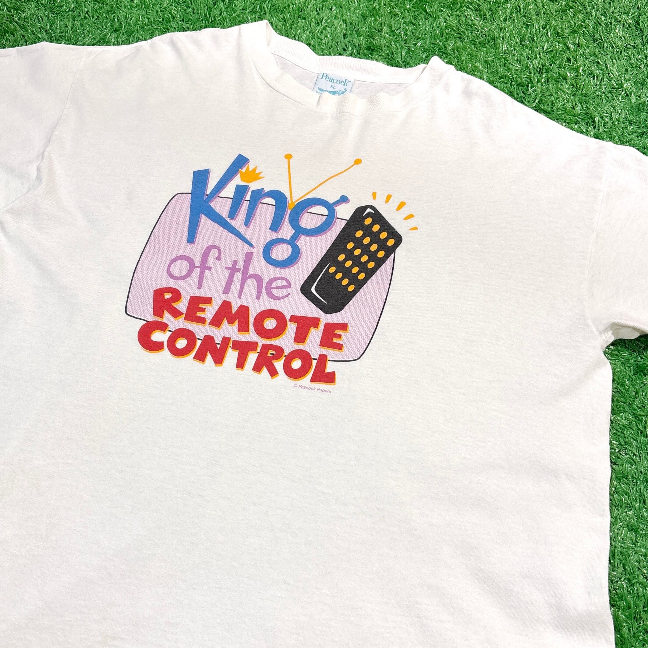 【Men’s】 90s King of the Remote Control プリント Tシャツ / 90年代 アメリカ製 USA製 シングルステッチ 白 ホワイト おもしろ系 古着 メンズ T-Shirts ティーシャツ 022