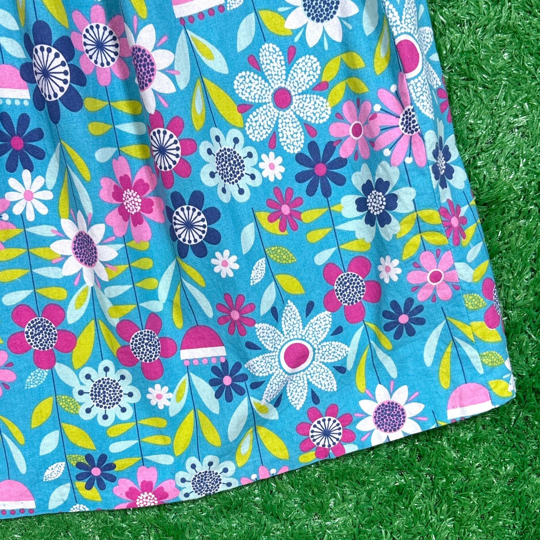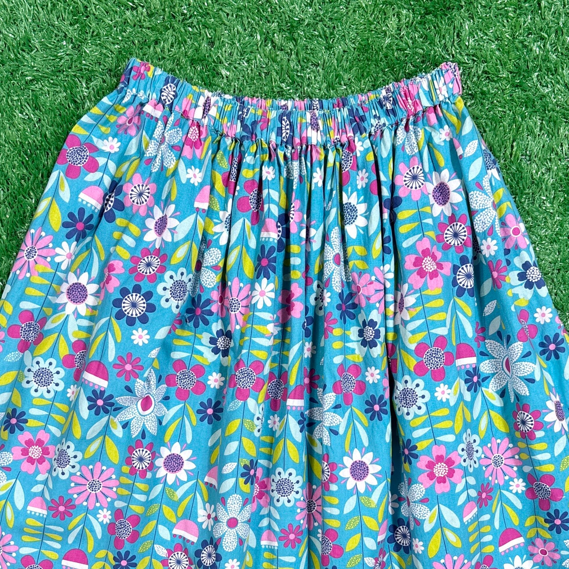 レトロでヒッピーな花柄が特徴的なロング丈スカートです。鮮やかな色合いの花柄がとても可愛いアイテムで、春夏のコーディネートにぴったりです。