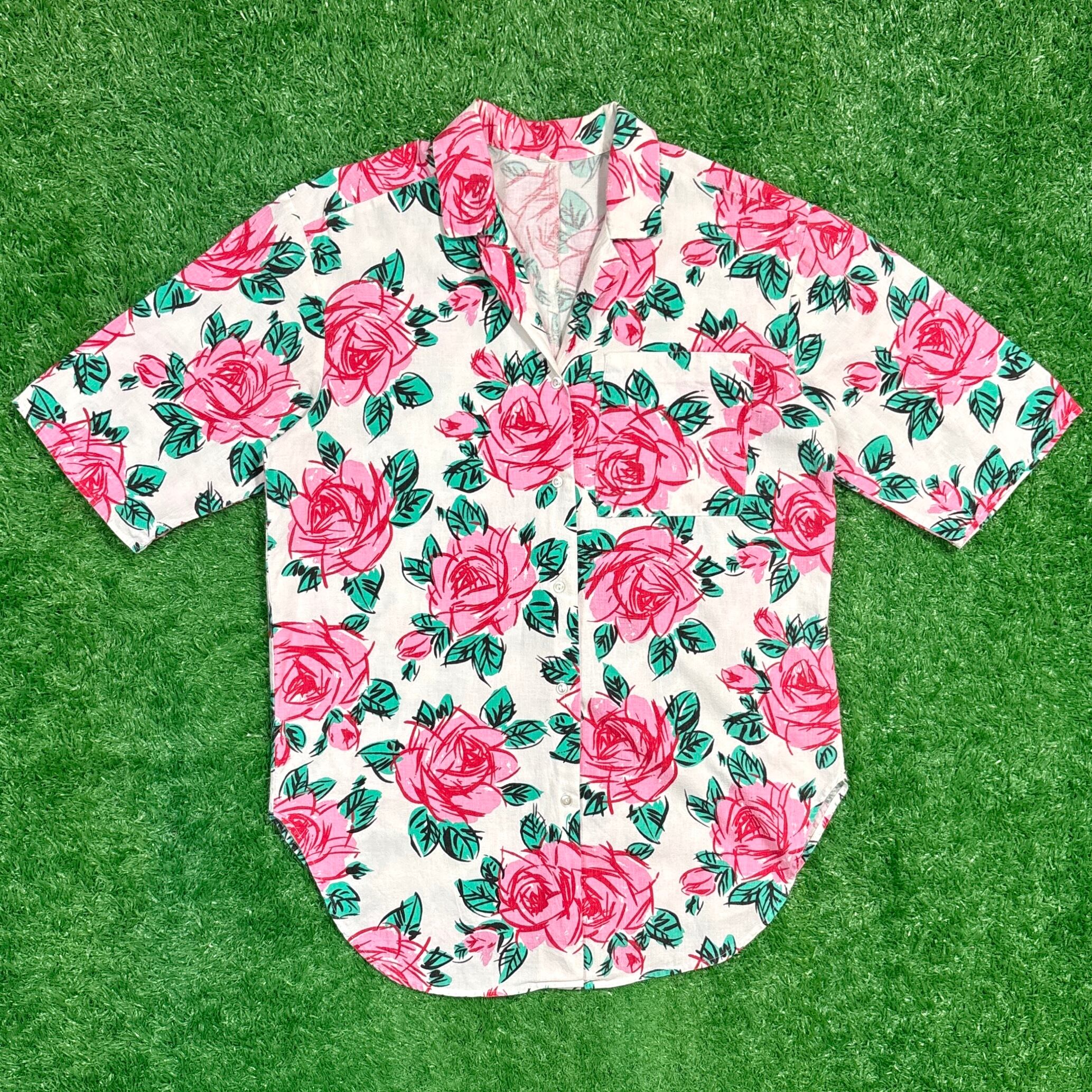 【Unisex】 80s - 90s バラ柄 半袖 開襟シャツ / 80年代 90年代 シャツ 総柄 柄シャツ 開襟 夏 076