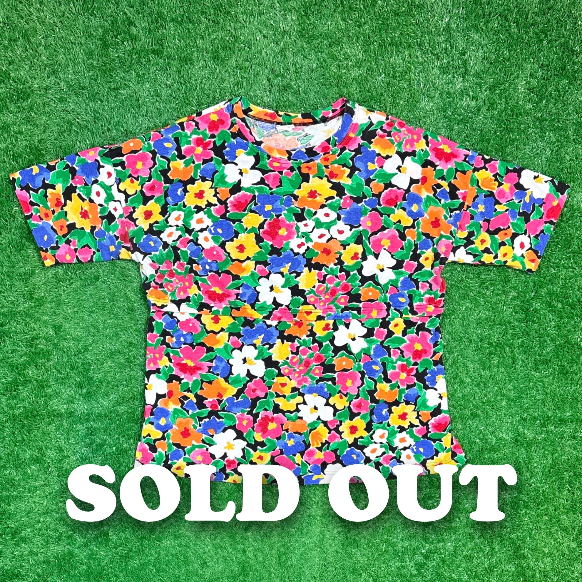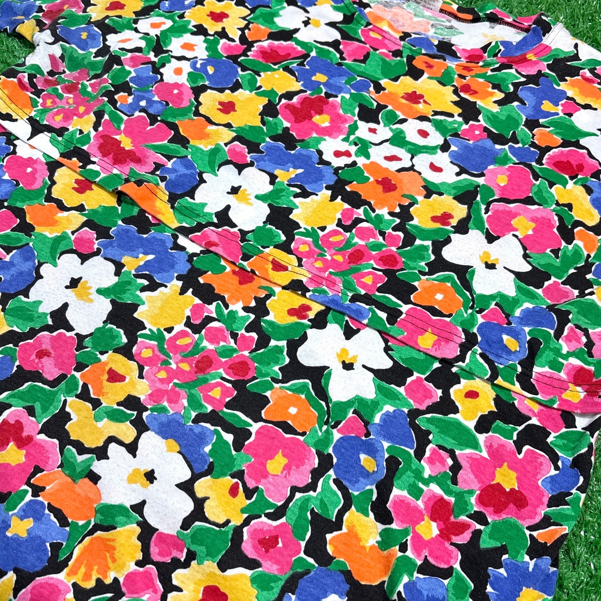 【Lady's】 90s 花柄 レイヤードデザイン トップス / アメリカ製 USA製 90年代 ティーシャツ T-Shirts Tシャツ 総柄 レディース 夏 082