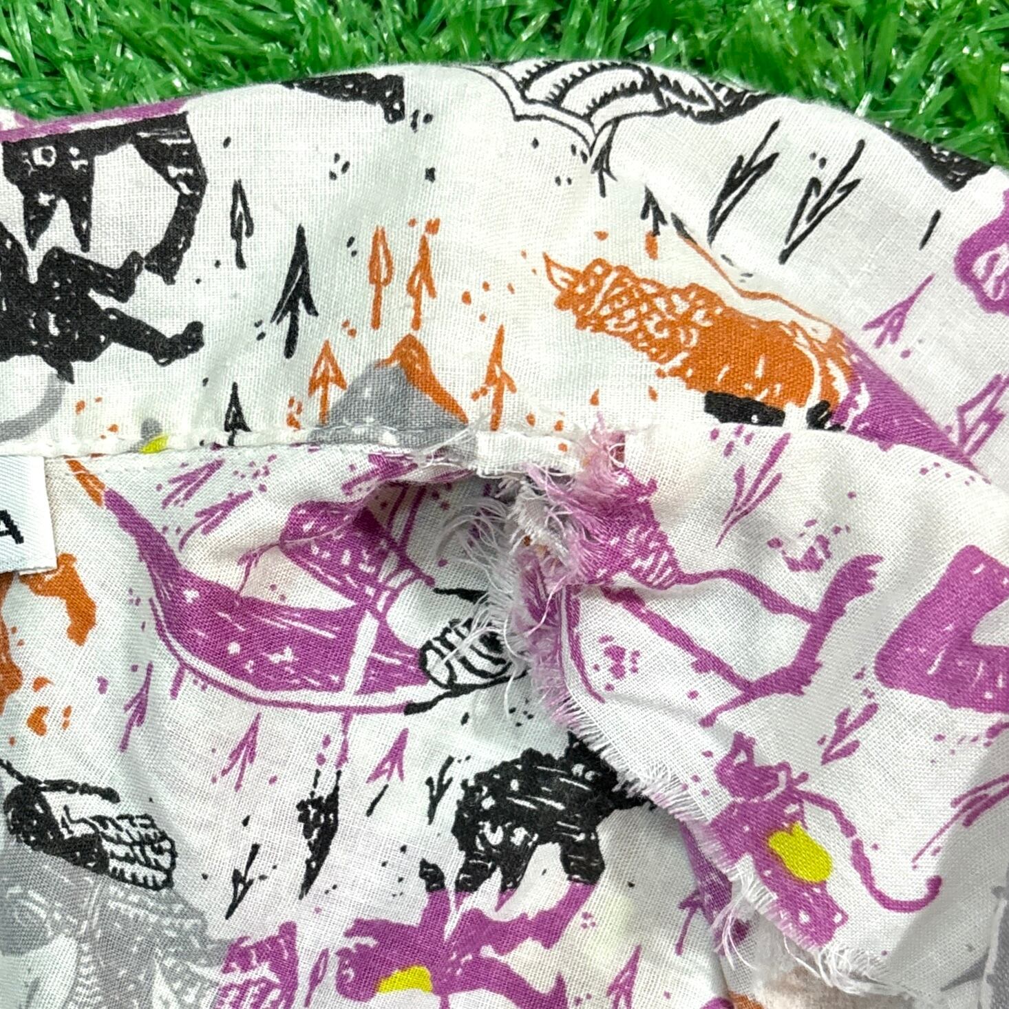 【Lady's】 80s ファンタジー柄 半袖 デザイン ブラウス / 80年代 シャツ 半袖 総柄 柄シャツ レディース 古着 夏 102