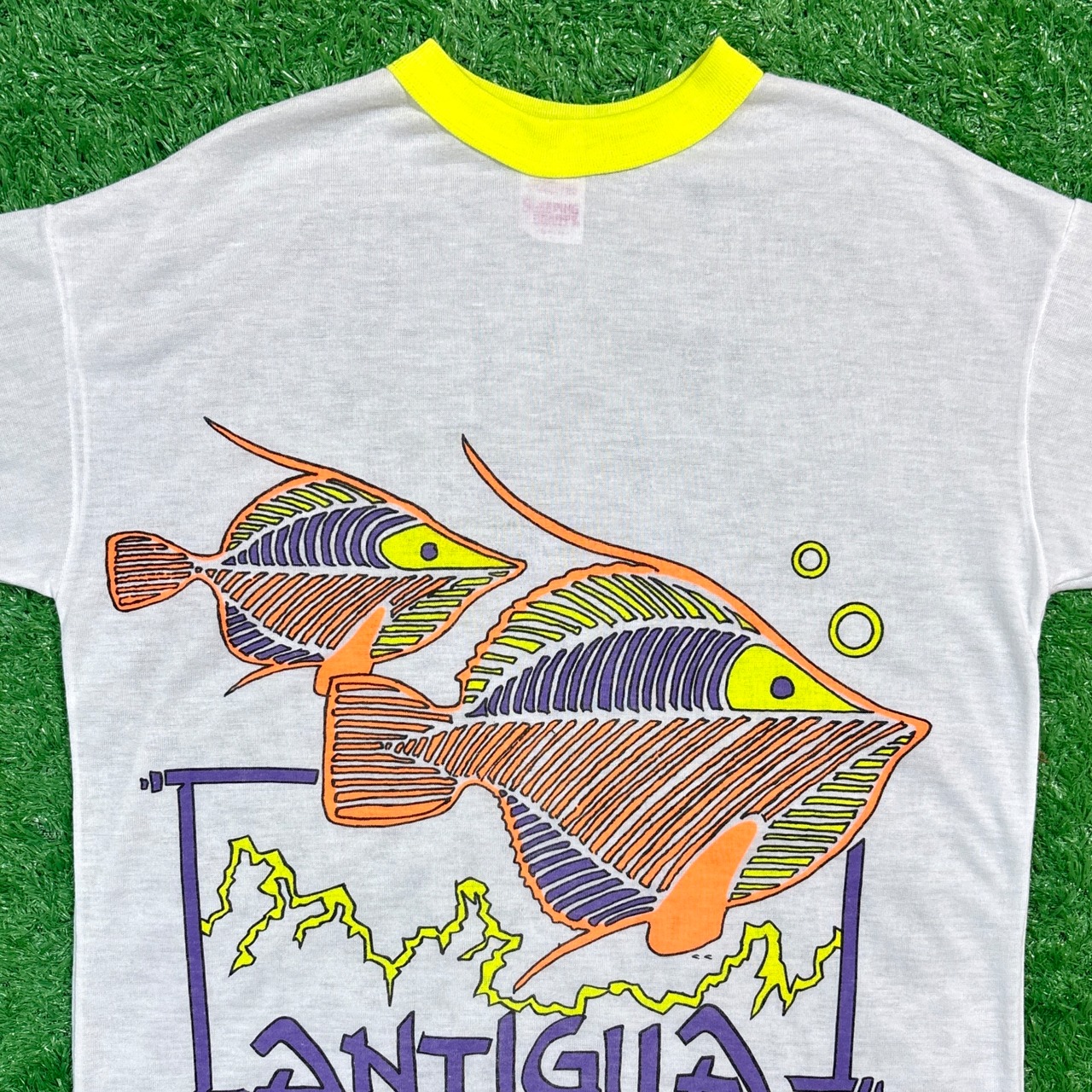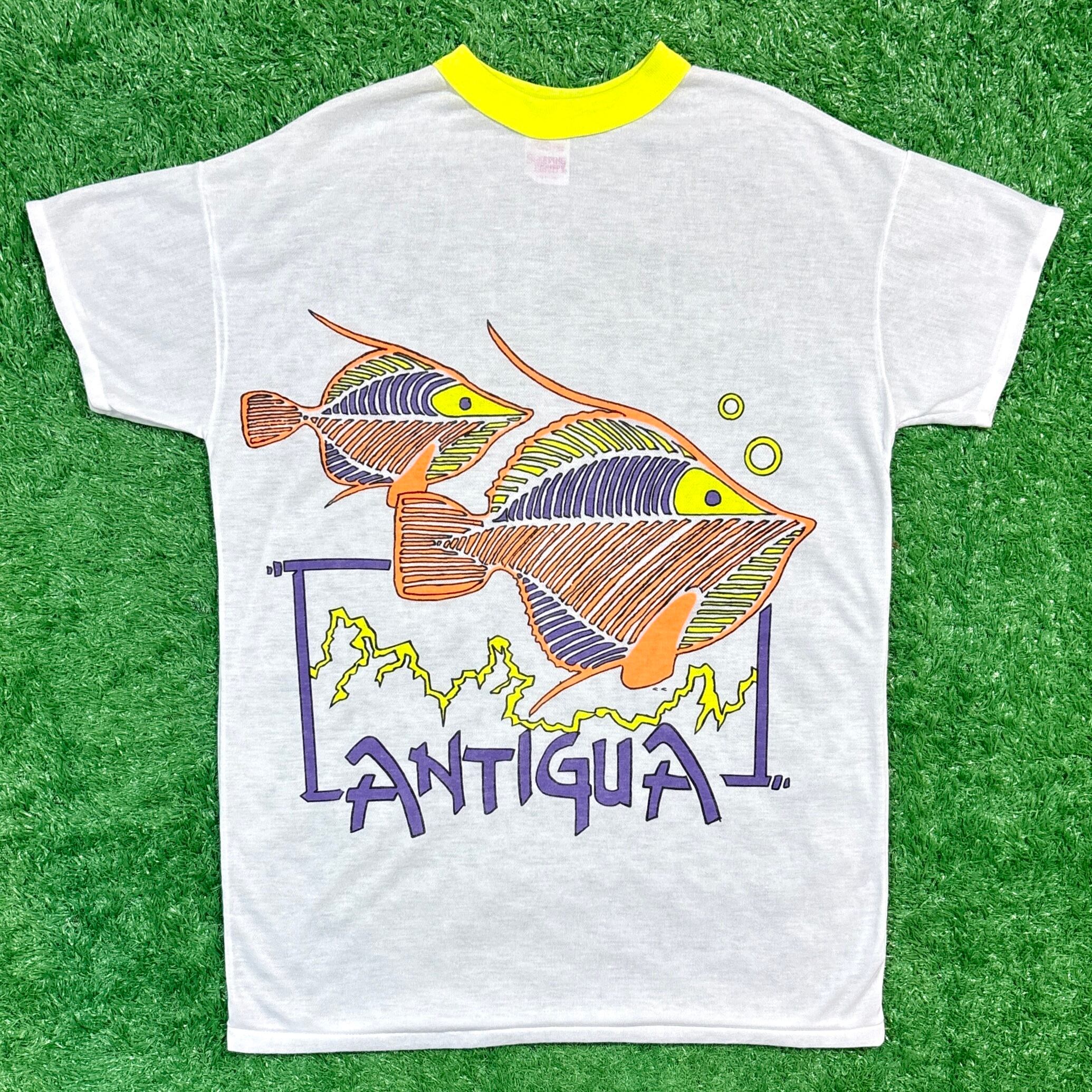 【Unisex】 80s ANTIGUA お魚 イラスト Tシャツ / アメリカ製 USA製 80年代 ティーシャツ T-Shirts 白 シングルステッチ 168