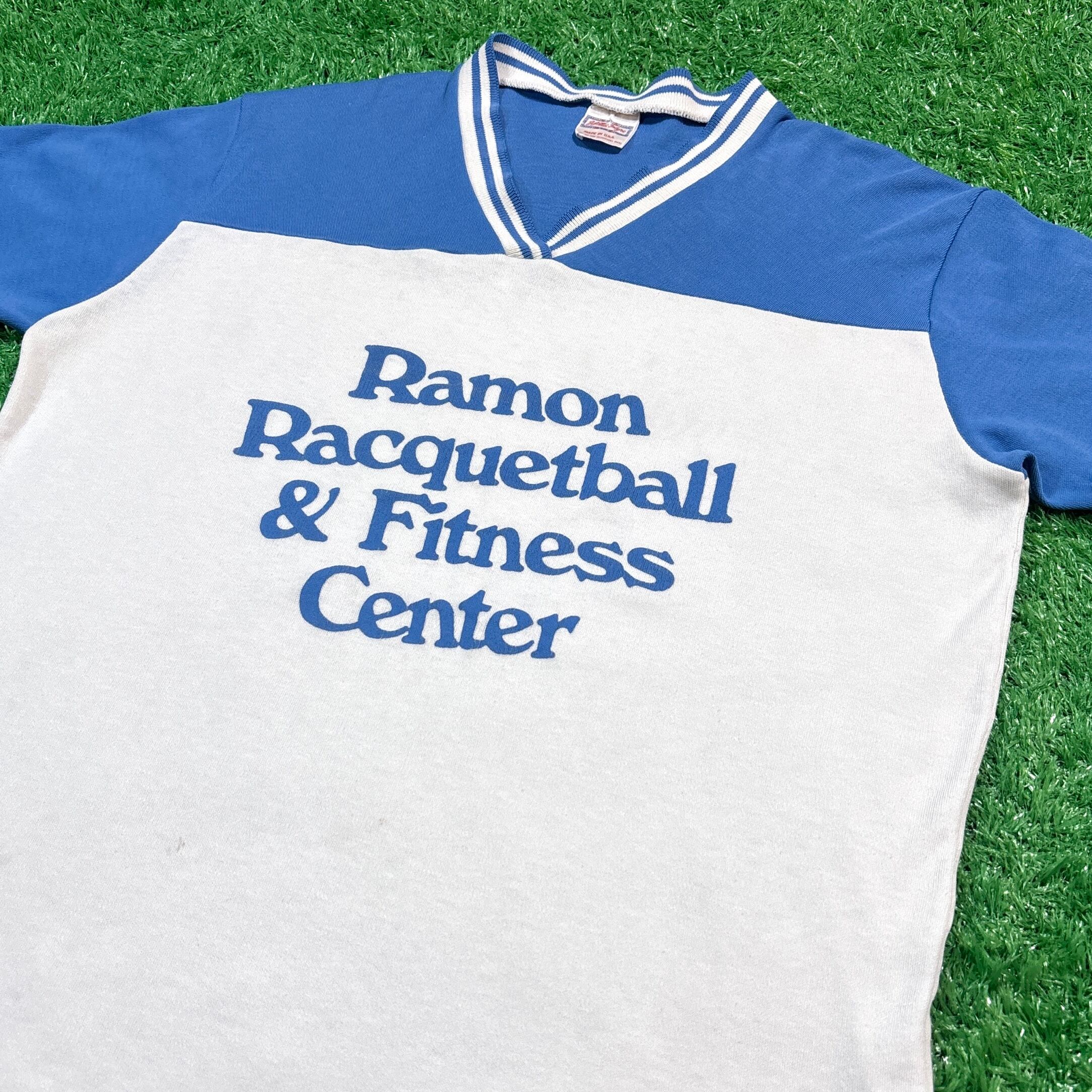 【Men's】 80s Vネック バイカラー Tシャツ / アメリカ製 USA製 ティーシャツ T-Shirts 古着 ブルー 青 白 ホワイト シングルステッチ 179