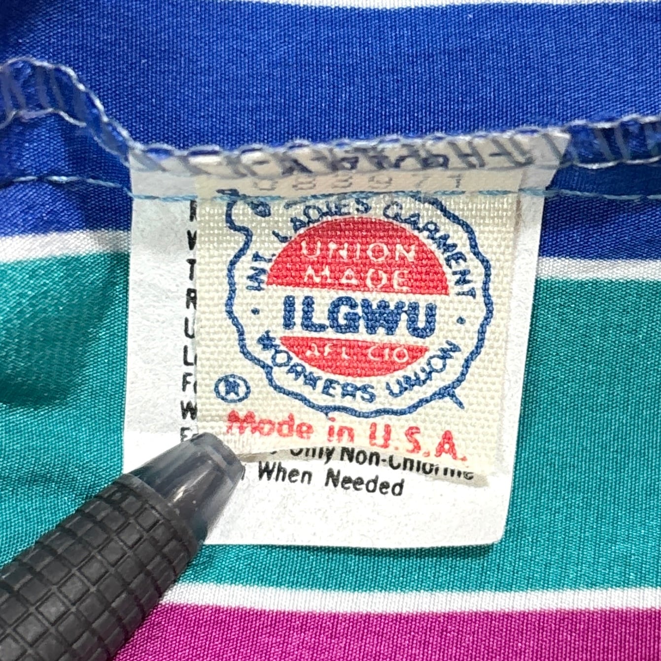 1980年代のアメリカ製、レトロなストライプ柄のボウタイブラウスです。