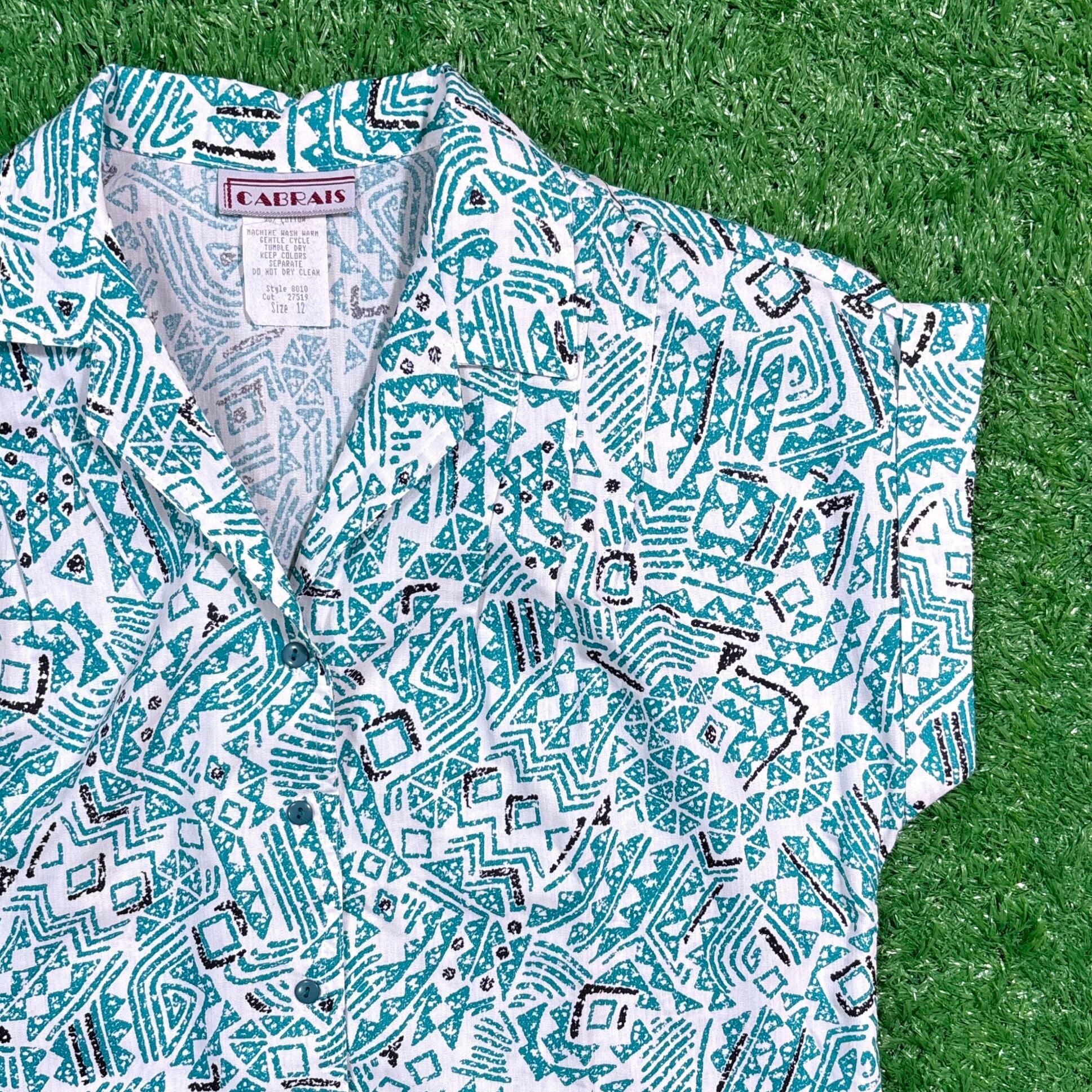 【Lady's】 90s ネイティブ柄 半袖 開襟 シャツ / アメリカ製 USA製 90年代 古着 総柄 柄シャツ 夏 レディース197