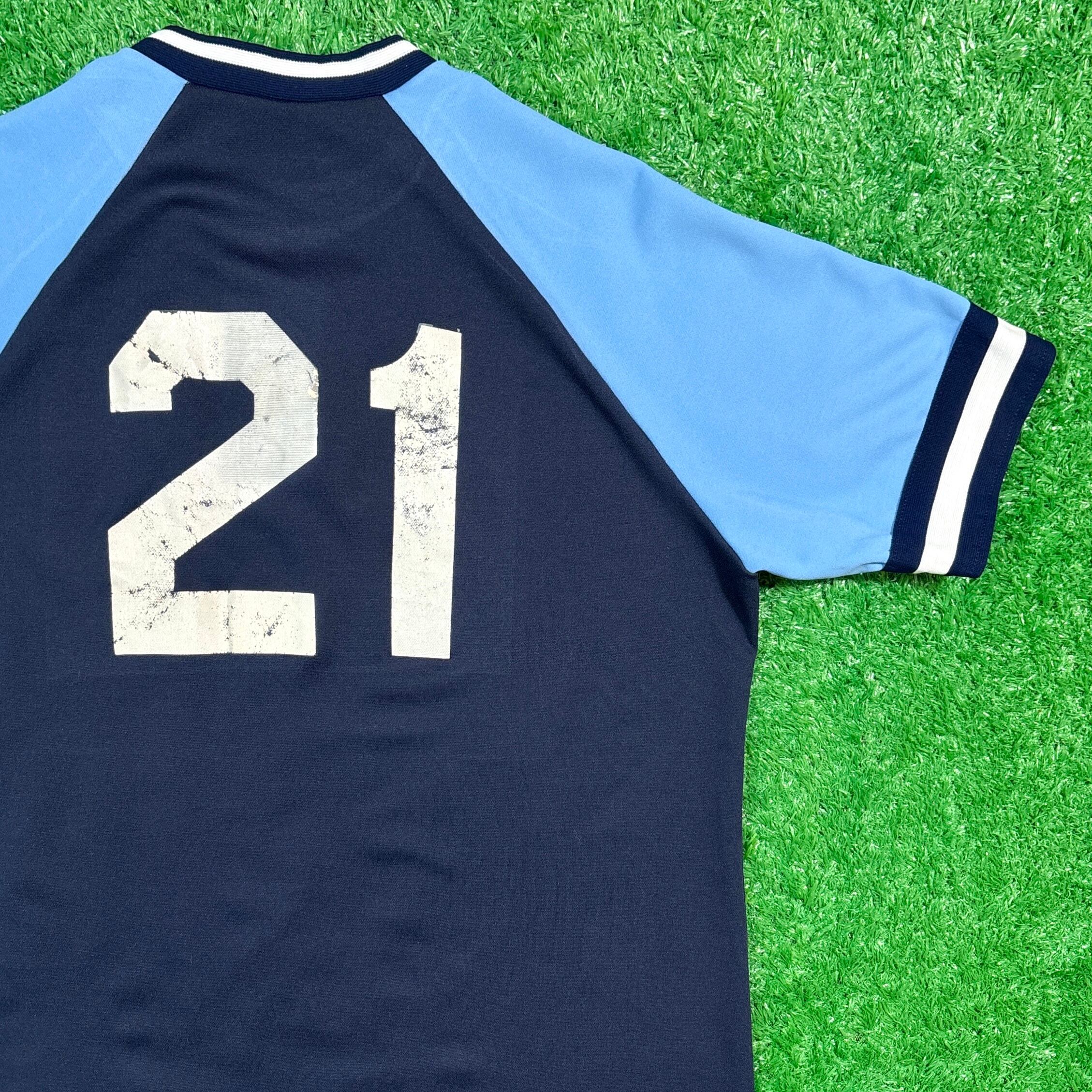 ネイビーのボディにスカイブルーの袖、そして背面にはスポーティーなナンバリングプリント入り。