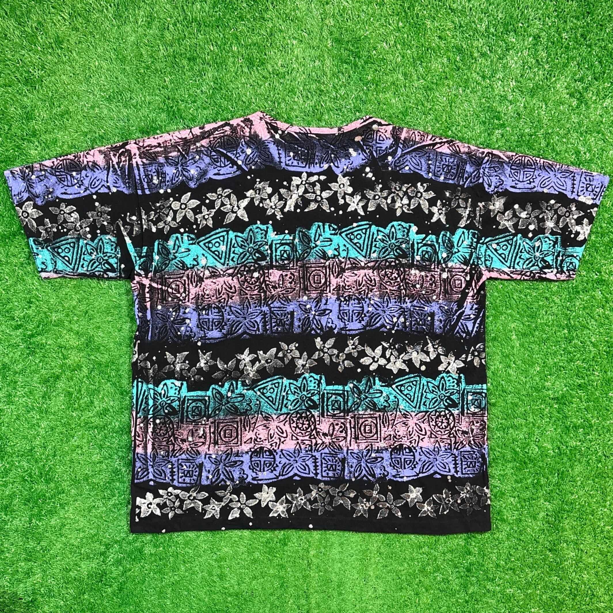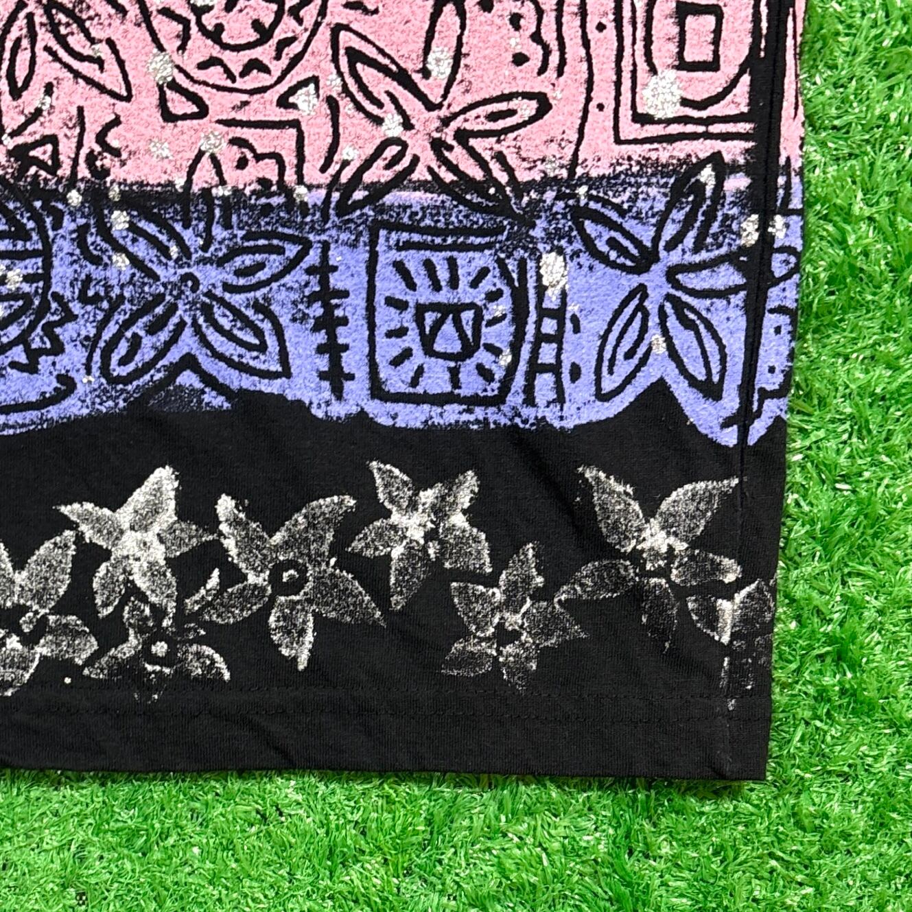 1990年代のアメリカ製、エスニックモチーフの総柄が印象的なTシャツです。