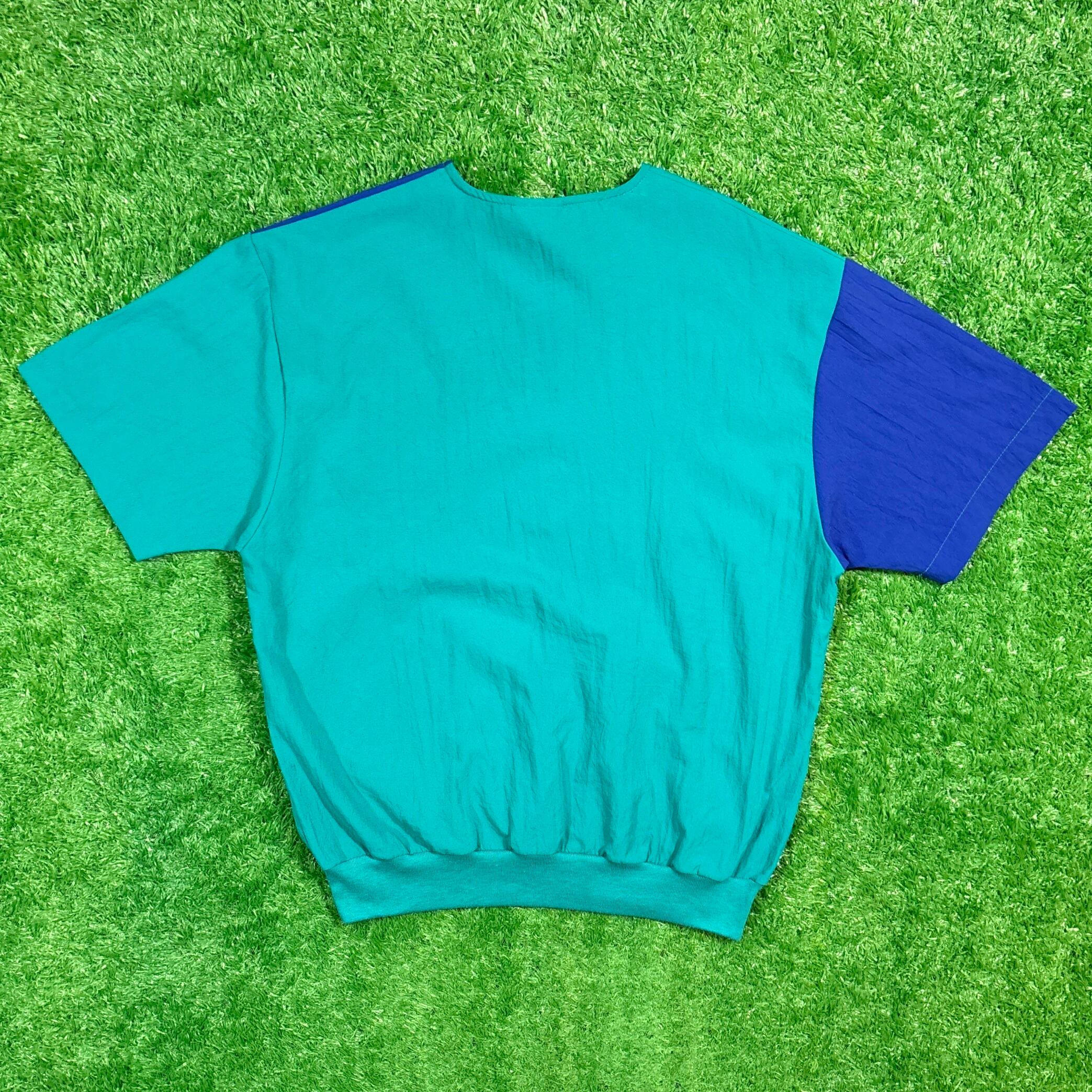 【Lady's】 90s シャカシャカ ポリエステル トップス / 90年代 バイカラー レディース 古着 プルオーバー シャツ 半袖 緑 青 グリーン ブルー 夏 221