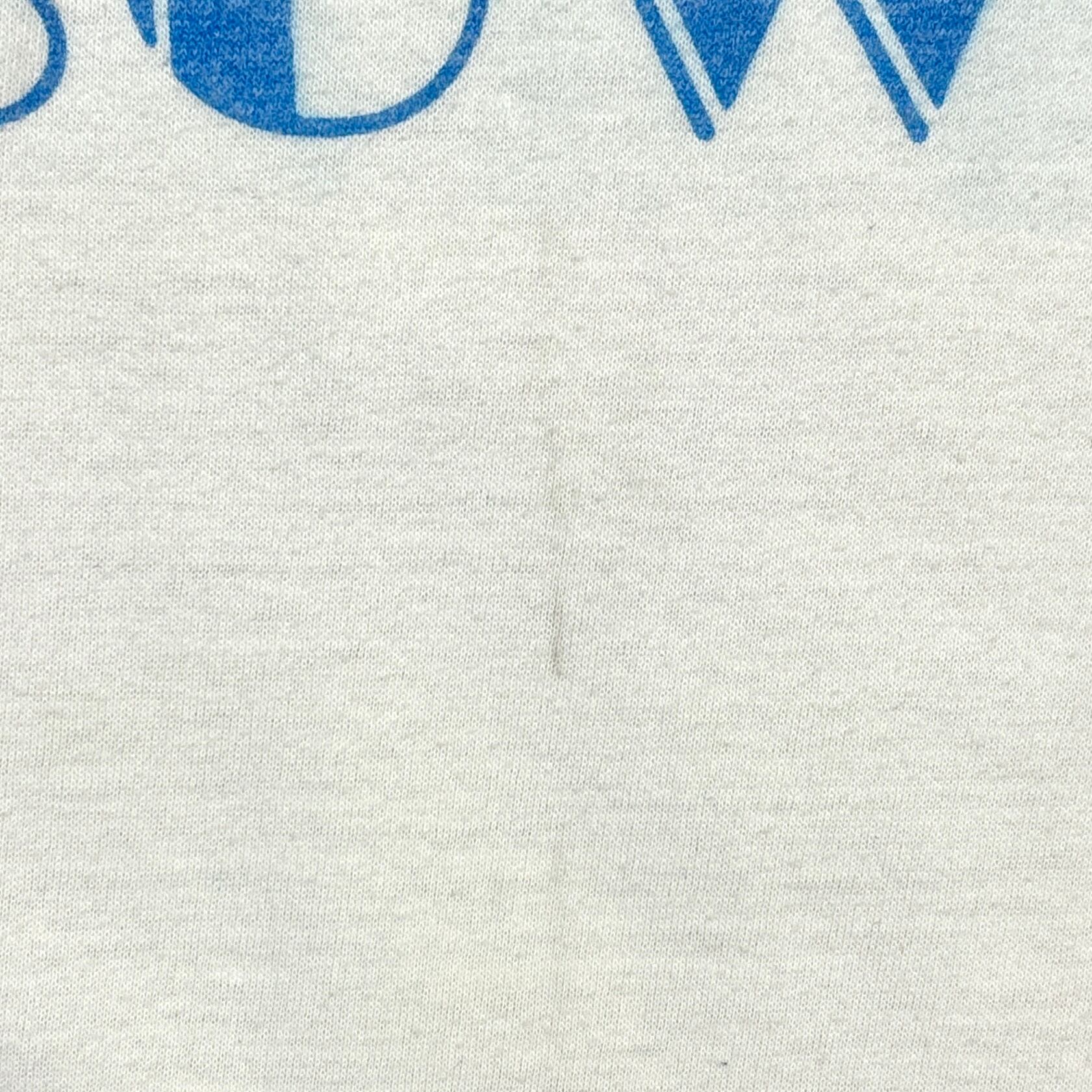 オフホワイトのボディに、ネイビーカラーの7分袖がクラシックな印象の一枚。フロントには「SOUTH BOWL」の文字がプリントされており、当時開催されたローカルなスポーツ大会(ボウリングやフットボール)の記念Tシャツと思われます。ヴィンテージならではの風合いも◎